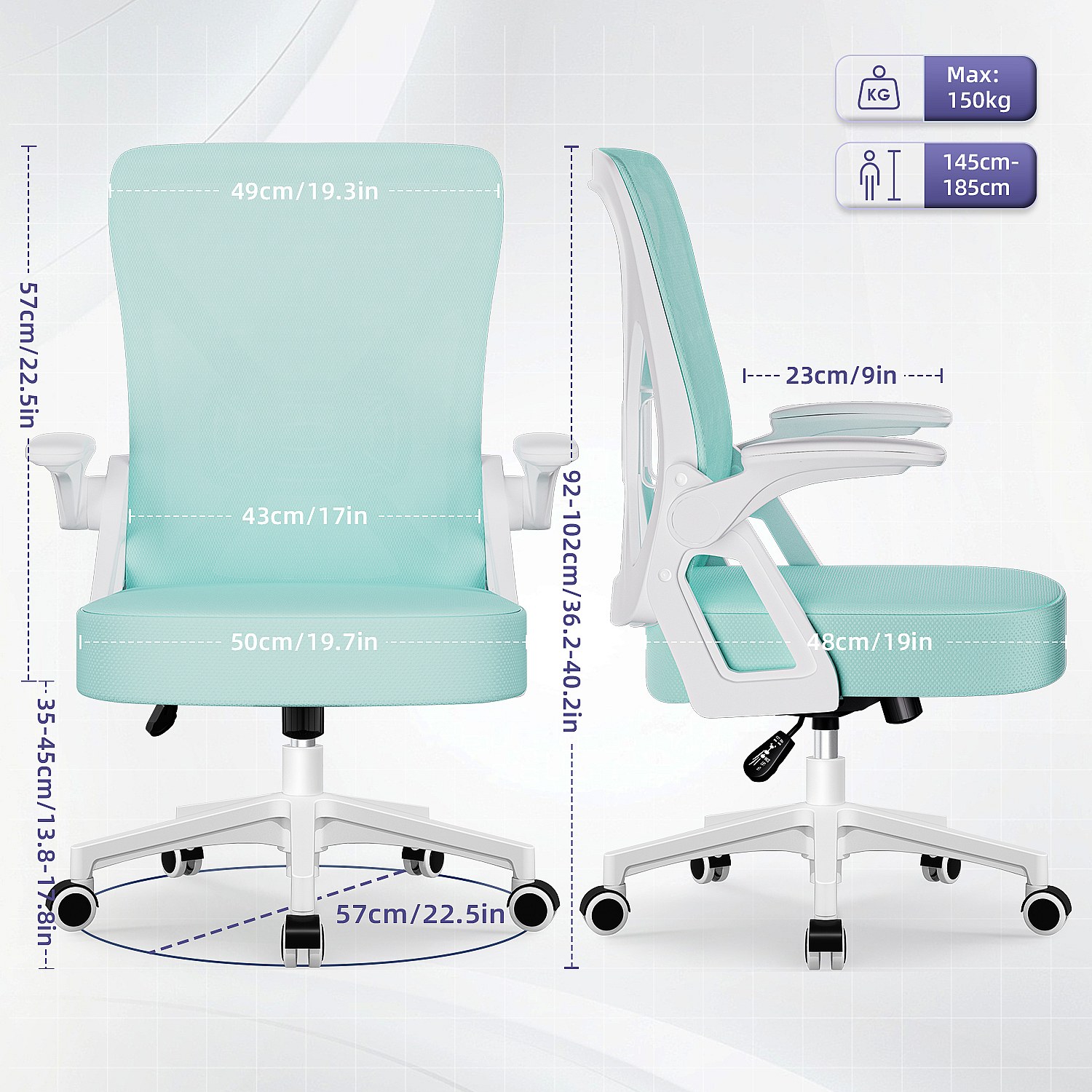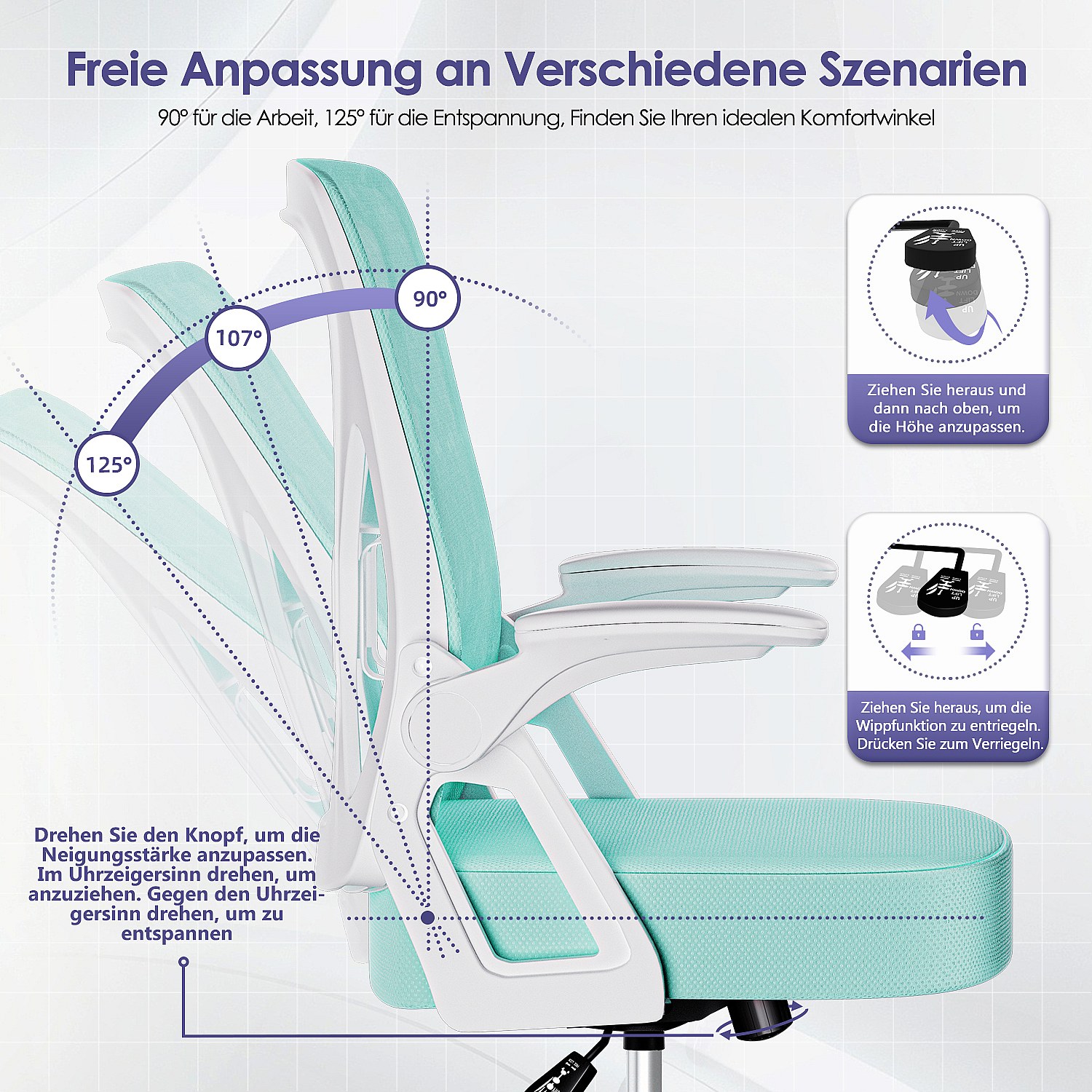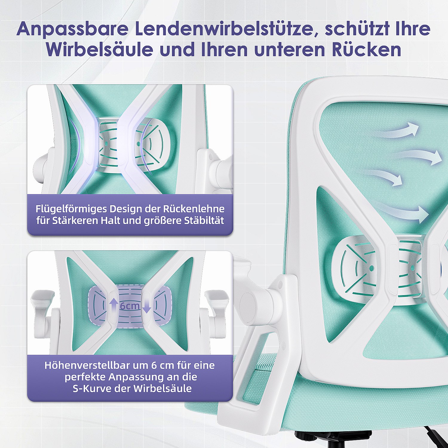 Bürostuhl - Chefsessel aus Mesh - Ergonomischer Schreibtischstuhl - Verstellbarer Armlehnen und Lendenwirbelstütze - Drehstuhl Wippfunktion - Atmungsaktiv