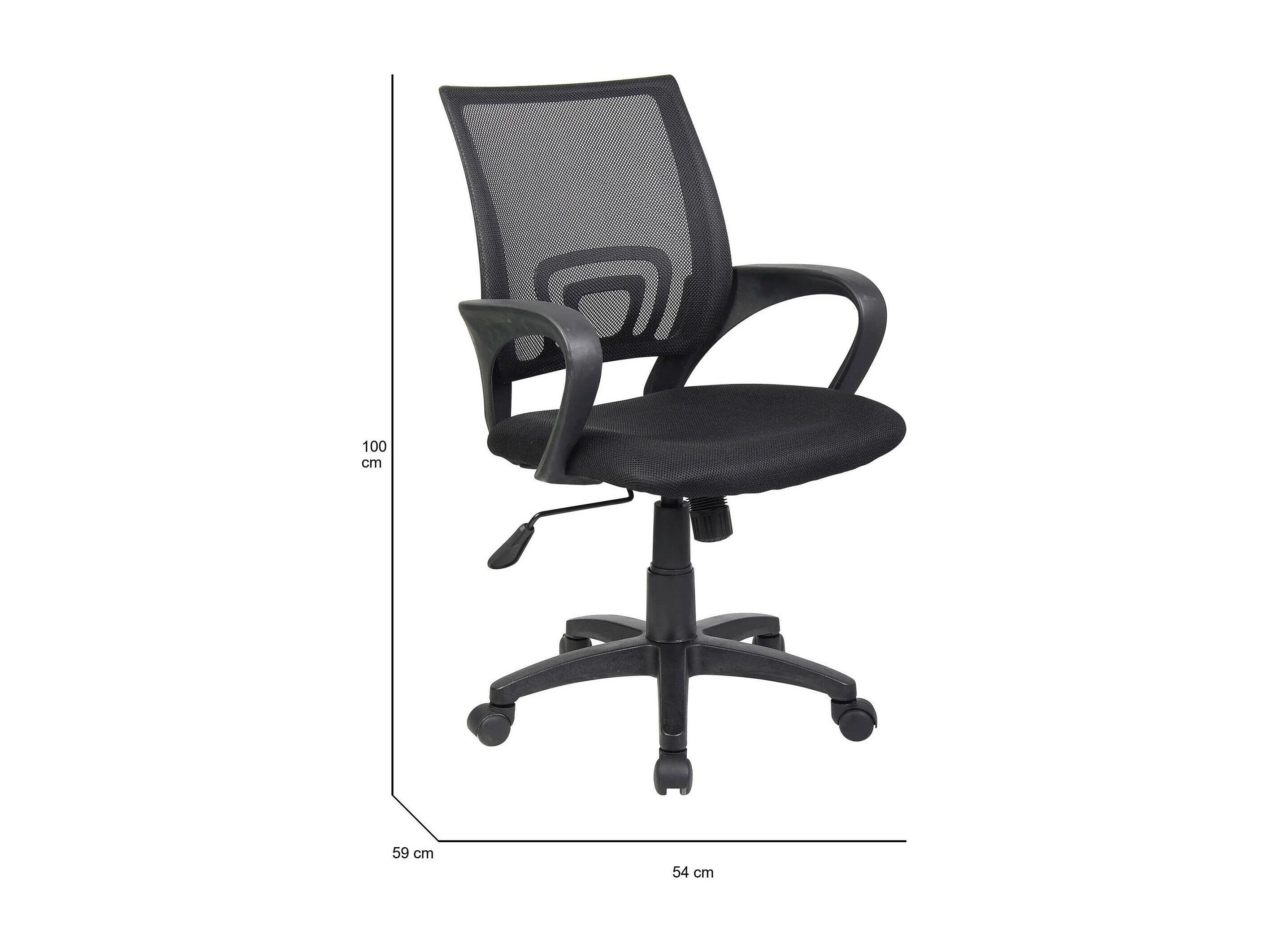 Bürostuhl Dgell, Mesh-Arbeitsstuhl mit Armlehnen, Ergonomischer Bürositz, 59x54h90/100 cm, Schwarz