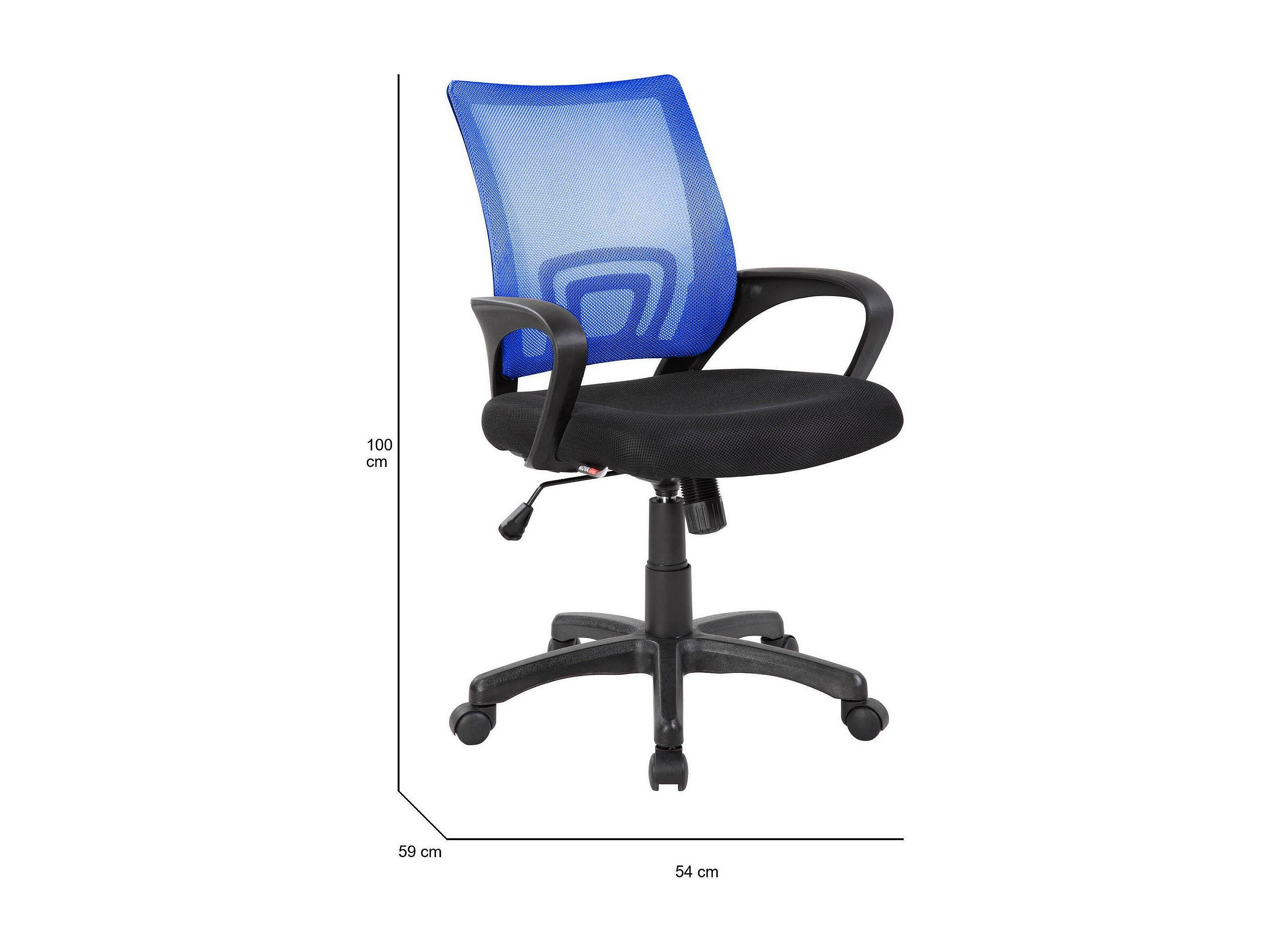 Bürostuhl Dgell, Mesh-Arbeitsstuhl mit Armlehnen, Ergonomischer Bürositz, 59x54h90/100 cm, Schwarz und Blau