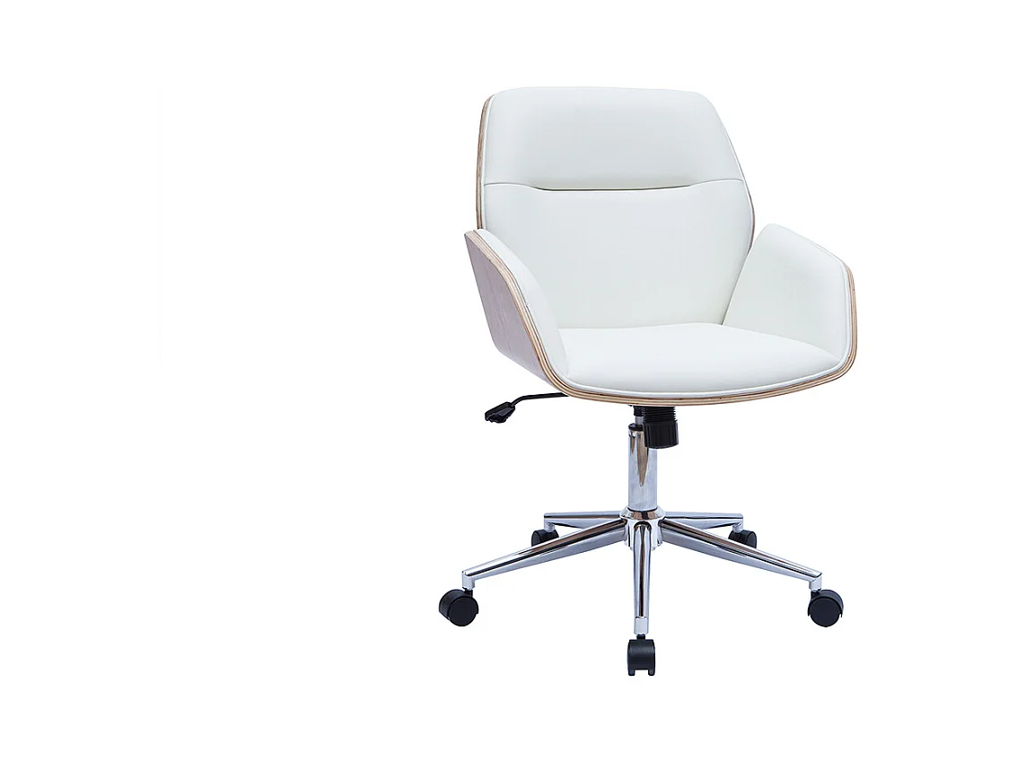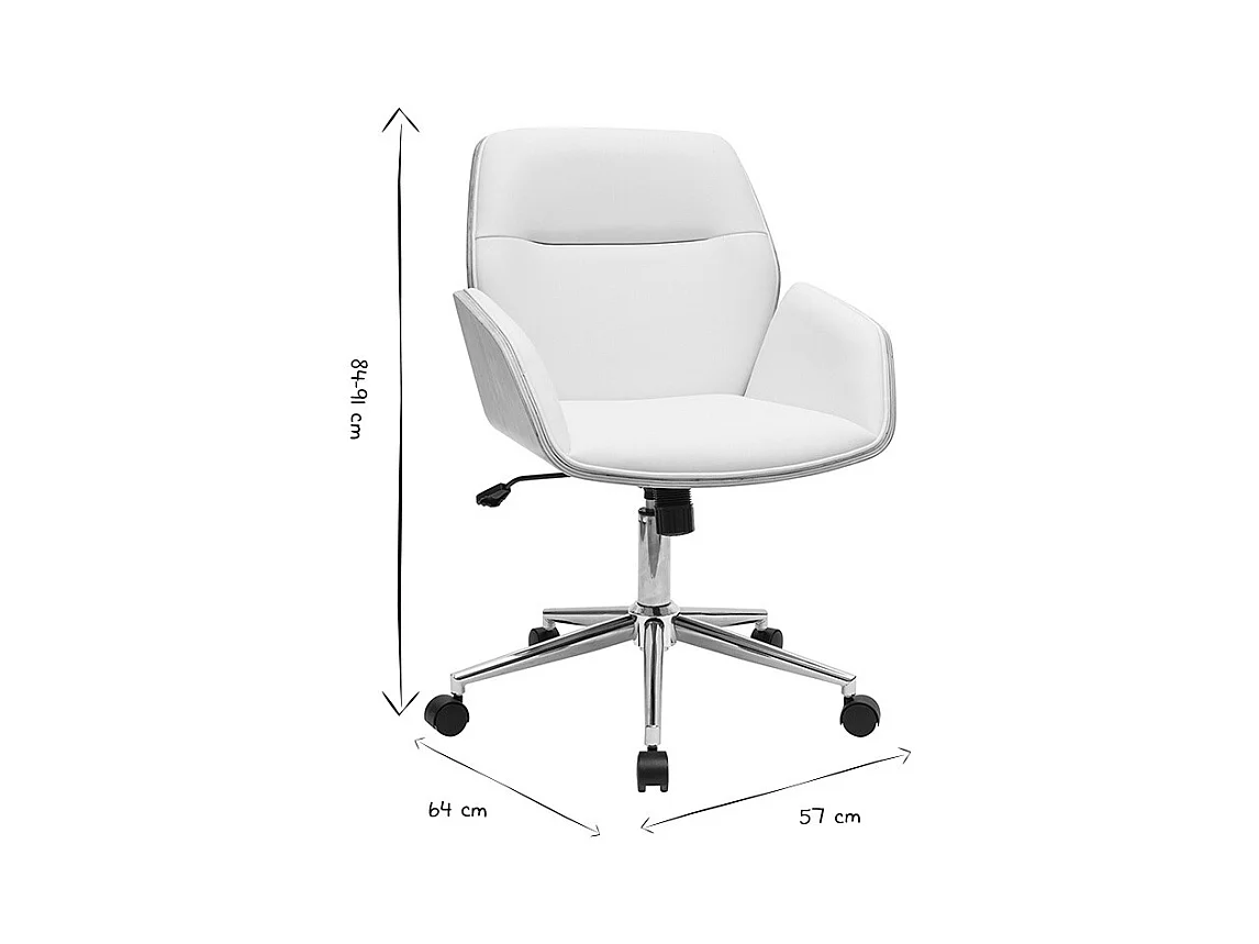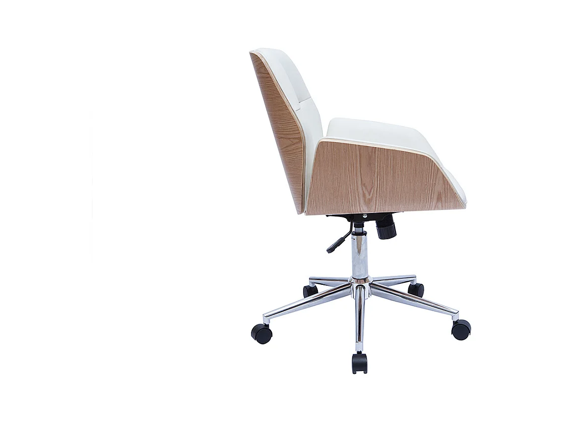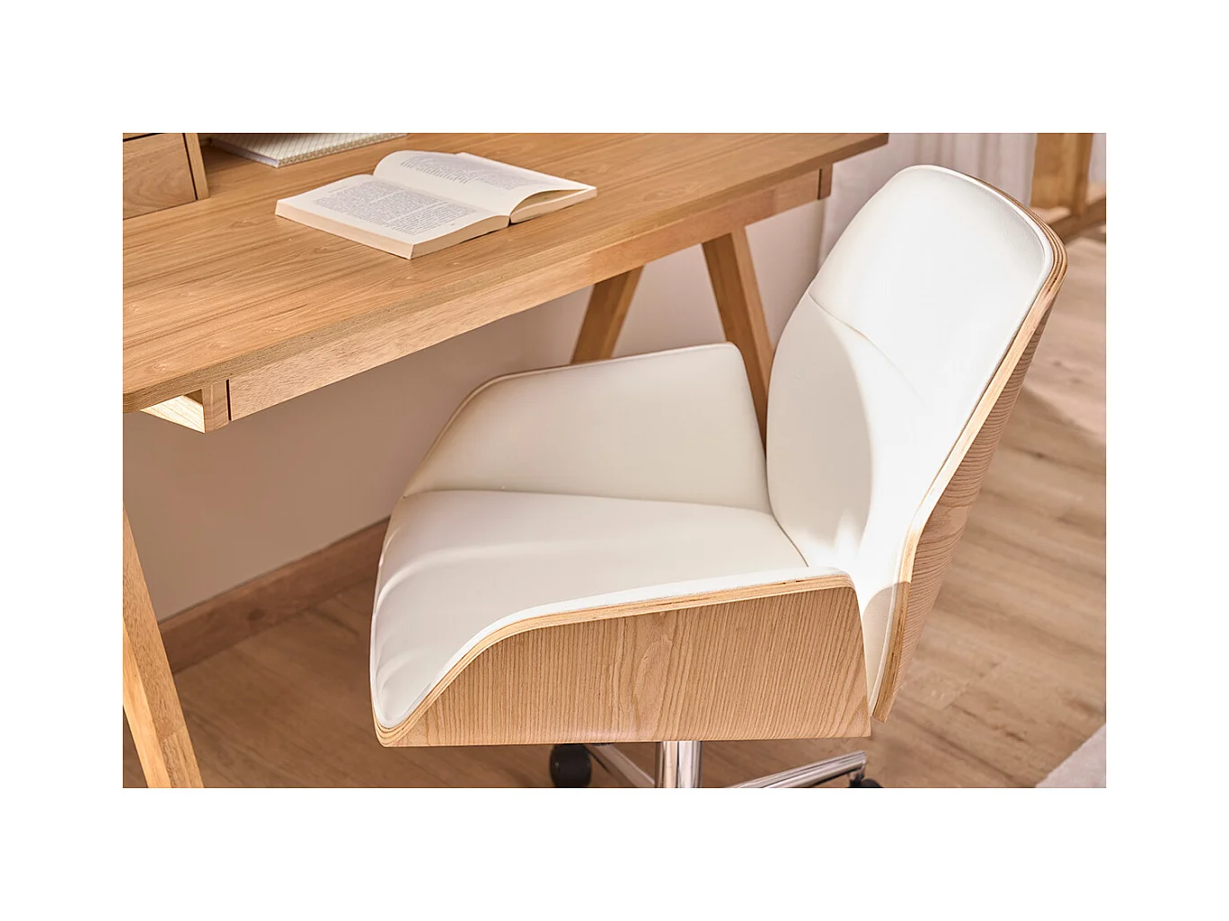 Bürostuhl drehbar weiß mit hellem Holz MARLOW