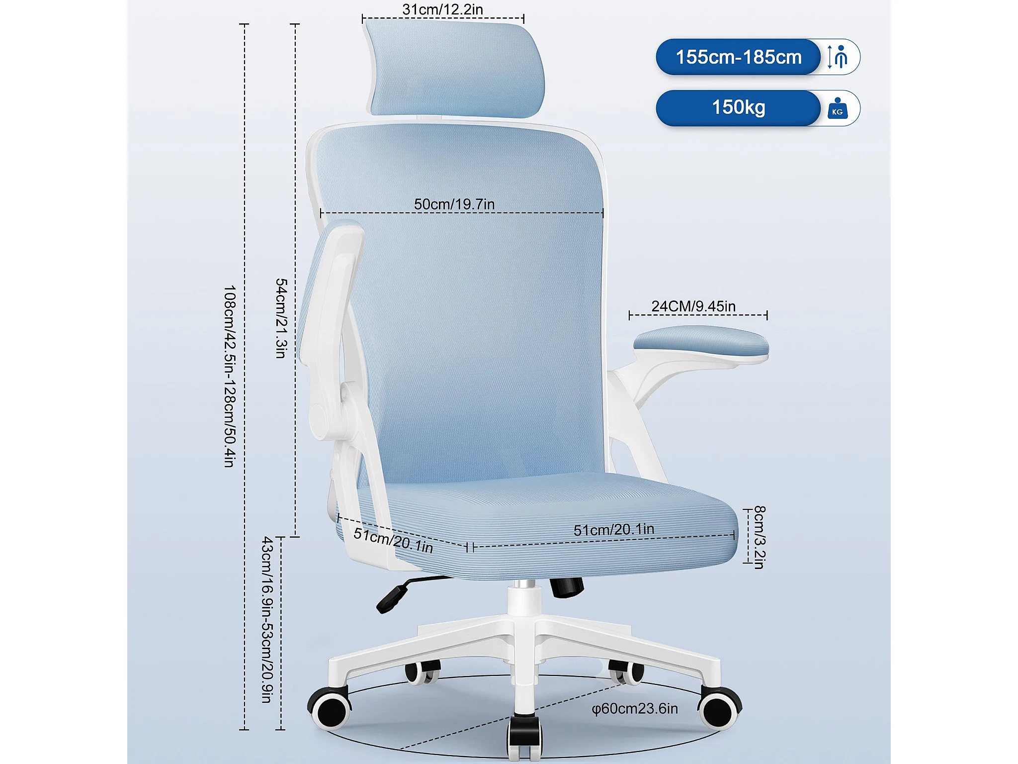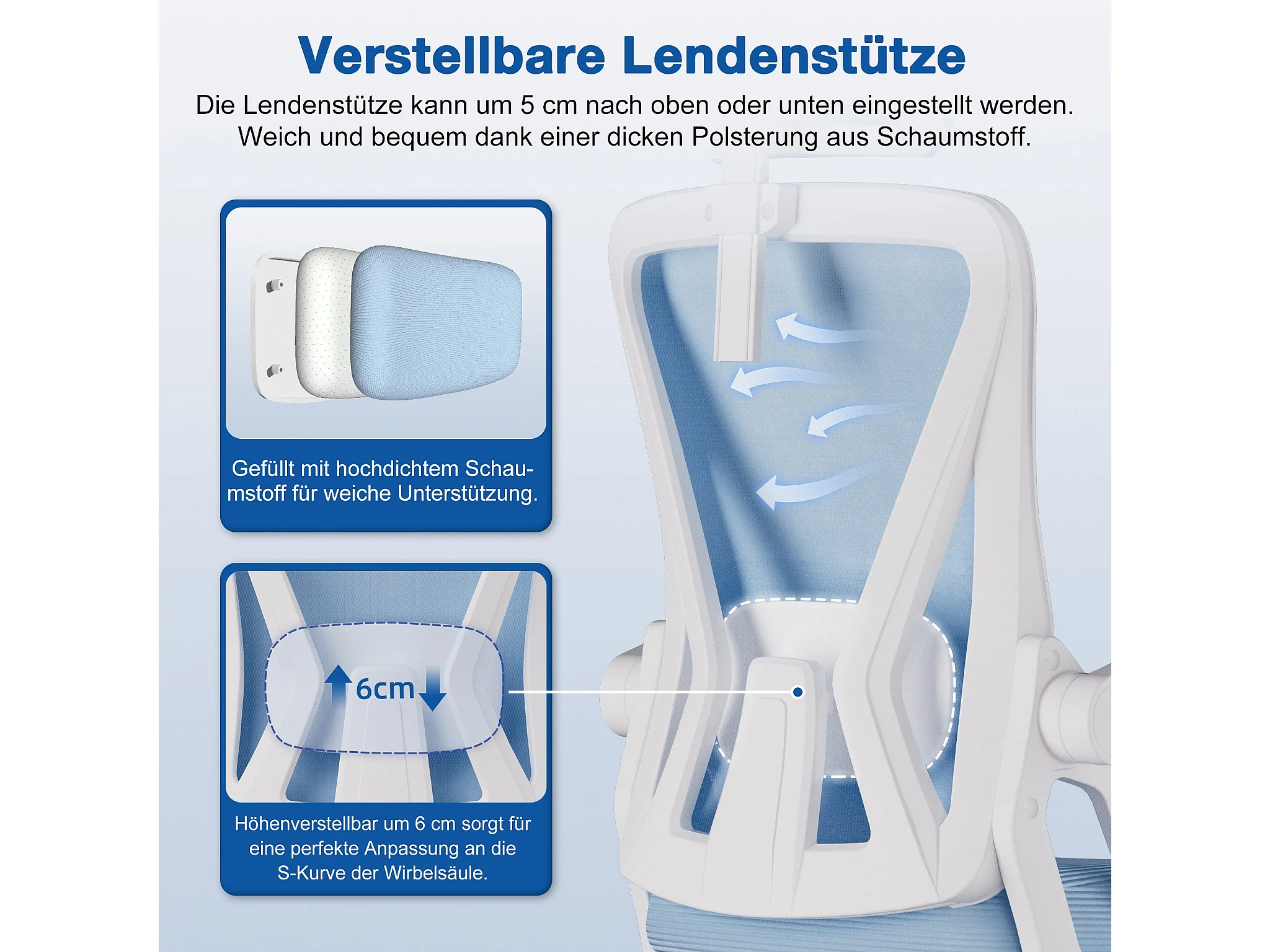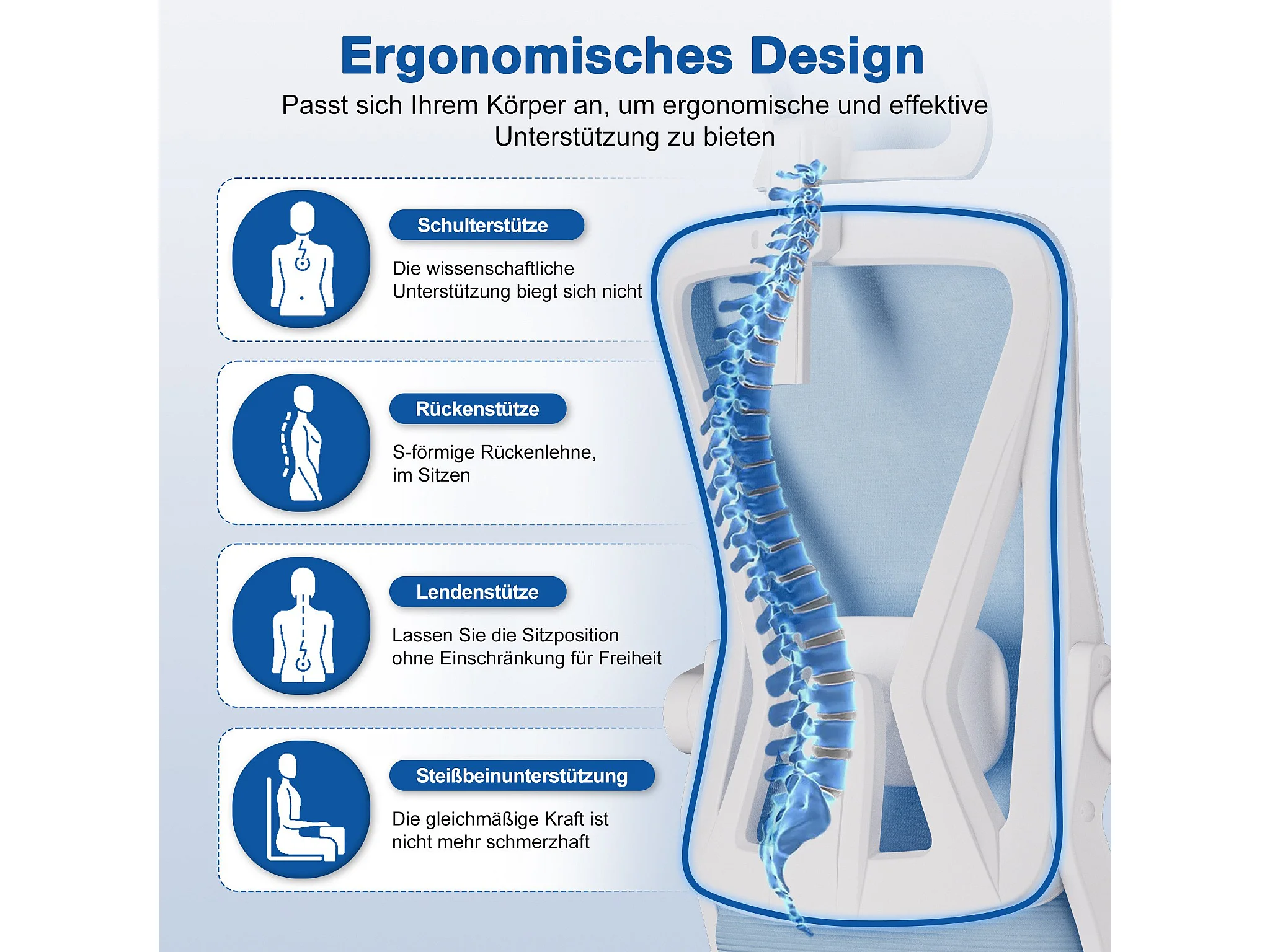 Bürostuhl - Drehbarer ergonomischer Bürostuhl - Mit verstellbarer Kopfstütze und Rückenlehne - Atmungsaktiver Bürostuhl - 150kg - Netz-Wippfunktion - Managerstuhl