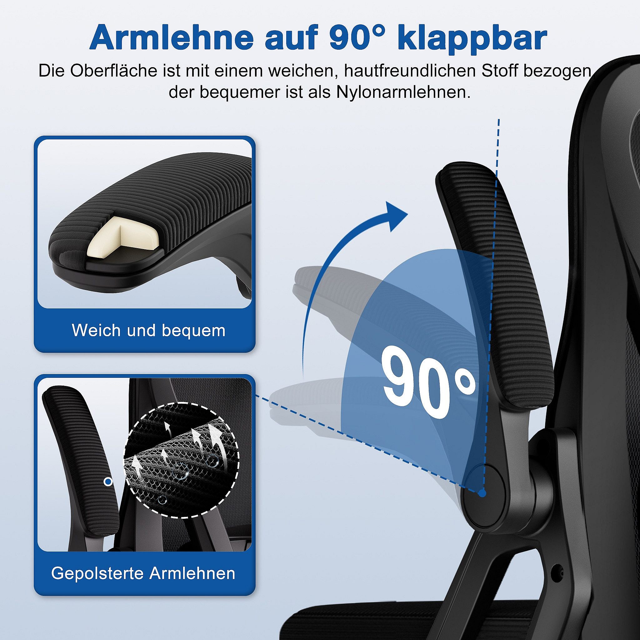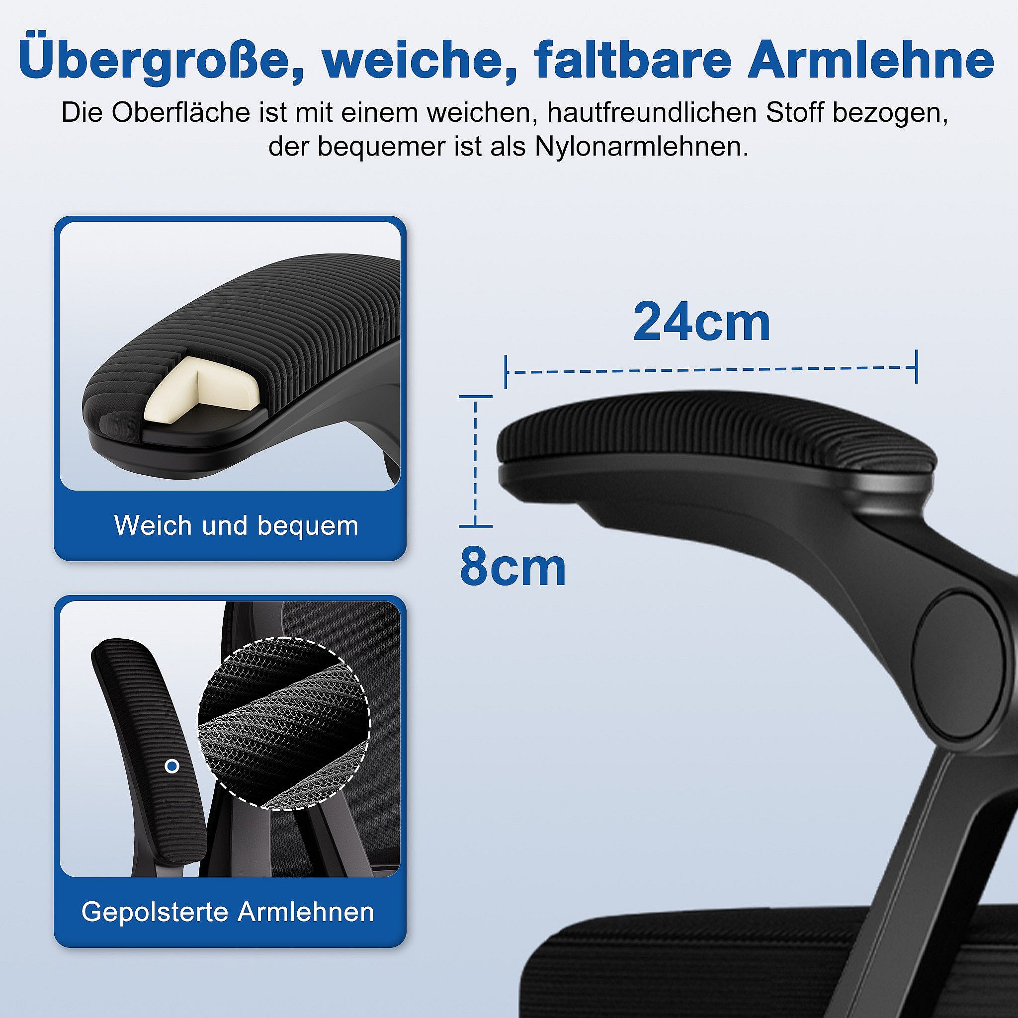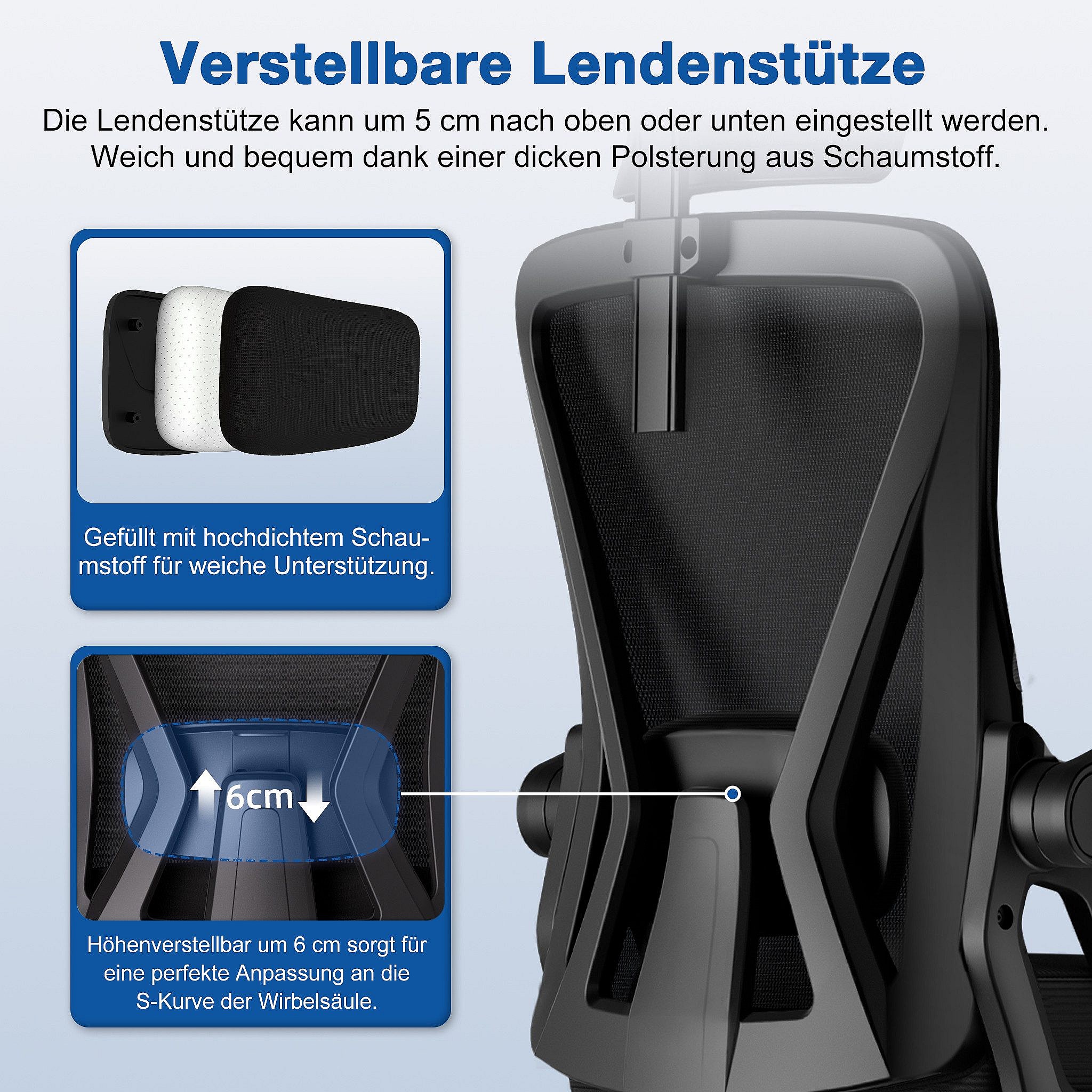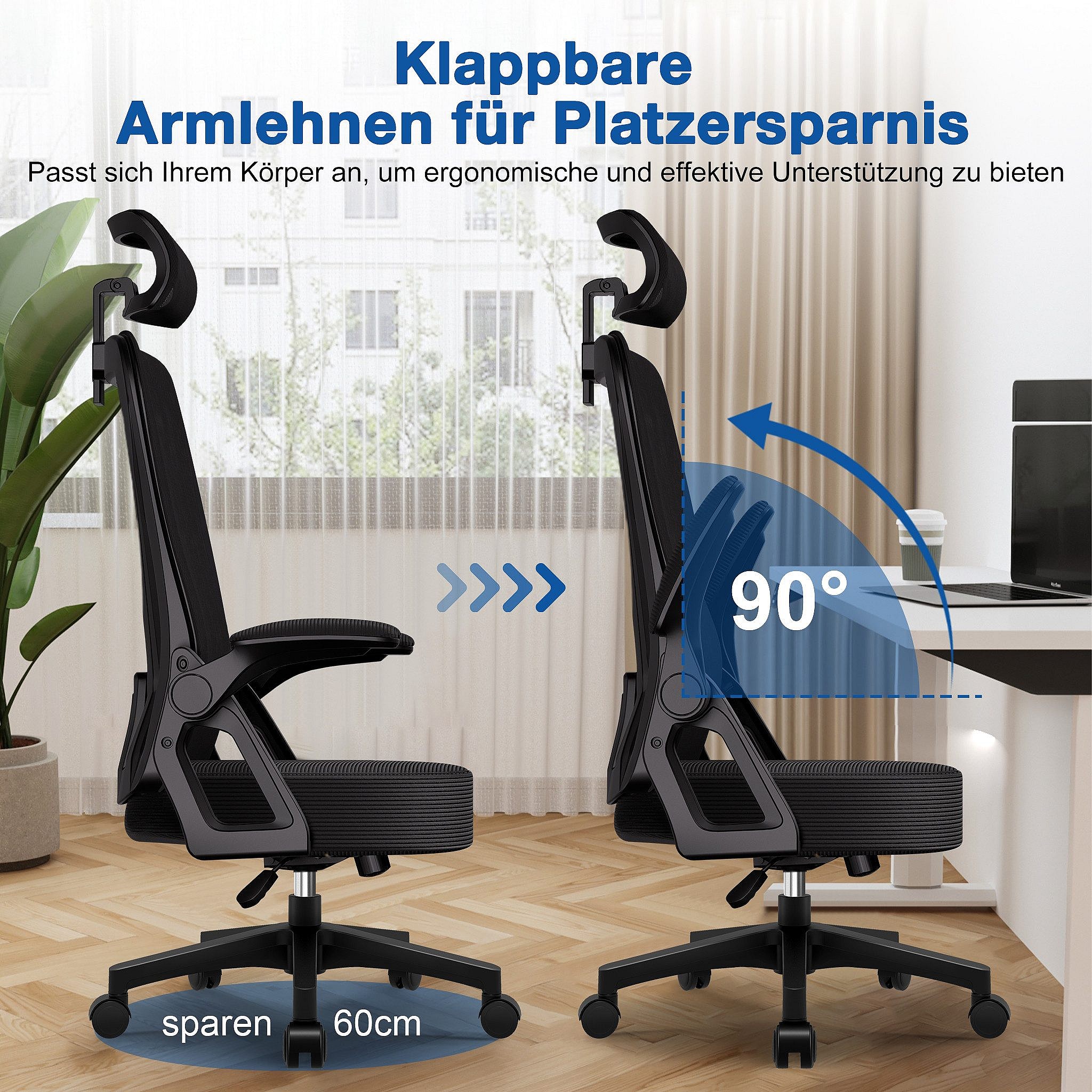Bürostuhl - Drehbarer ergonomischer Bürostuhl - Mit verstellbarer Kopfstütze und Rückenlehne - Atmungsaktiver Bürostuhl - 150kg - Netz-Wippfunktion - Managerstuhl