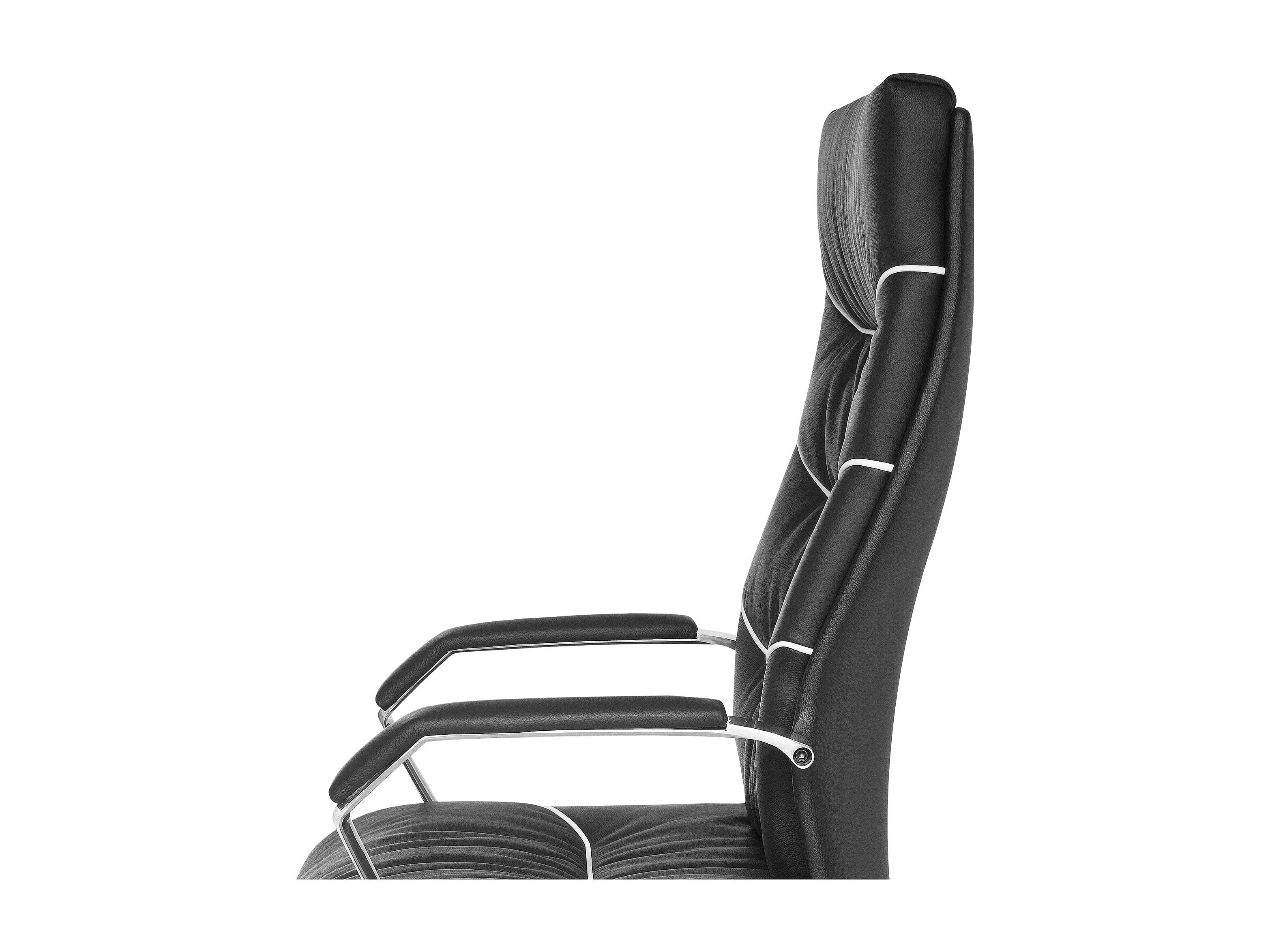 Bürostuhl Echt-Leder schwarz Schreibtischstuhl, Chefsessel mit Kopfstütze & Multiblockmechanik,