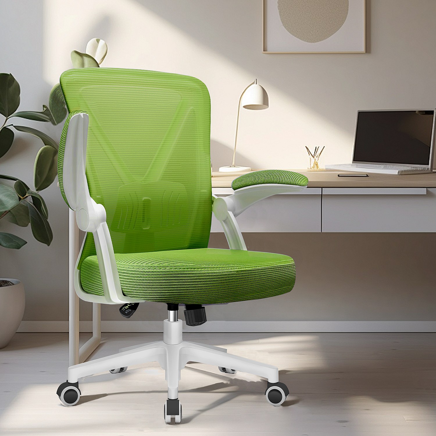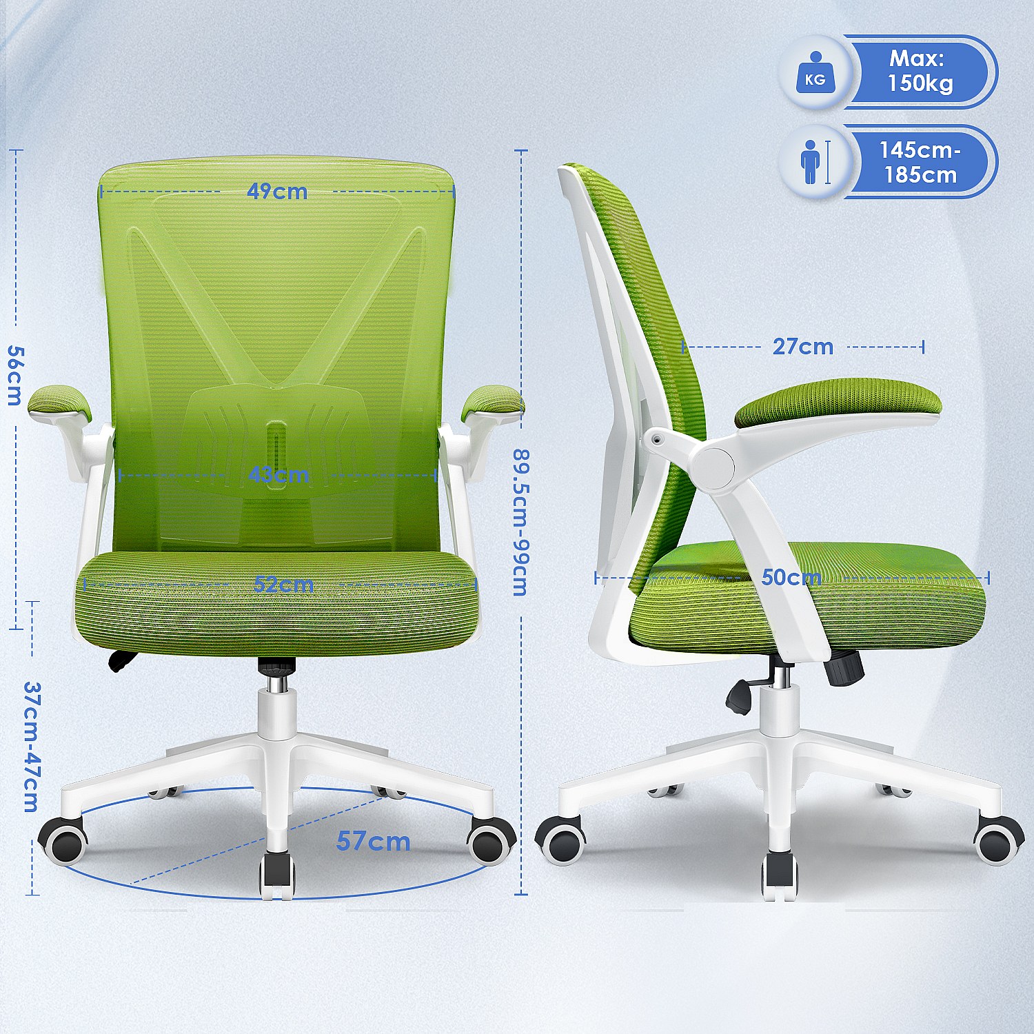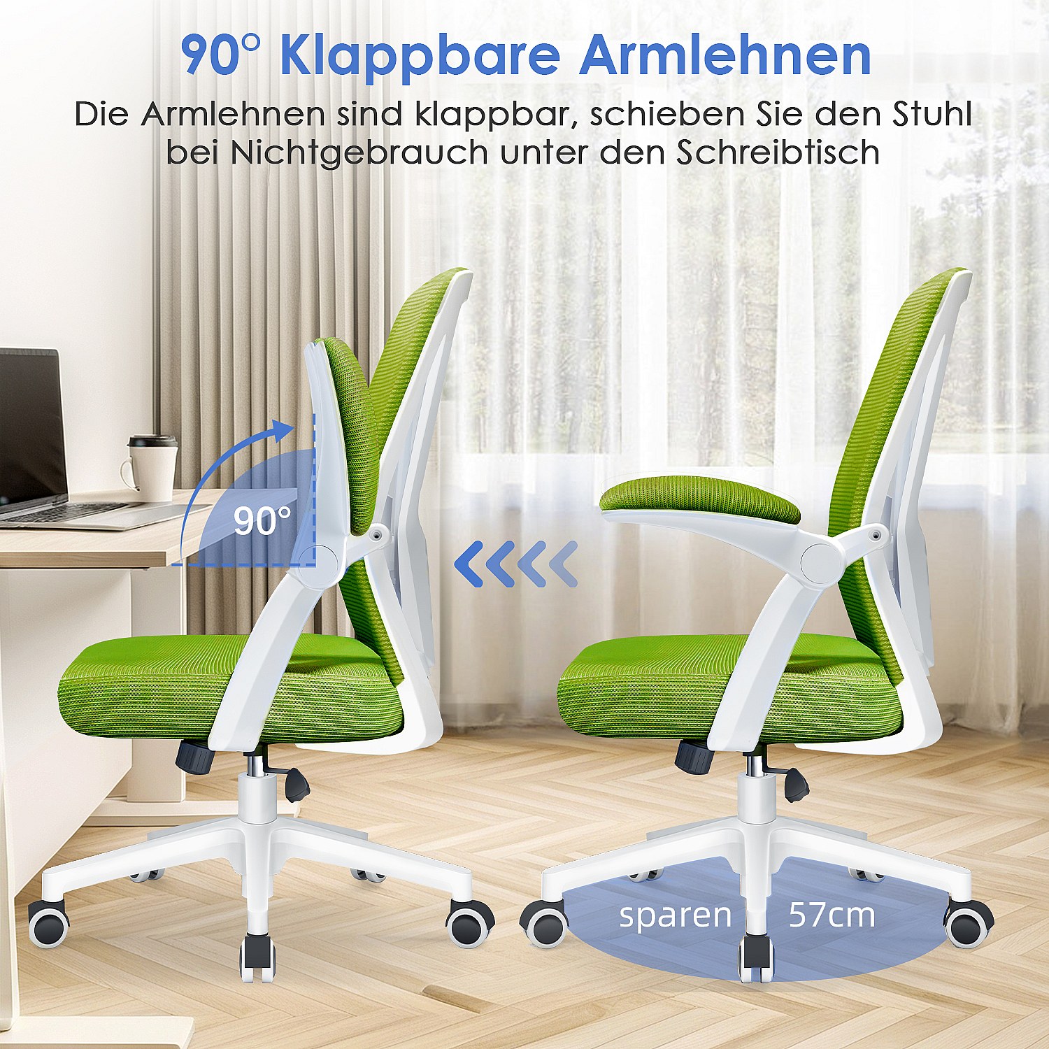 Bürostuhl - Ergonomischer Bürostuhl mit klappbaren Armlehnen - 360° Drehstuhl - Lendenwirbelstütze mit Höhenverstellung - 125° Wippfunktion - 150kg