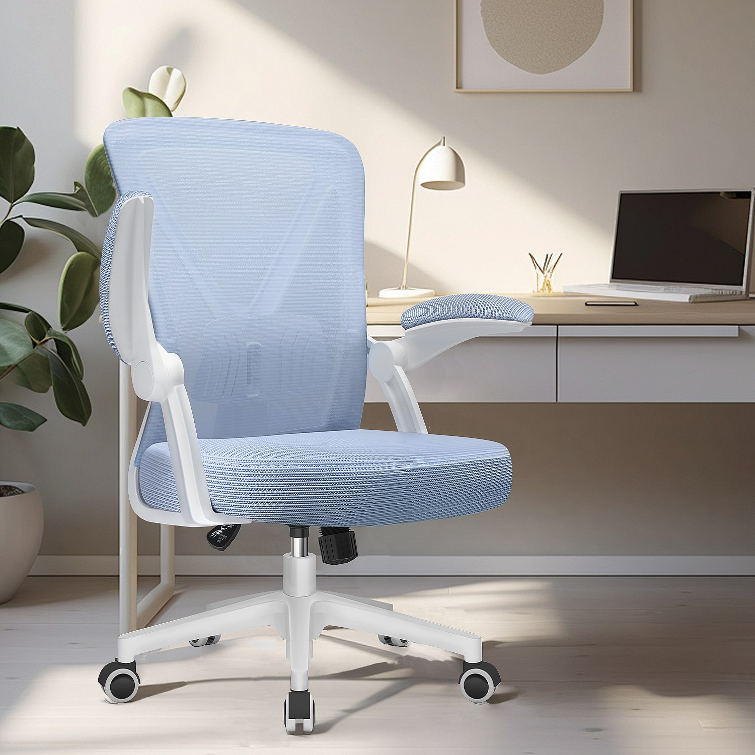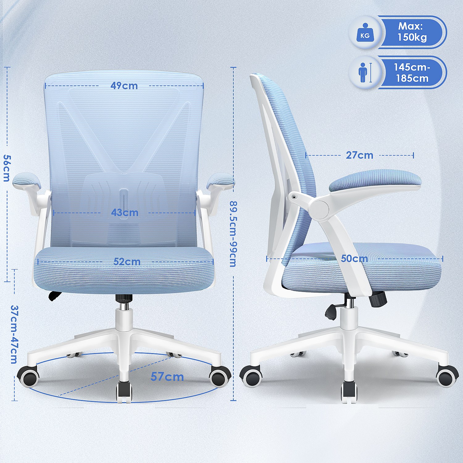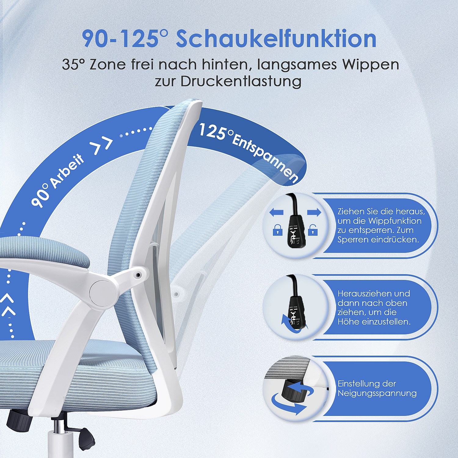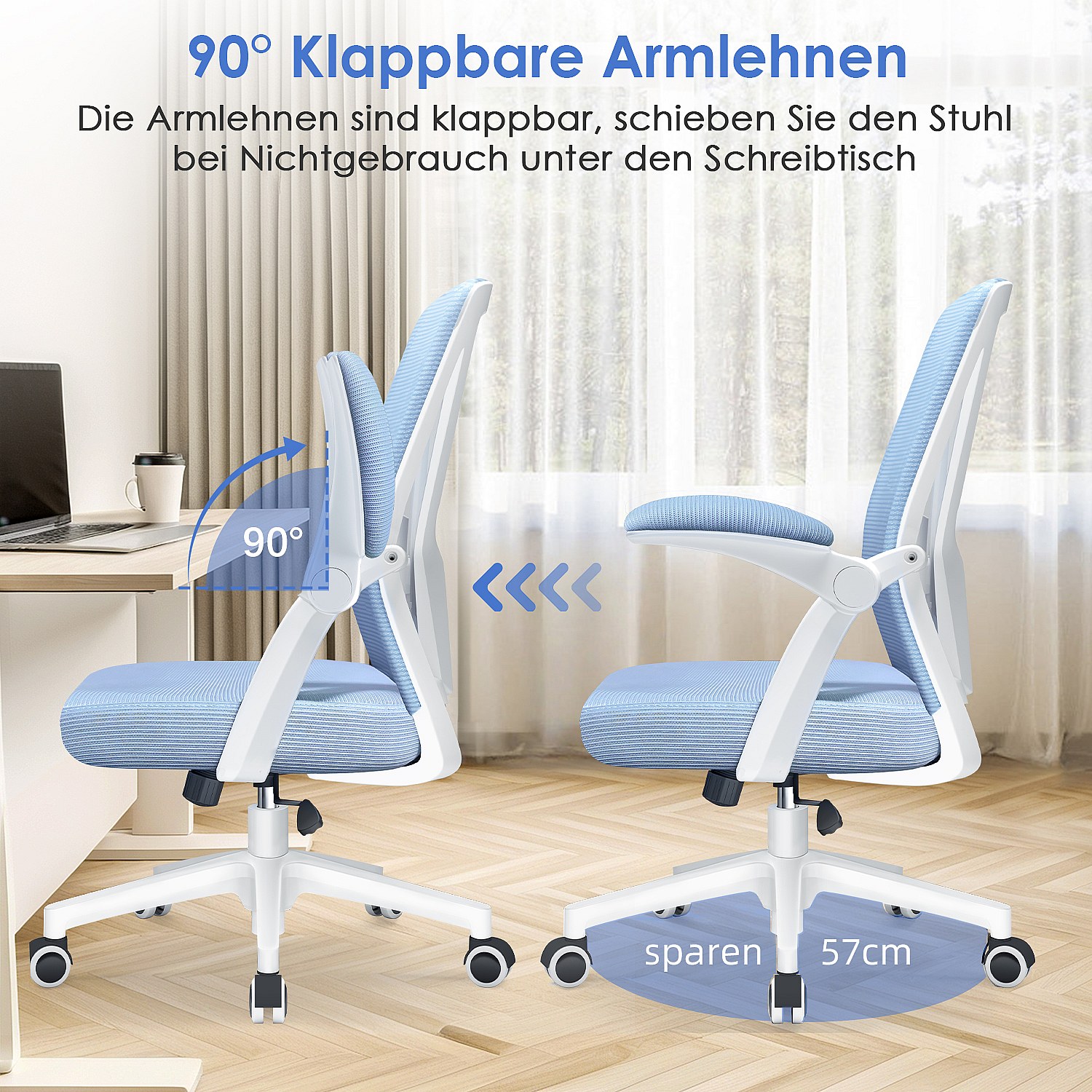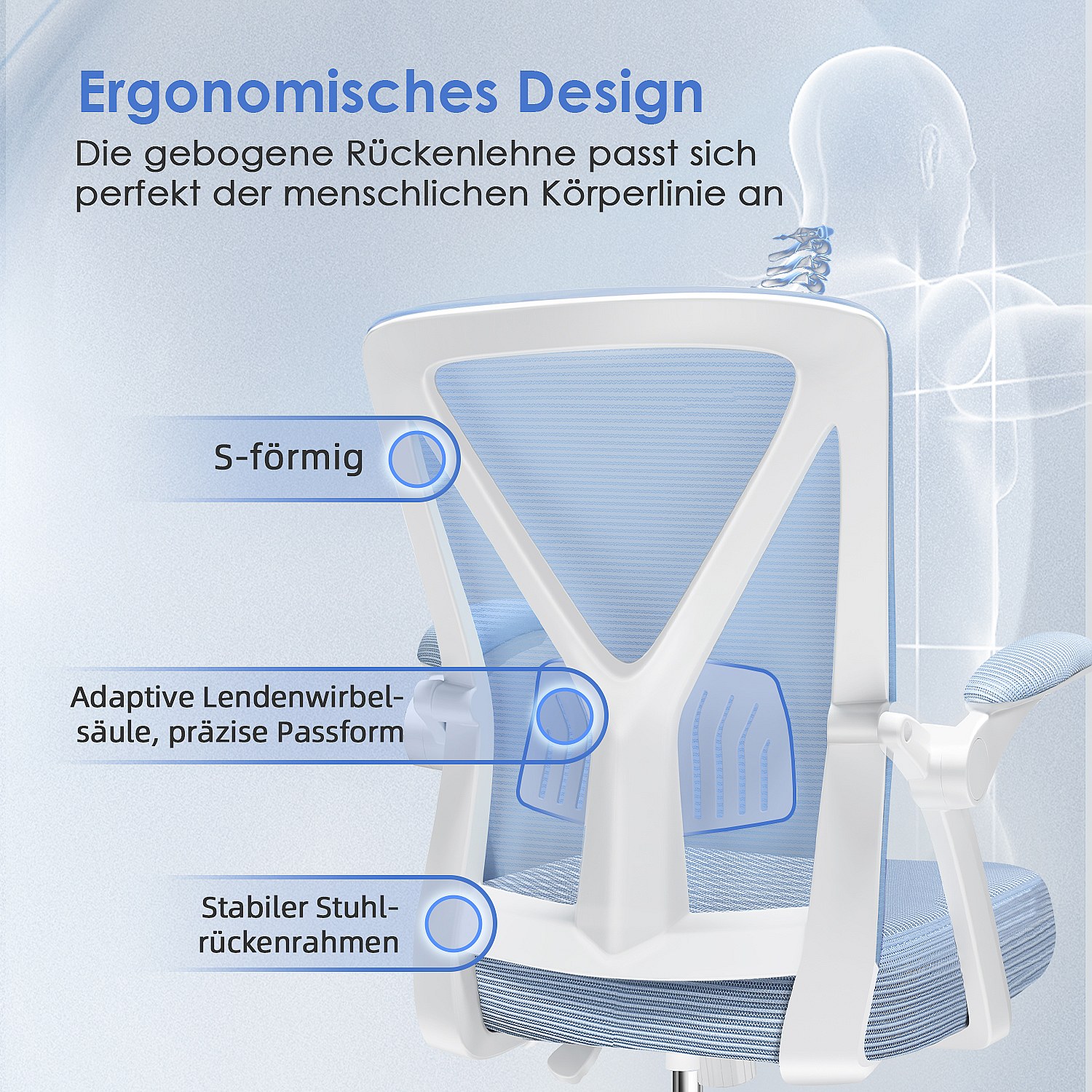 Bürostuhl - Ergonomischer Bürostuhl mit klappbaren Armlehnen - 360° Drehstuhl - Lendenwirbelstütze mit Höhenverstellung - 125° Wippfunktion - 150kg