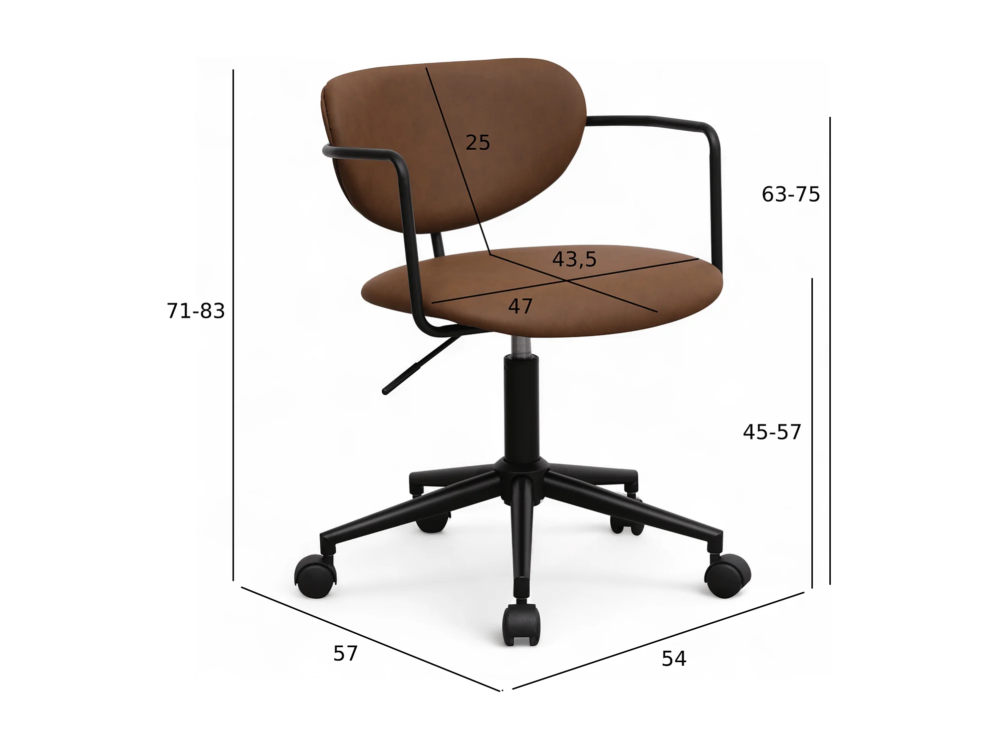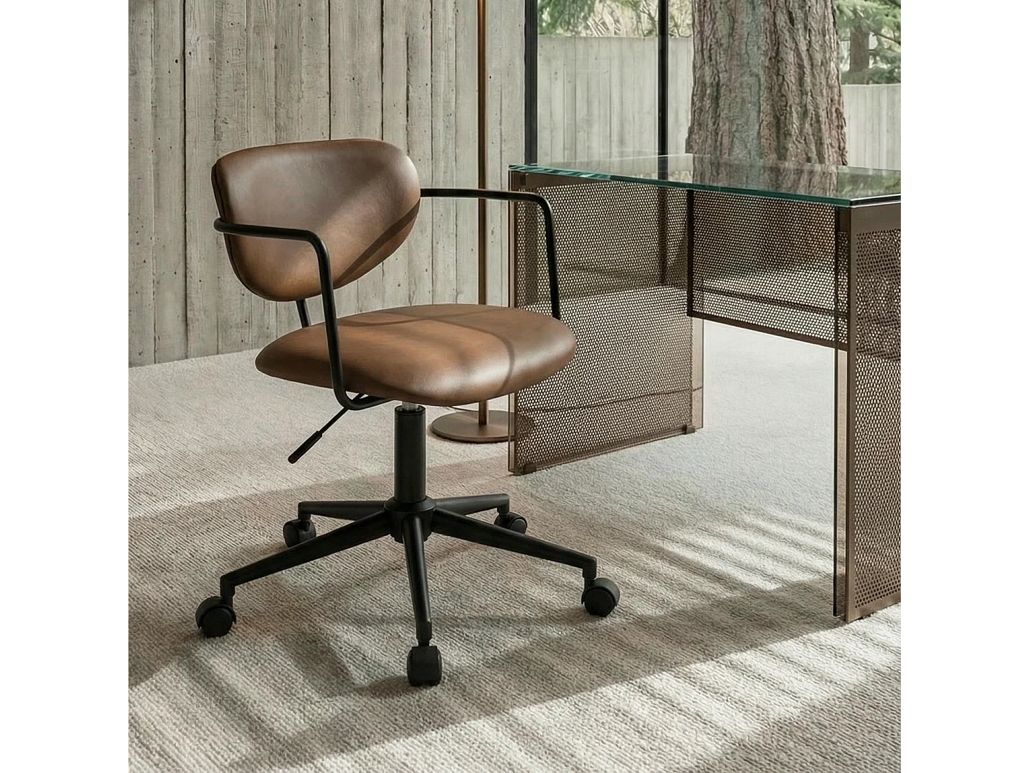 Bürostuhl höhenverstellbar Lido - Kunstleder & Metall - Dunkelbraun