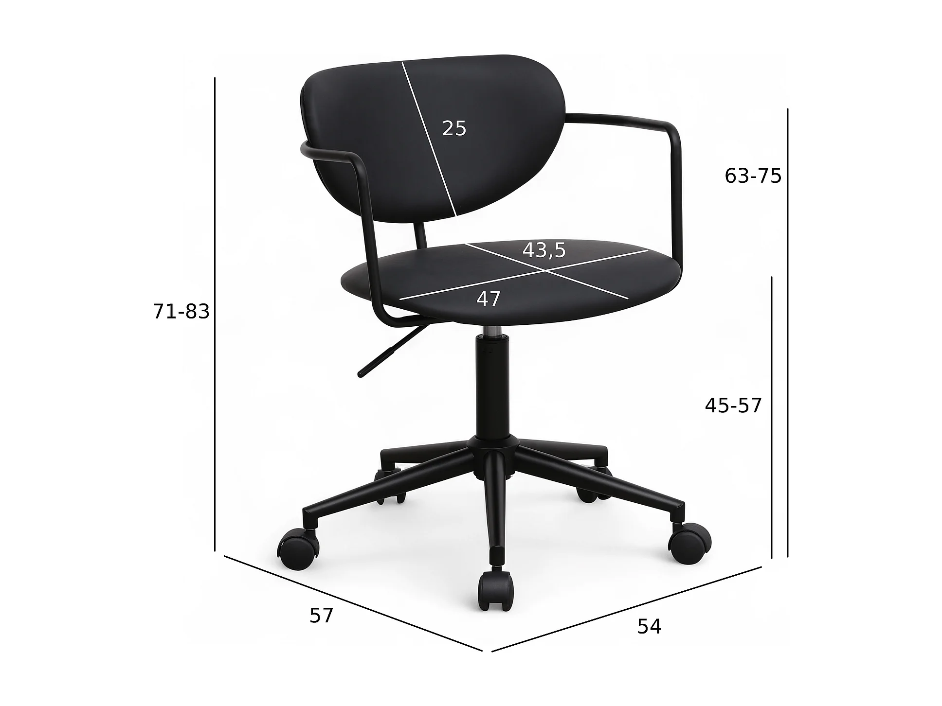 Bürostuhl höhenverstellbar Lido - Kunstleder & Metall - Schwarz