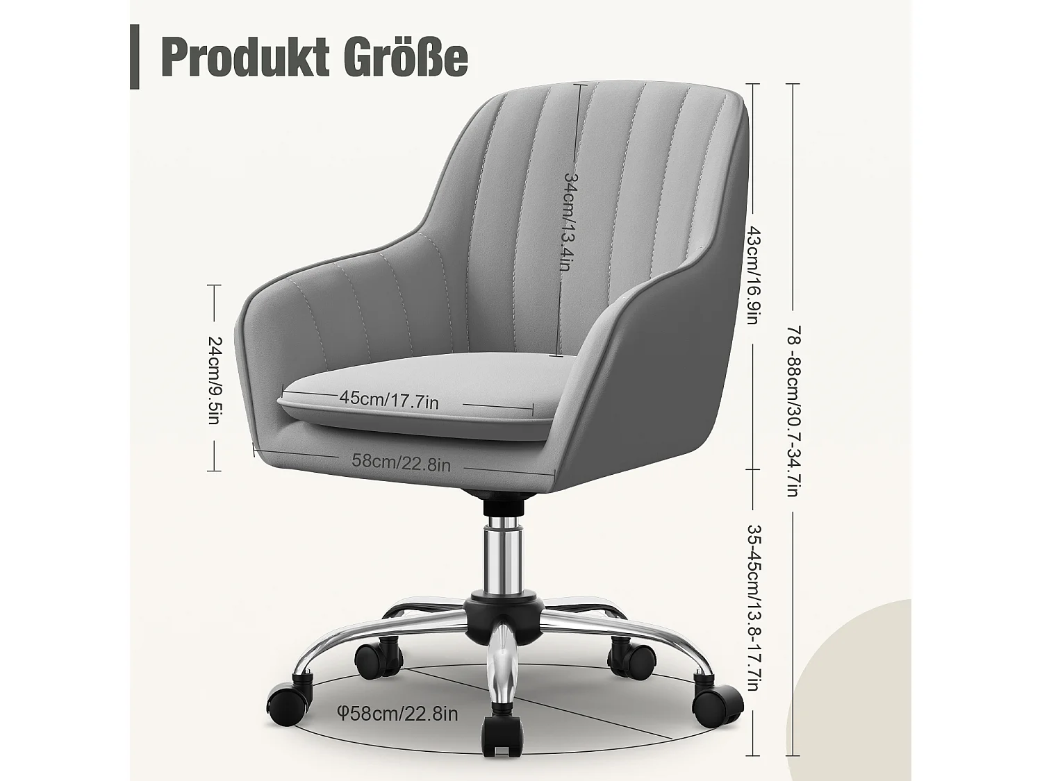 Bürostuhl Homeoffice Stuhl - Schminkstuhl mit Armlehnen - Drehstuhl mit Rrollen - Samt Stuhl - höhenverstellbar für Schminktisch - Arbeitszimmer - Schlafzimmer