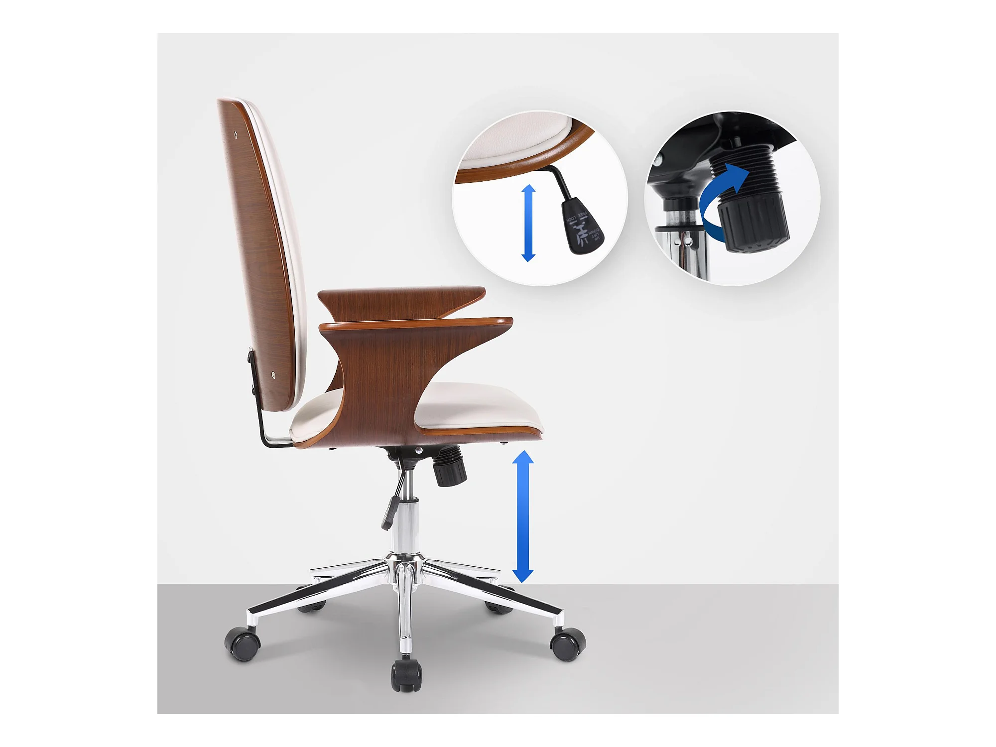 Bürostuhl - Kunstleder & Metall in Chromoptik - walnuss/weiß - Burbank