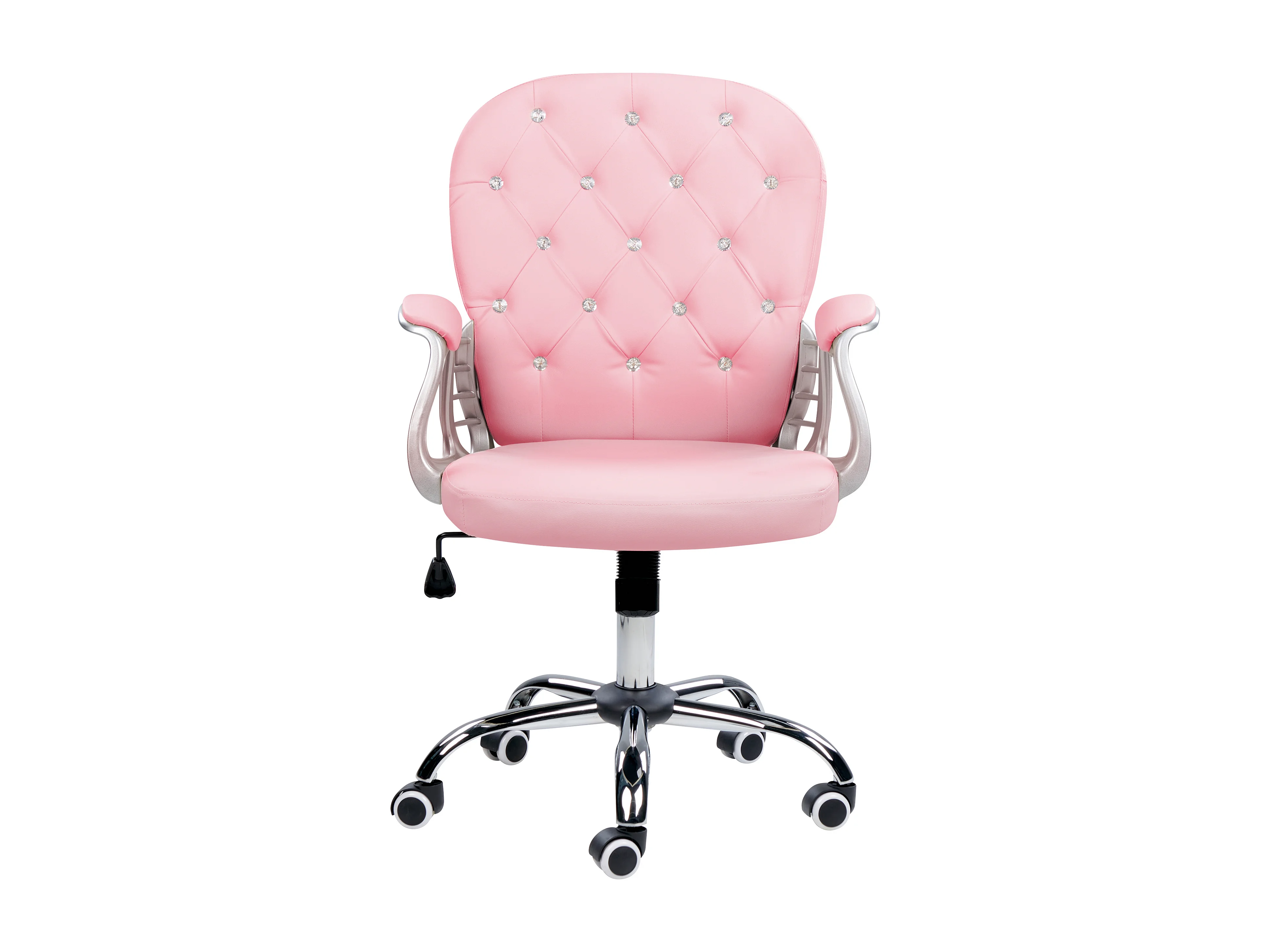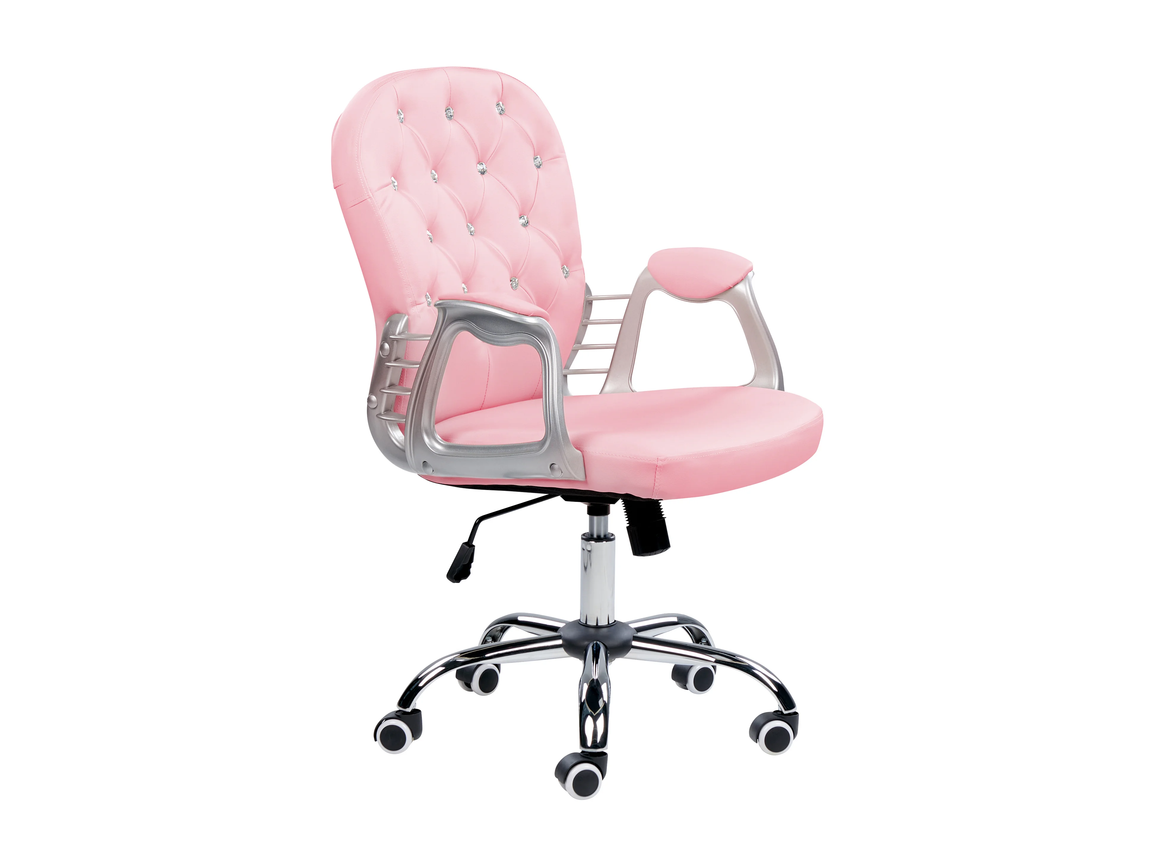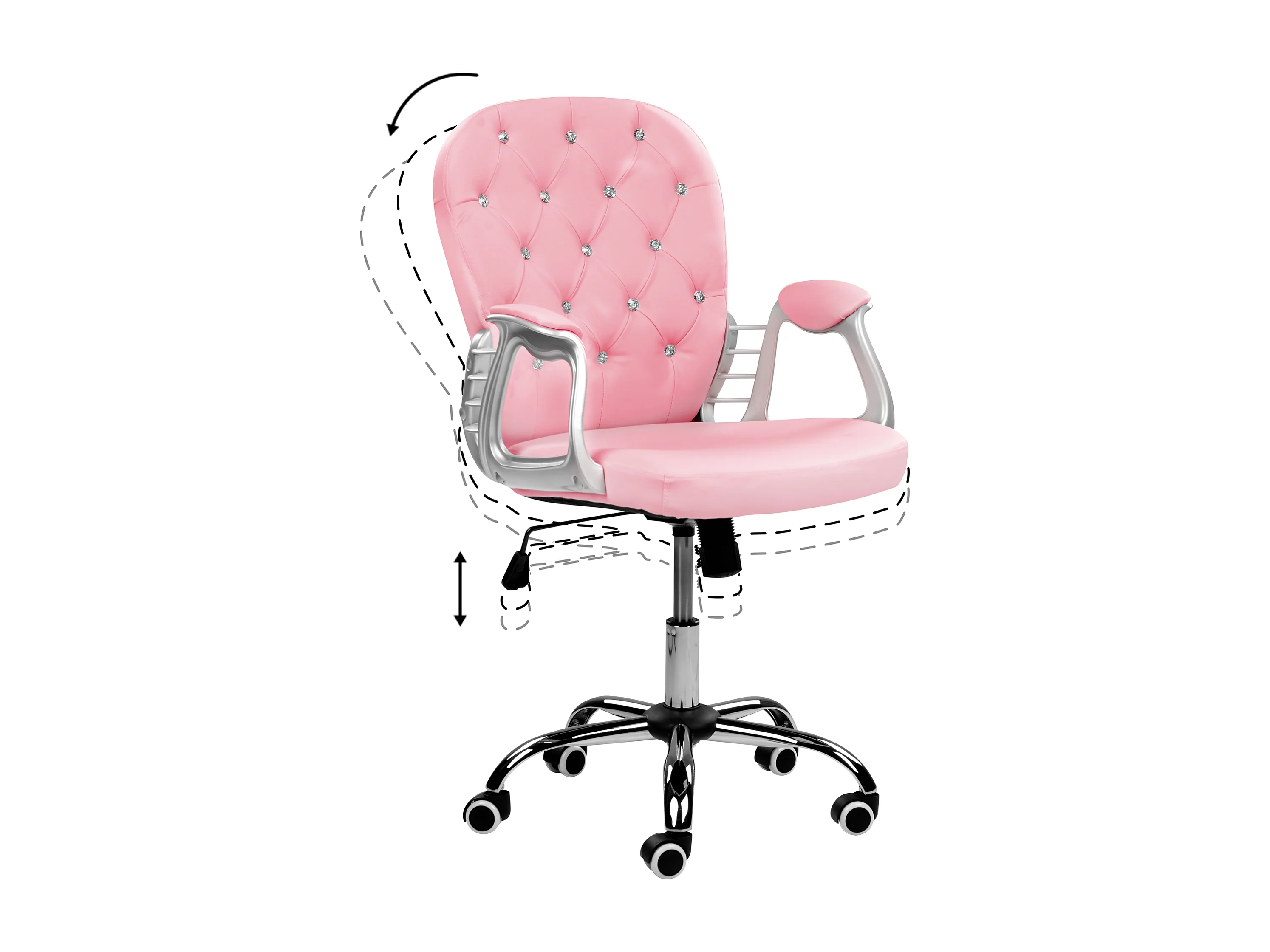Schöner drehbarer Bürostuhl Kunstleder Verstellbare Rückenlehne mit Kristallknöpfen in Rosa Princess