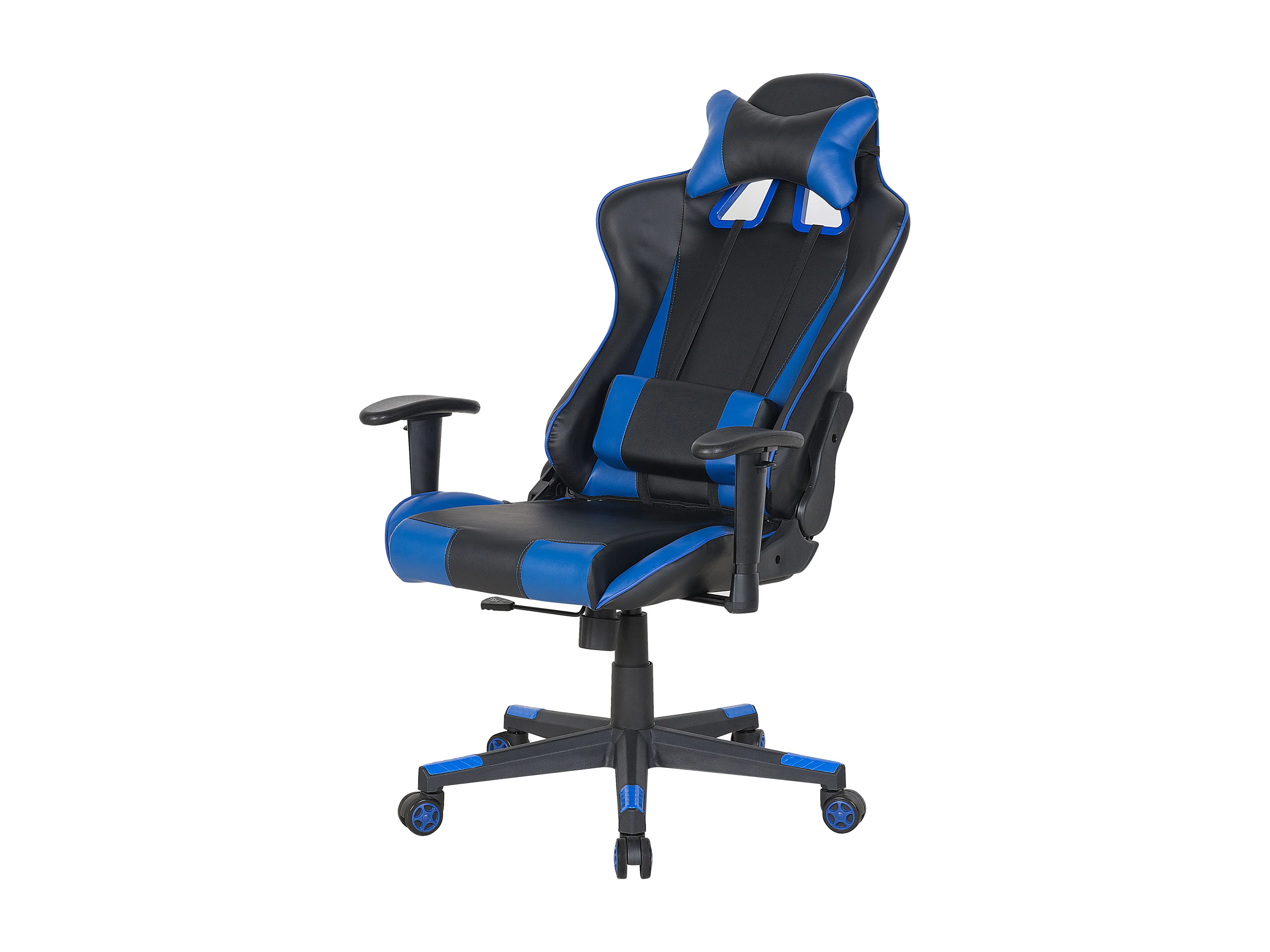 Moderner Gaming Stuhl drehbar dunkelblau/schwarz mit Fußstützen Bürostuhl Gamer