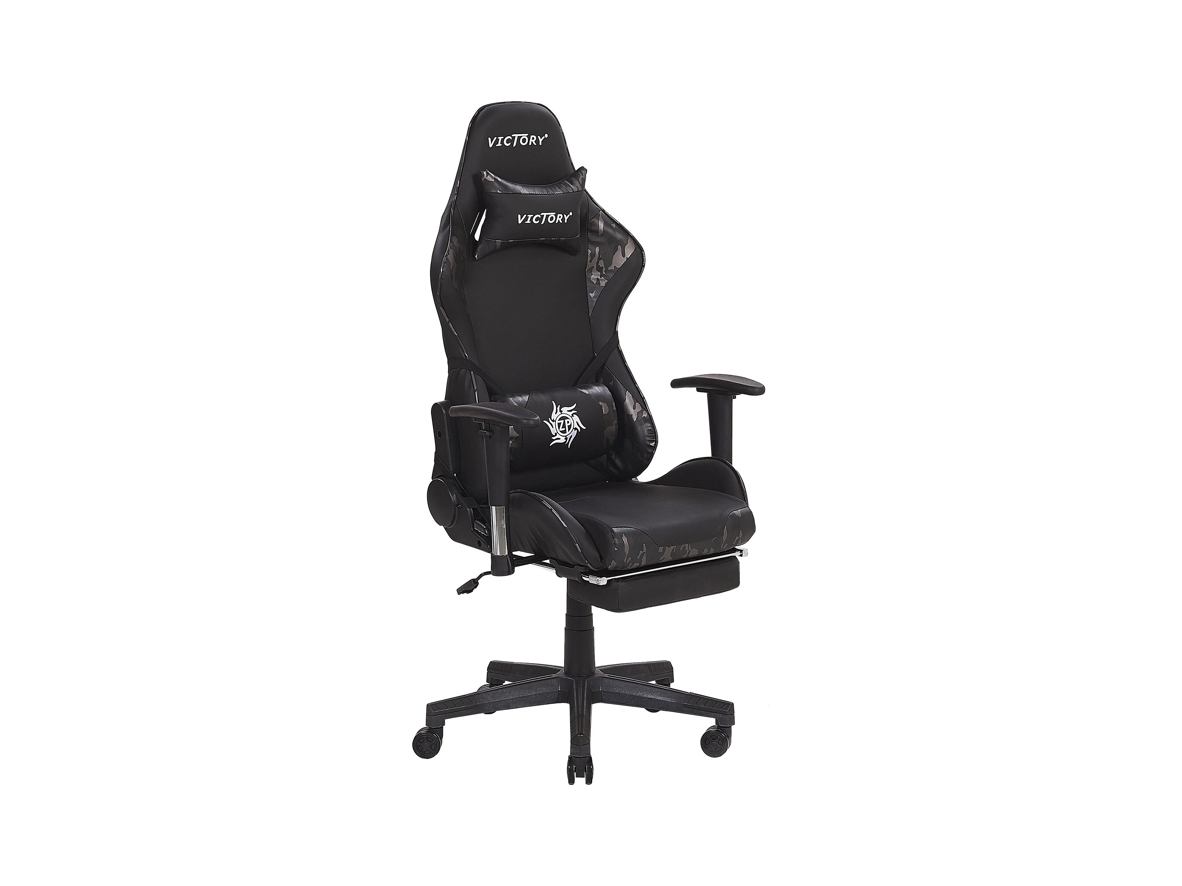 Moderner Gaming Stuhl mit Fußstützen Schwarz/Militär-Muster Kunstleder Victory