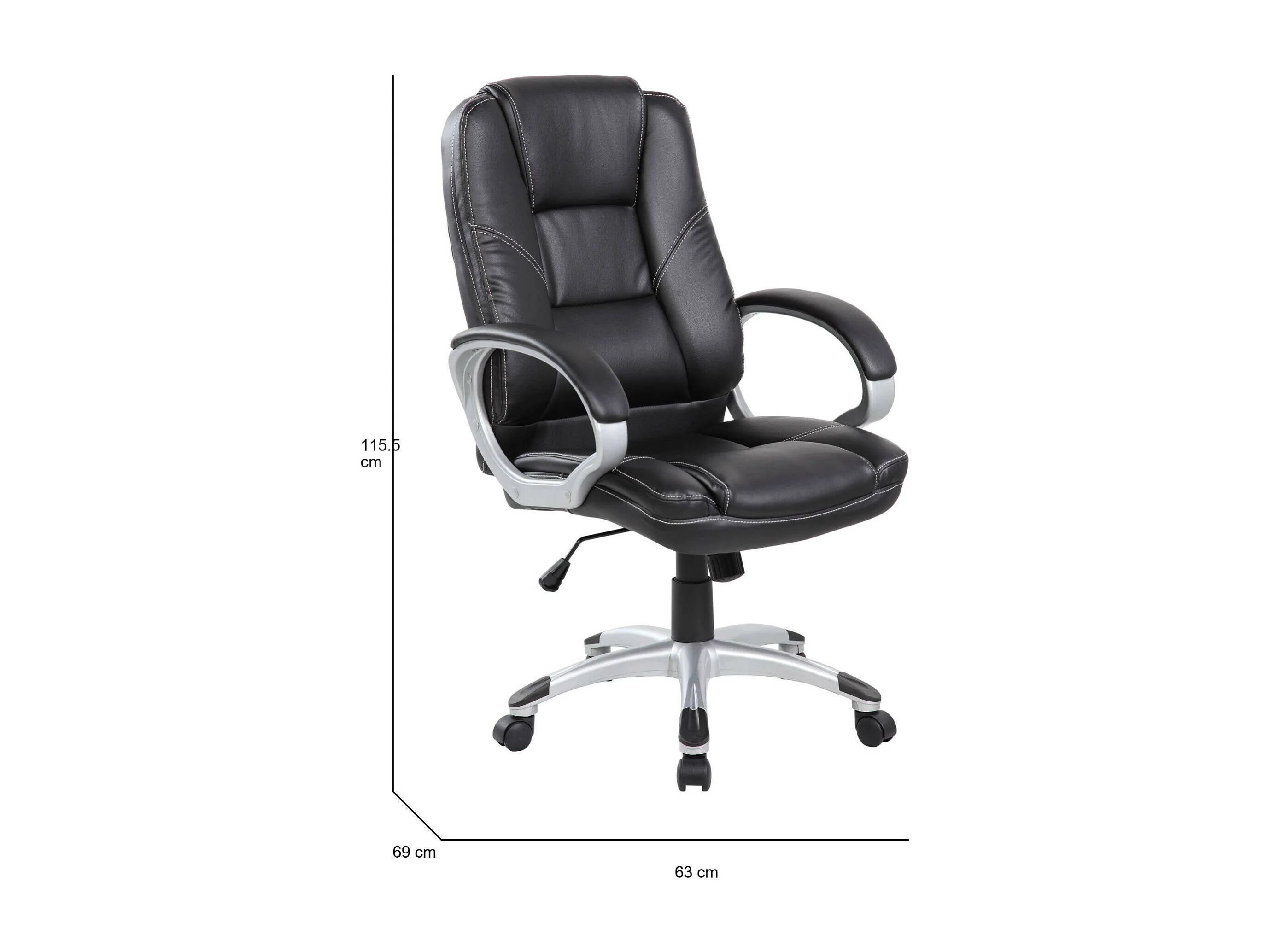 Bürostuhl Tamworth, Chefsessel mit Armlehnen, Ergonomischer Bürostuhl, 69x63h105/116 cm, Schwarz