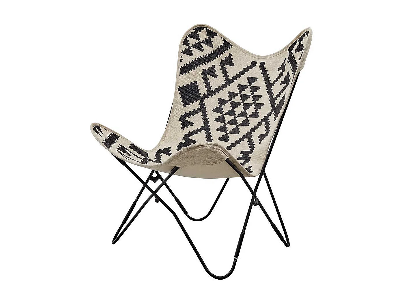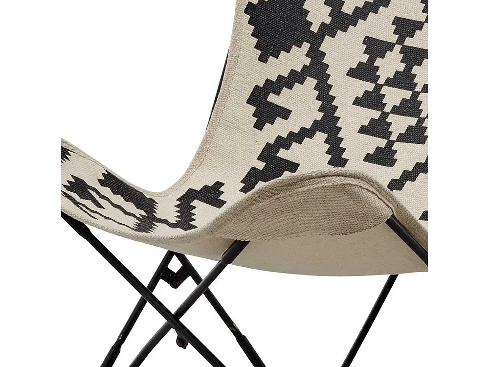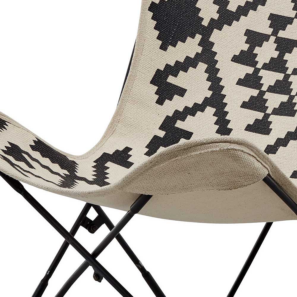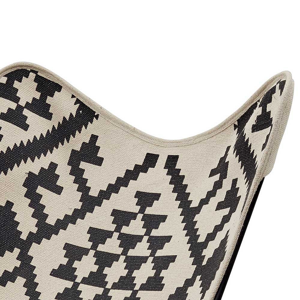 Butterfly-Stuhl schwarz weiß mit Ethno Muster 34 cm Sitzhöhe