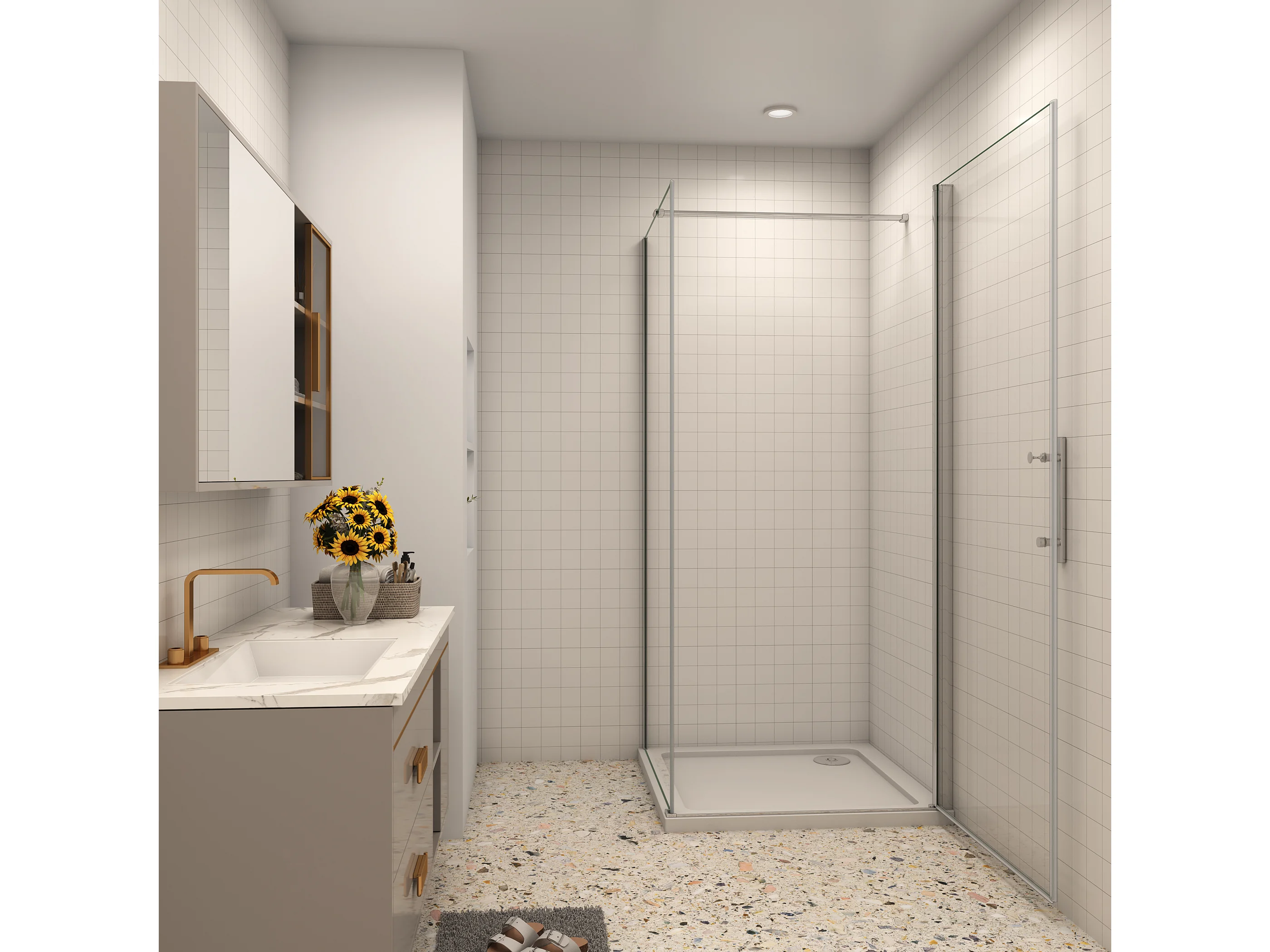 BxT: 90x90cm Duschkabine Duschabtrennung Eckeinstieg Dusche Duschtür Duschwand 6mm NANO-Glas Höhe: 185cm & Stabilisator 90cm