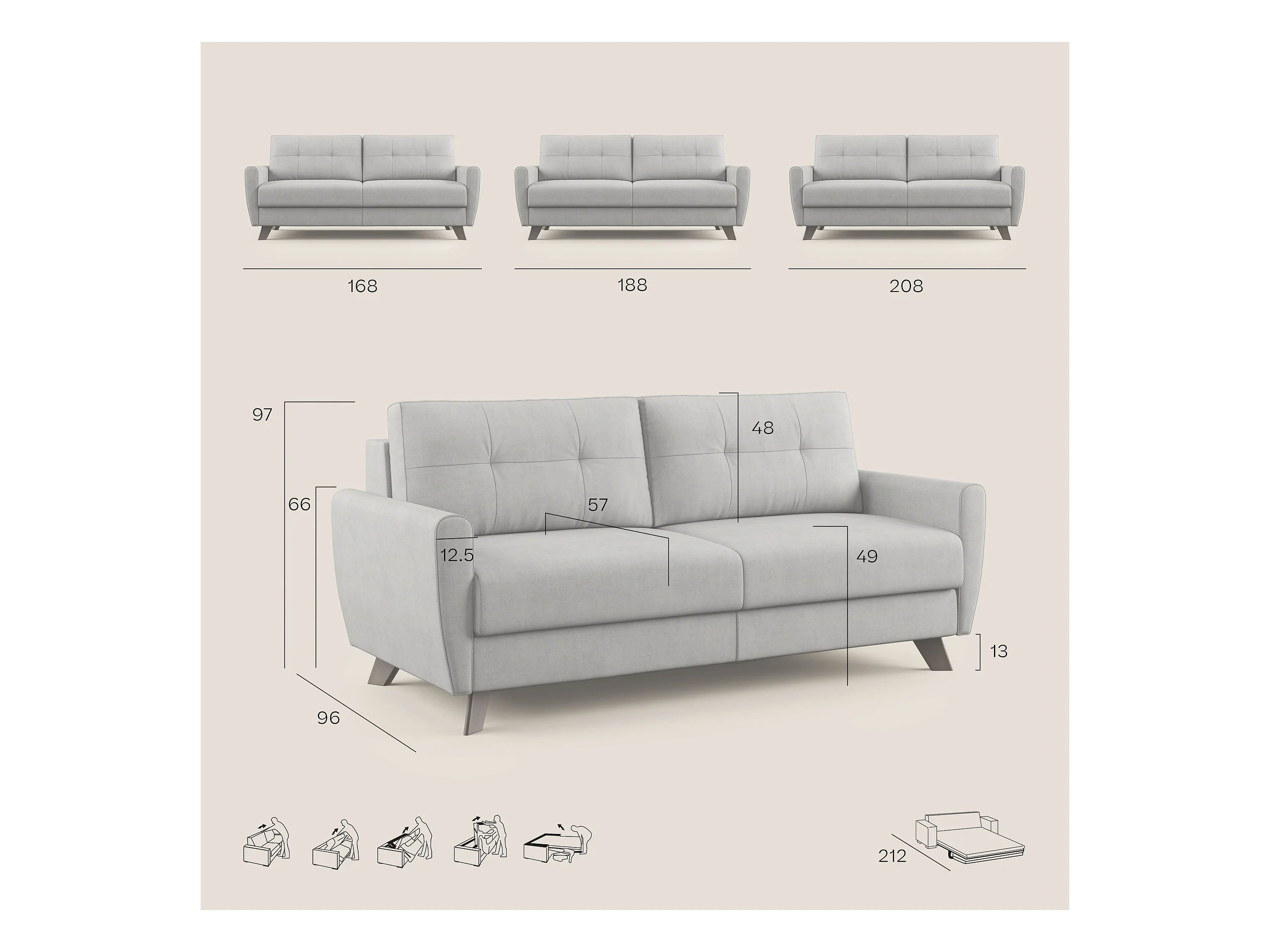 Callisto Schlafsofa aus weichem, wasserfestem Stoff T02 168 cm (mat. 120x197) grau