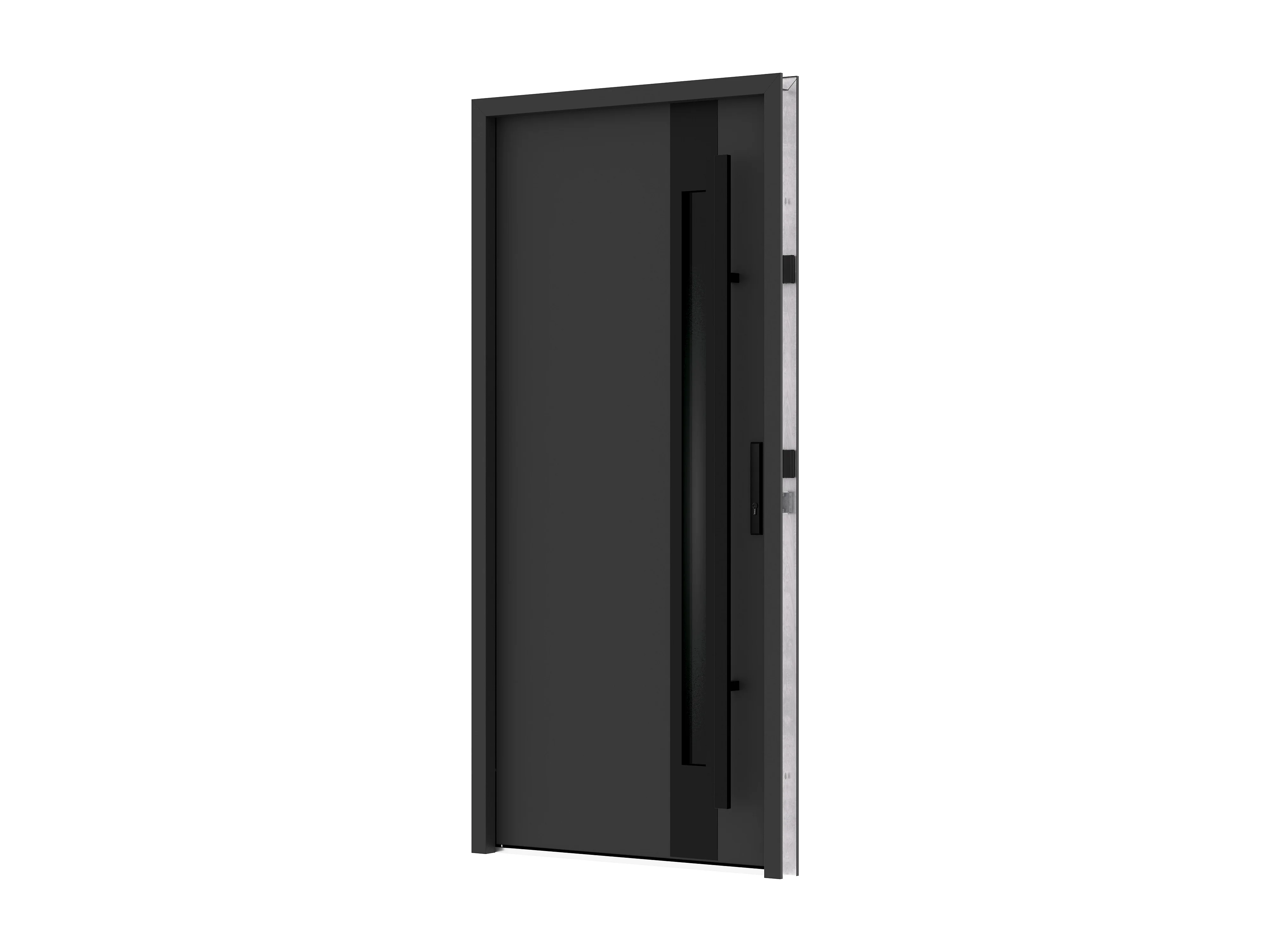 Eingangstür aus massivem Stahl und Edelstahl H207 x B100 cm - Stärke 68mm - Rauchglas - Anthrazit und Schwarz - Linksanschlag - CALOSA