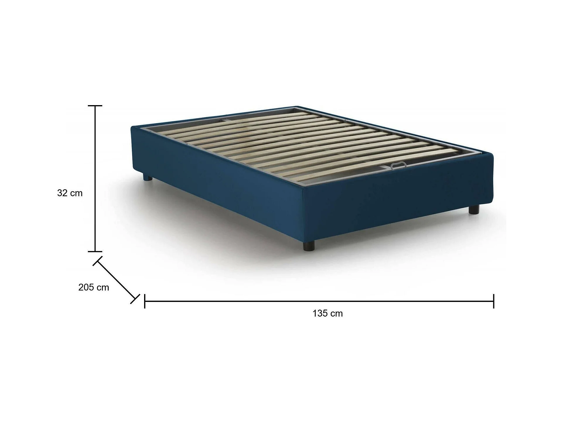 Camilla Doppelbett, Bettkasten mit Stoffbezug, 100 % Made in Italy, seitliche Öffnung, geeignet für Matratze 120 x 190 cm, Blau