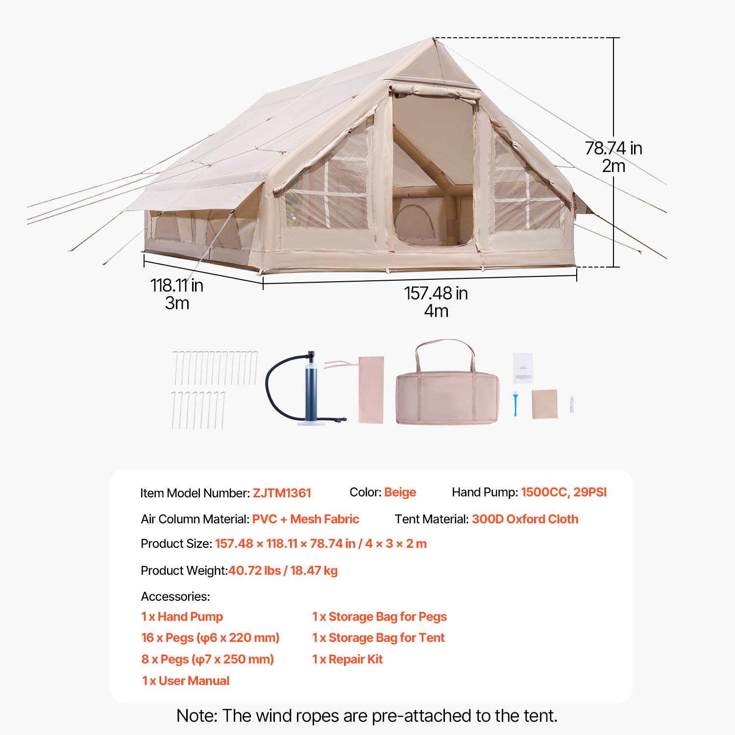 Campingzelt SucceBuy, Aufblasbar für Glamping für 5 bis 8 Personen mit Pumpe , für Jedes Campingabenteuer