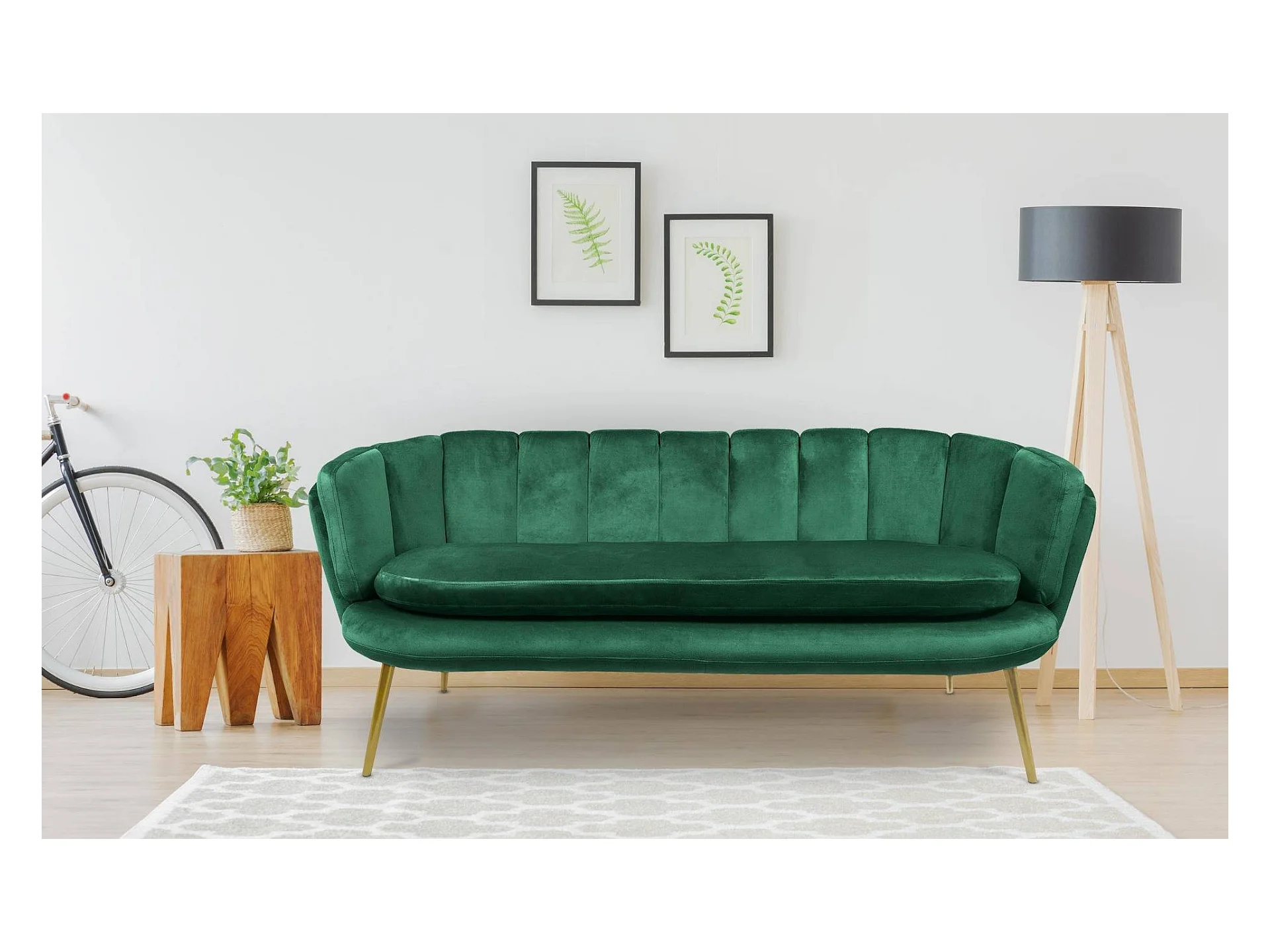 3-Sitzer Sofa Samt Grün Modern Goldene Beine Brenda 185cm