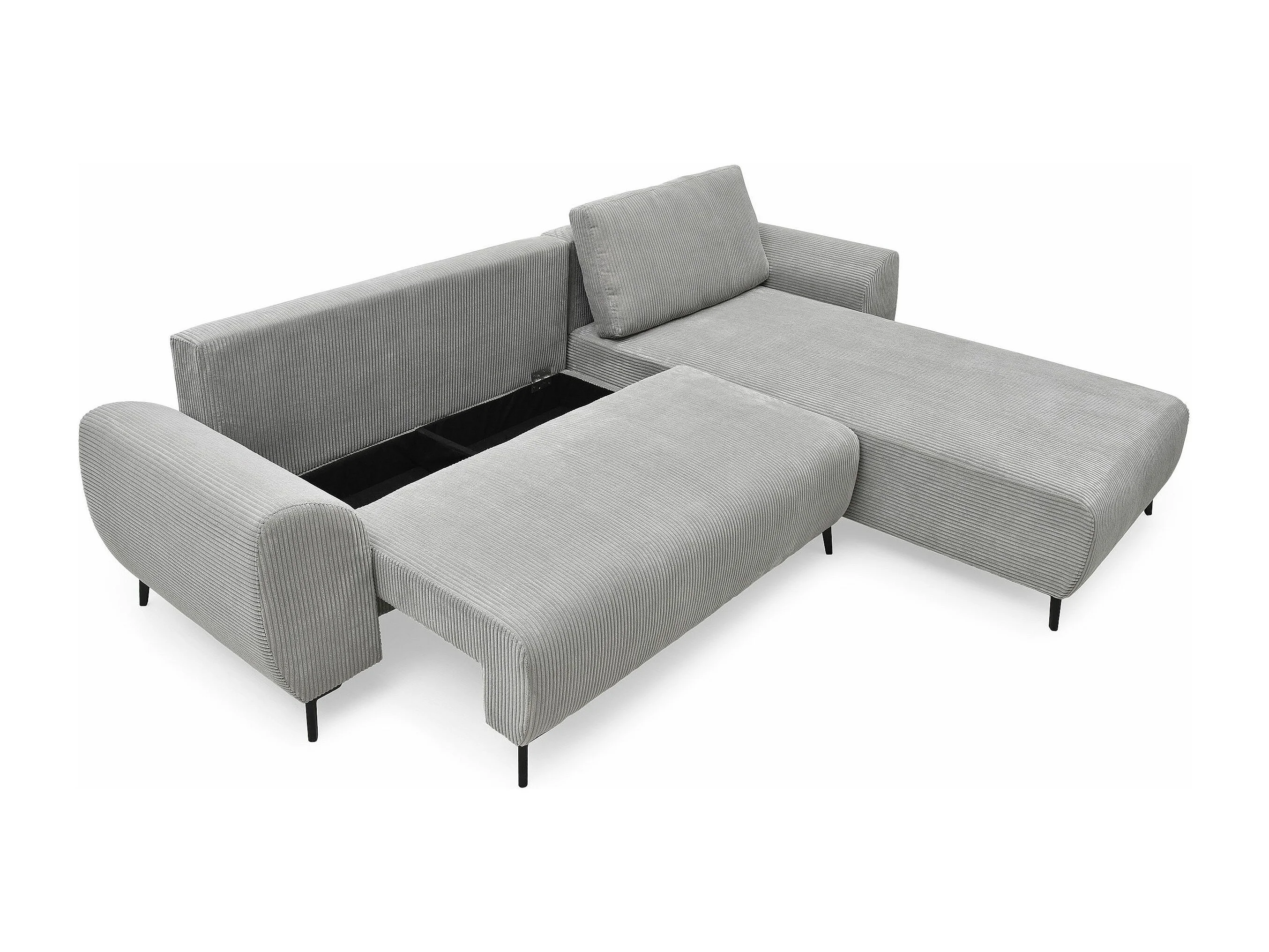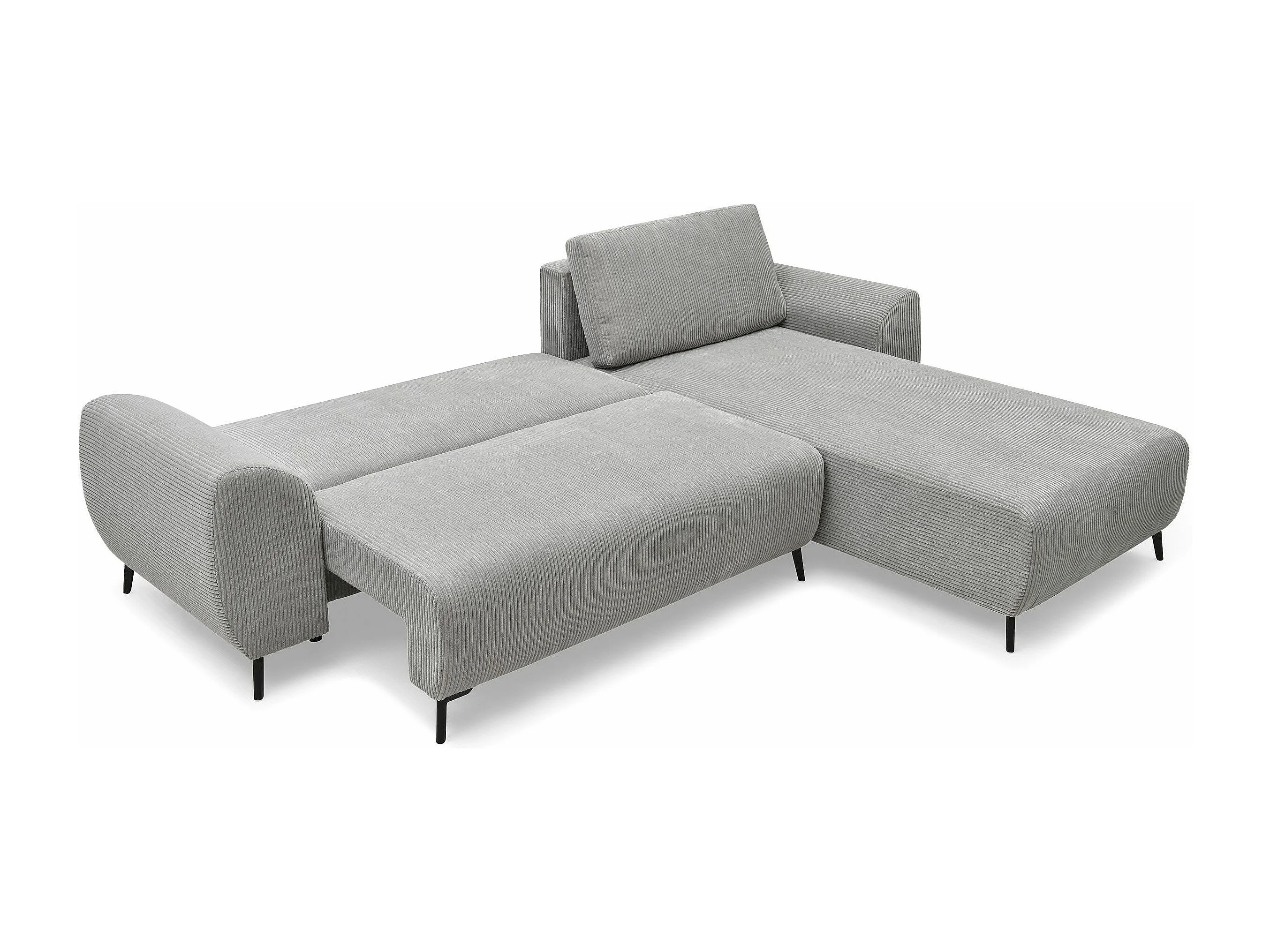 Ecksofa Rechts Ausklappbar Samt Rippstoff Grau Paolo mit Bequemer und Eleganter Liegefläche