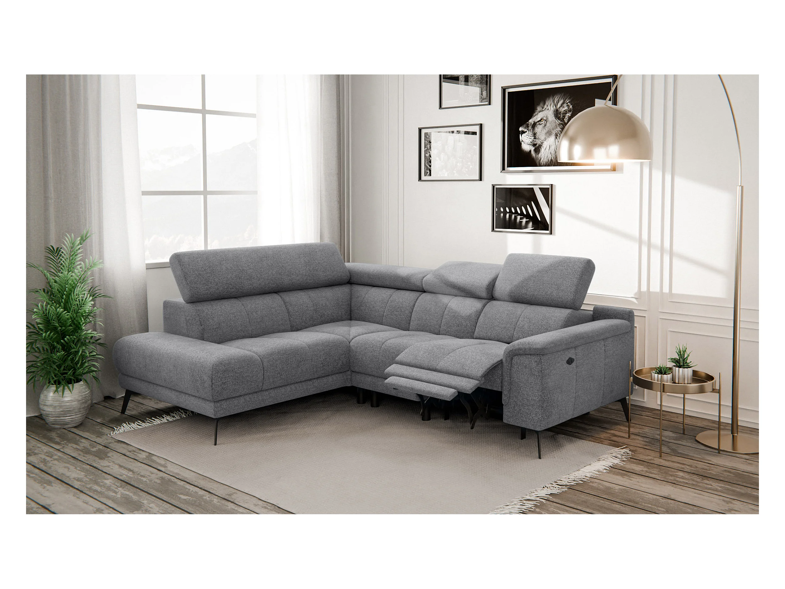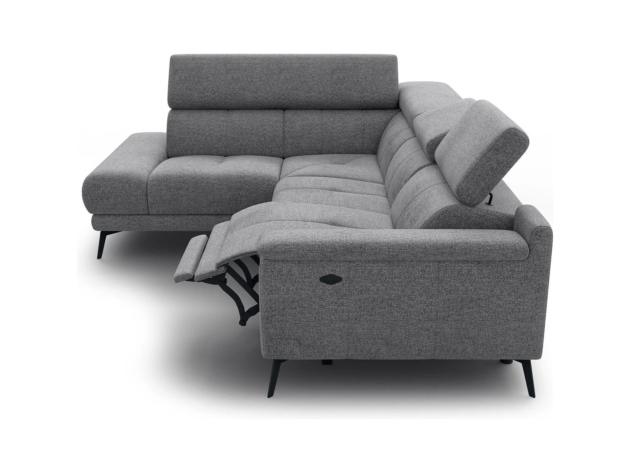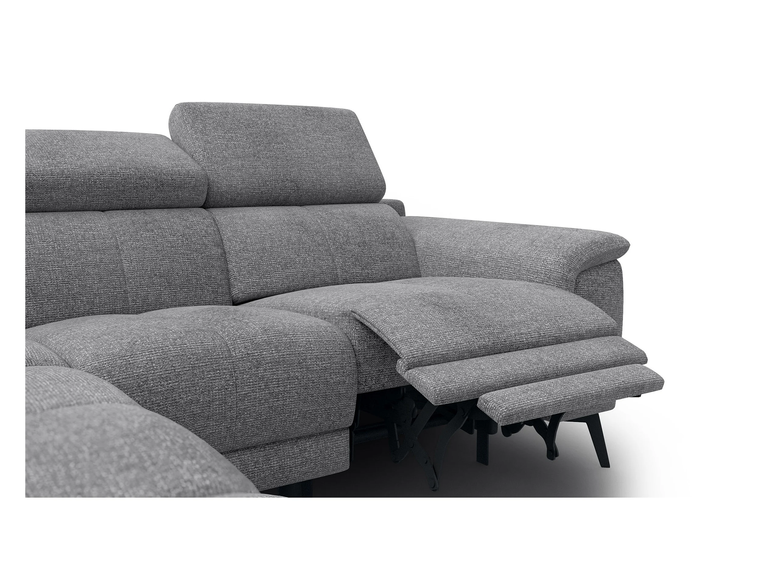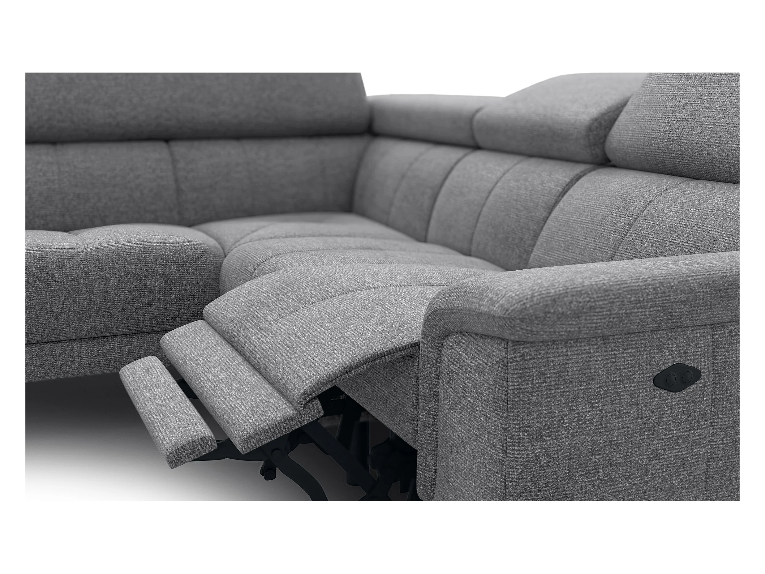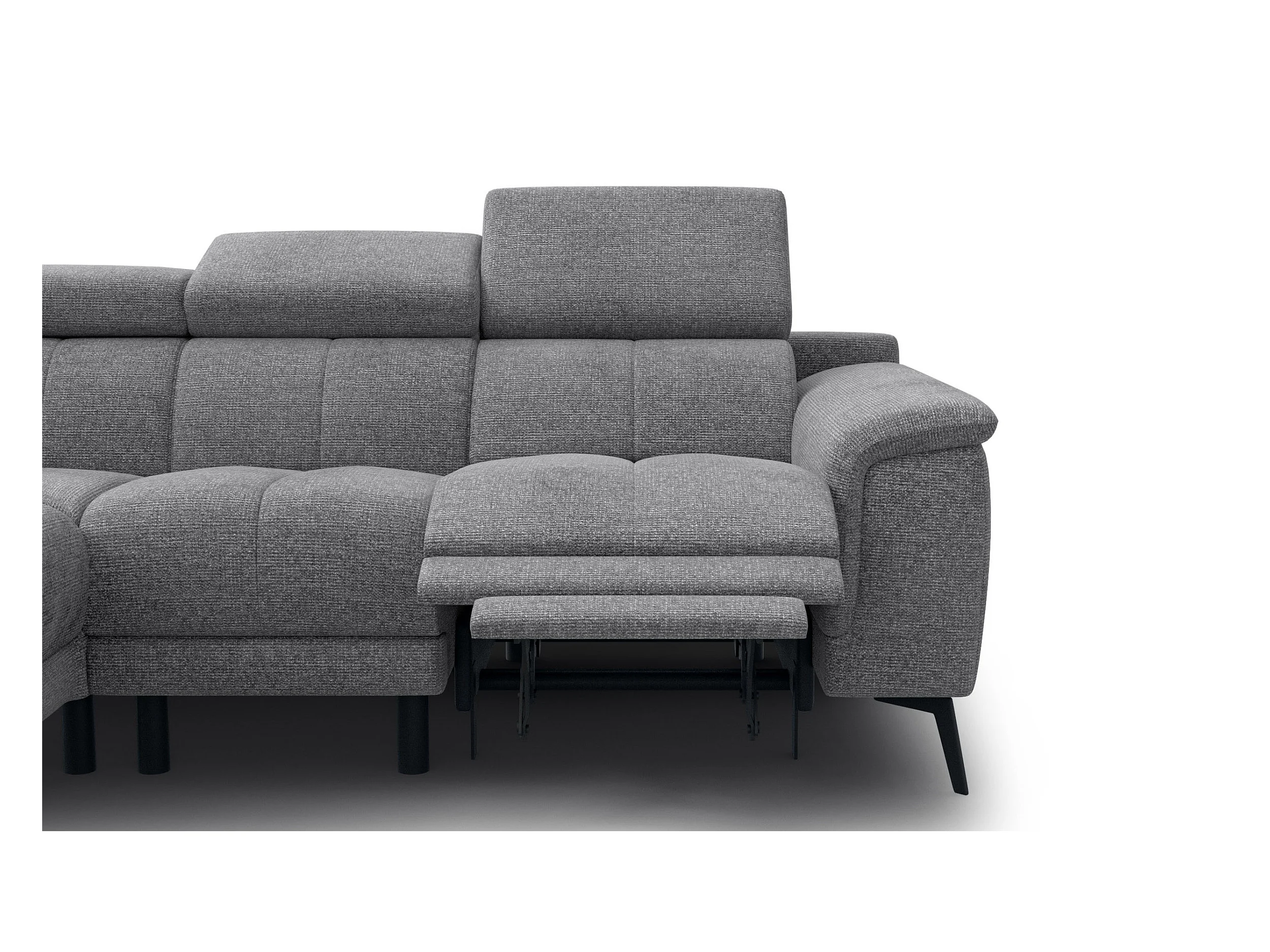 FIERO Ecksofa 4-Sitzer mit 1 Relaxfunktion und verstellbare Kopfstützen, grau