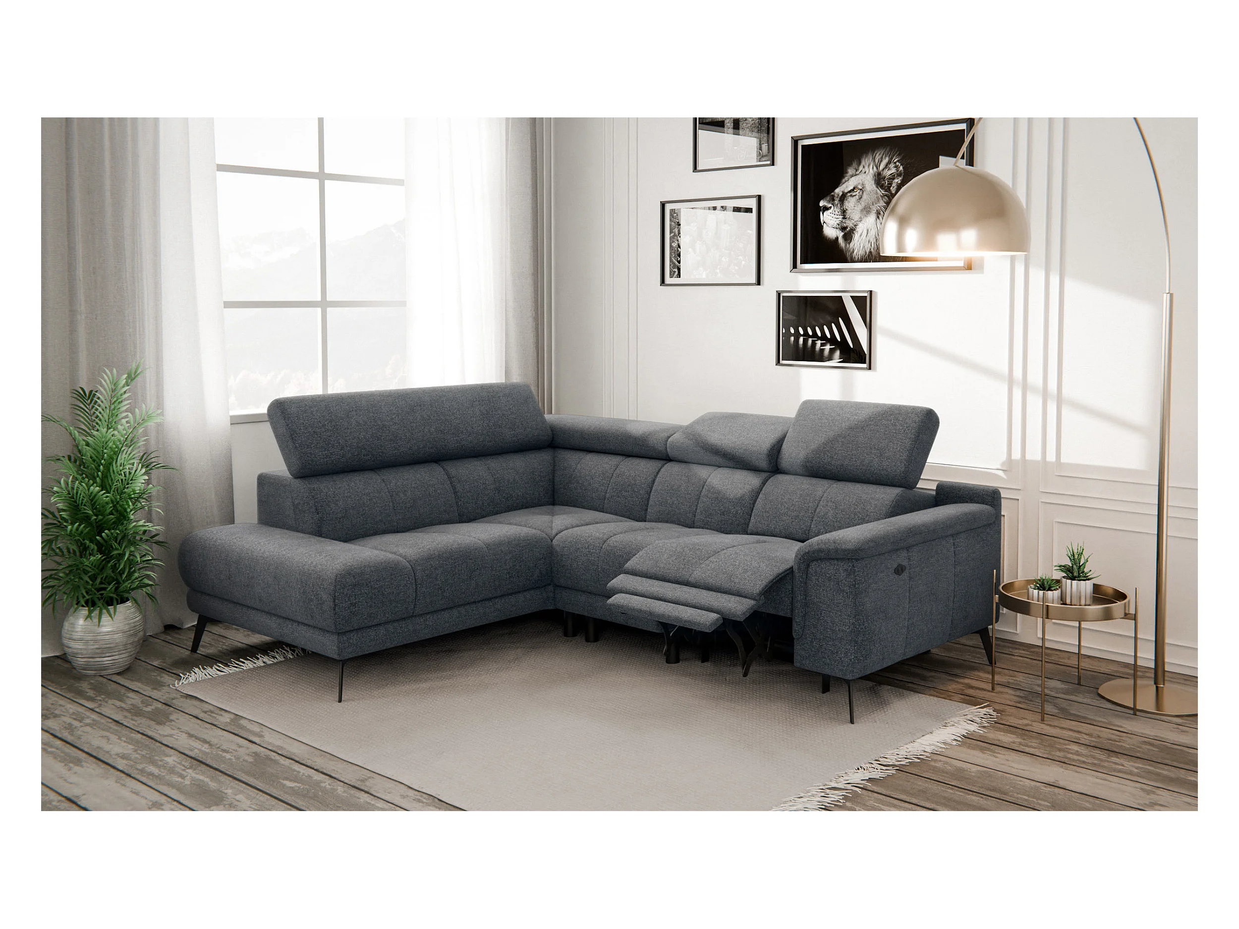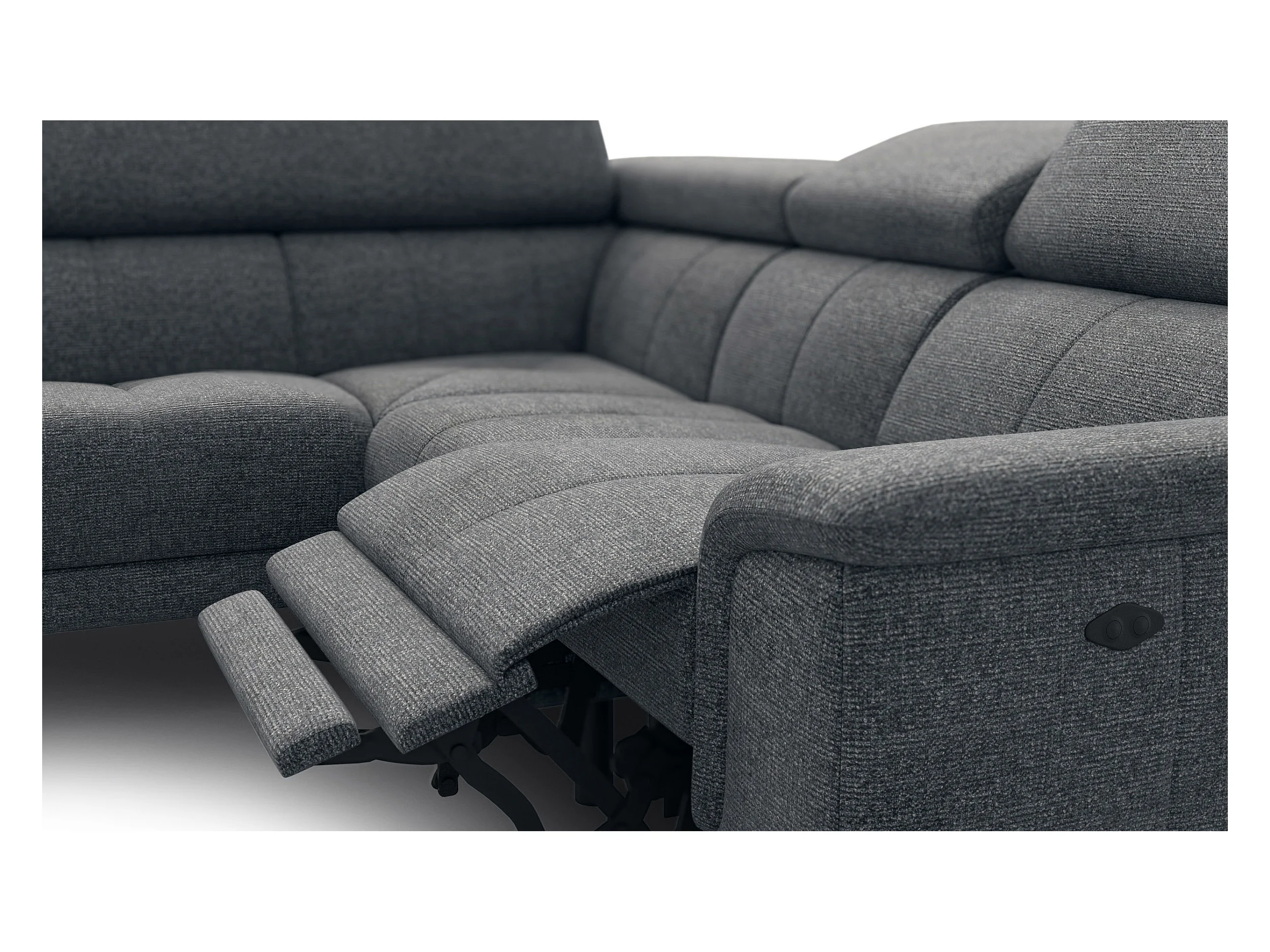 FIERO Ecksofa 4-Sitzer mit 1 Relaxfunktion und verstellbare Kopfstützen, dunkelgrau