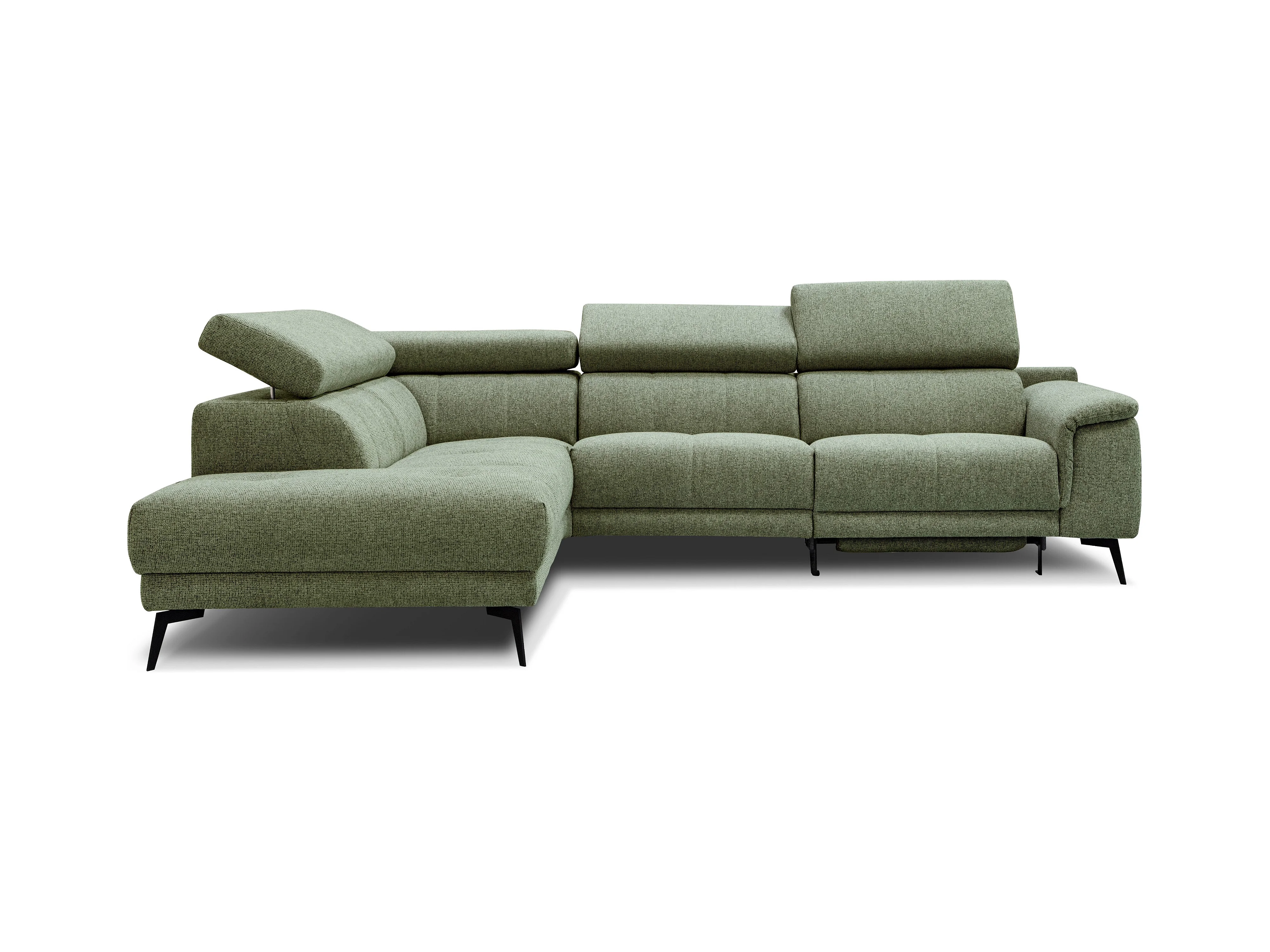 FIERO Ecksofa 5-Sitzer links mit 1 Relaxfunktion und verstellbare Kopfstützen, olive