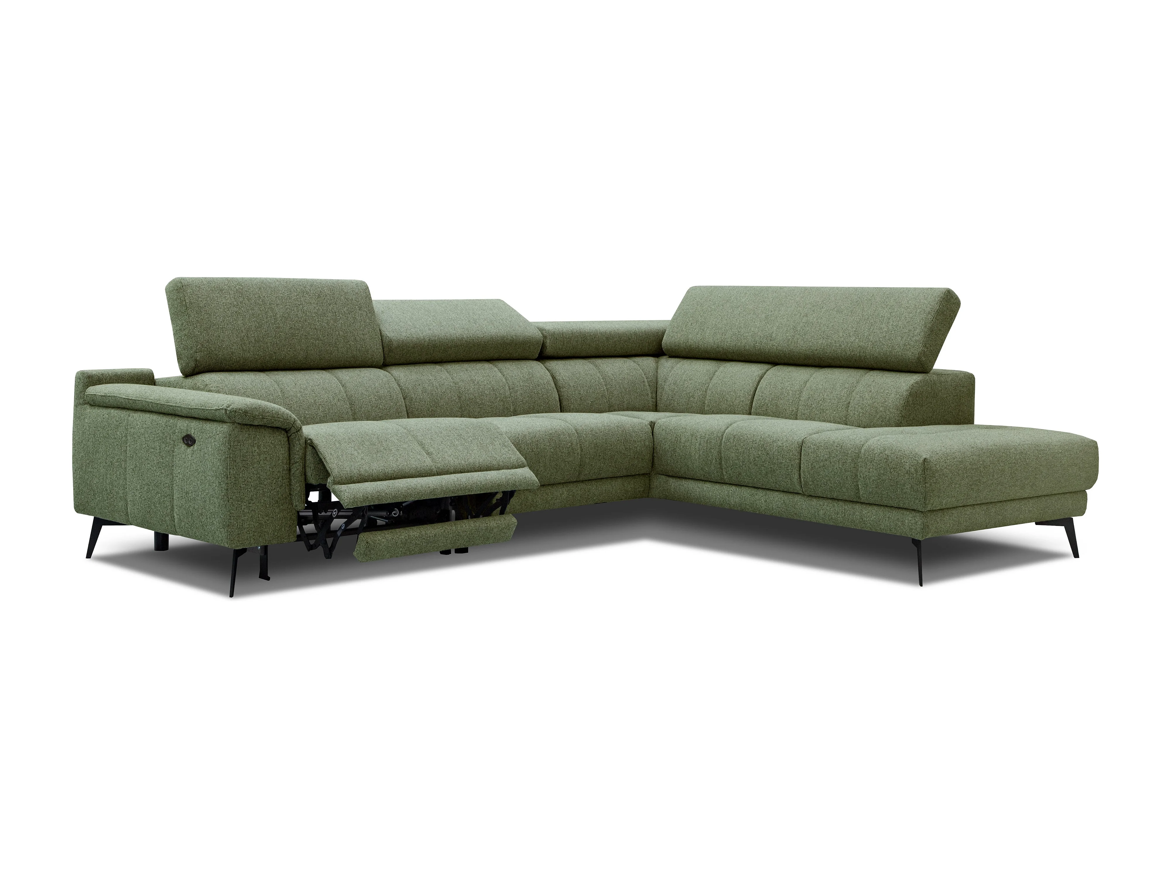 FIERO Ecksofa 5-Sitzer rechts mit 1 Relaxfunktion und verstellbare Kopfstützen, olive