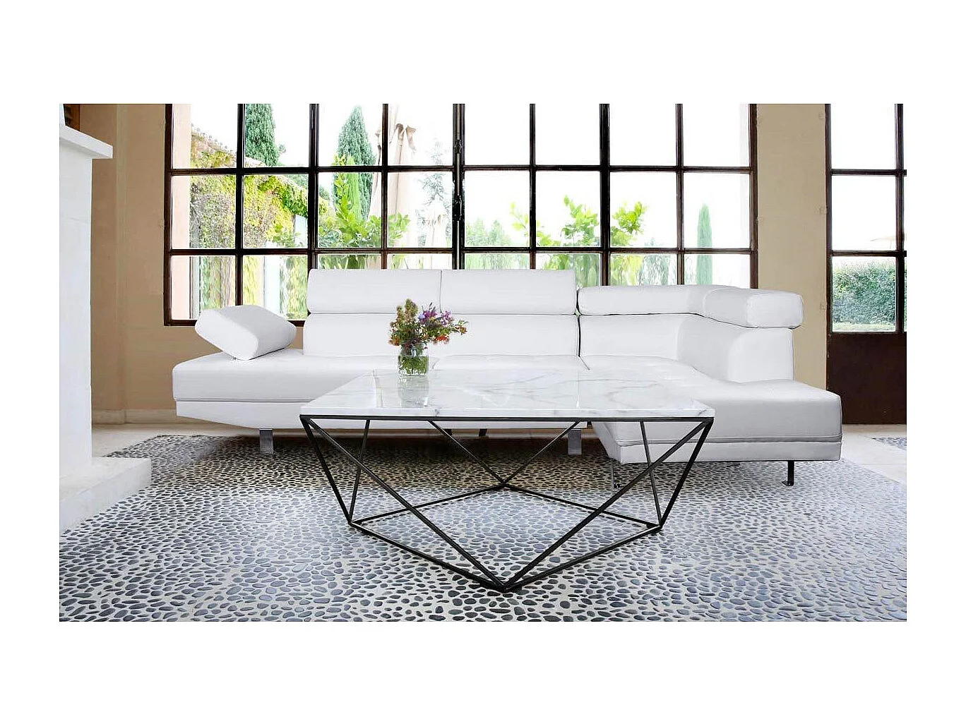 Ecksofa "Como" Weiß 5 Plätze mit verstellbaren Kopfstützen