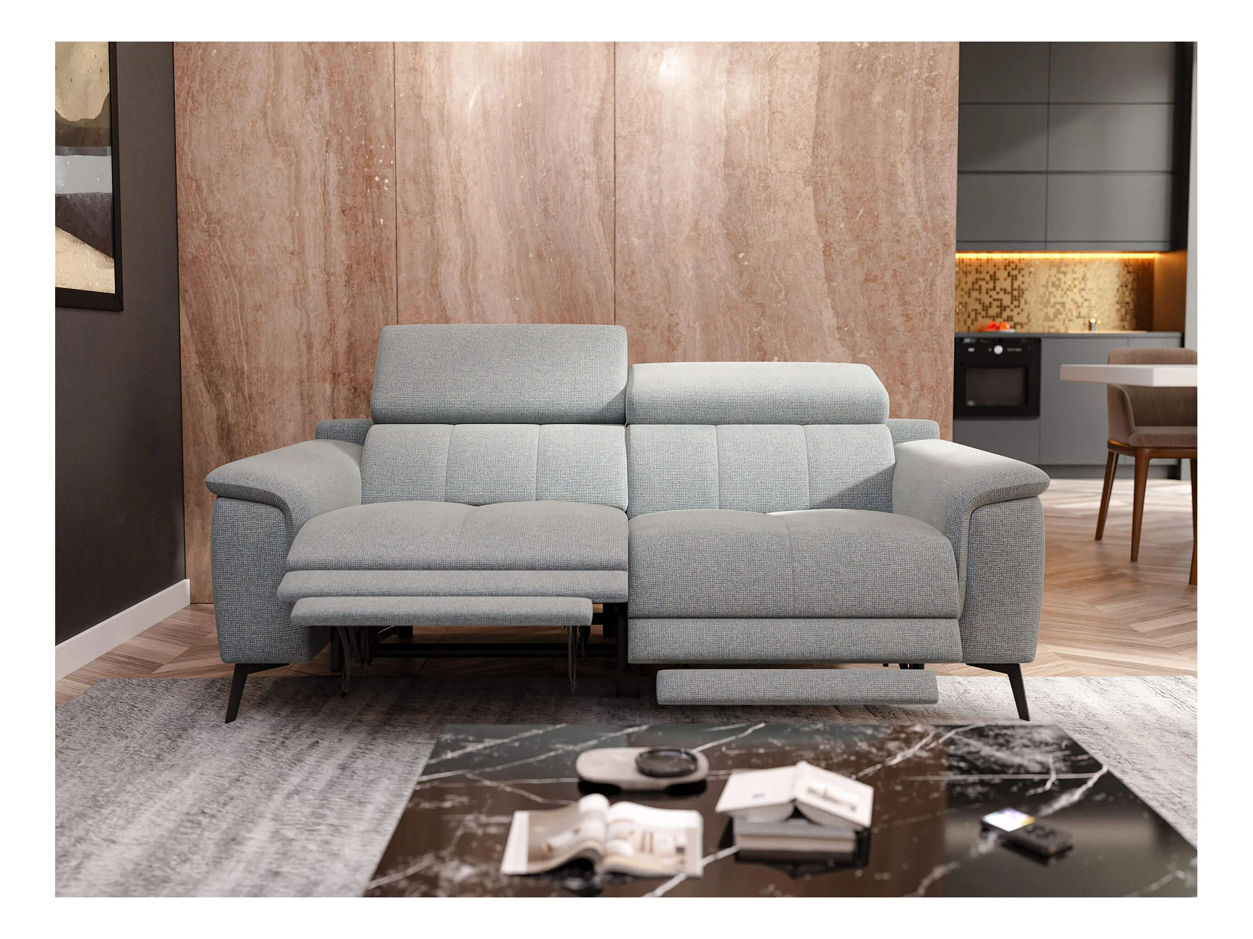 FIERO Sofa 3-Sitzer mit 2 Relaxfunktionen und verstellbare Kopfstützen, silbergrau