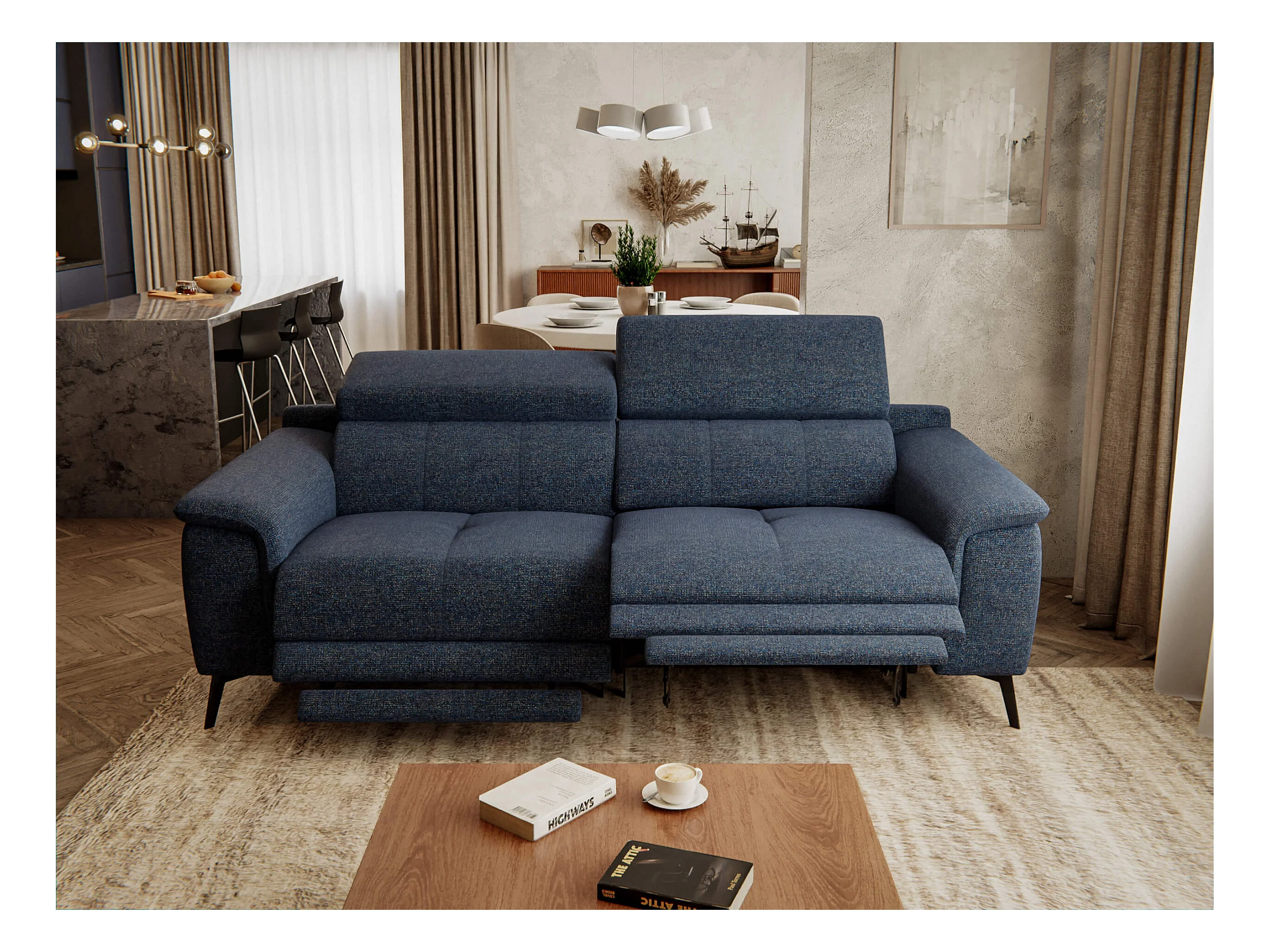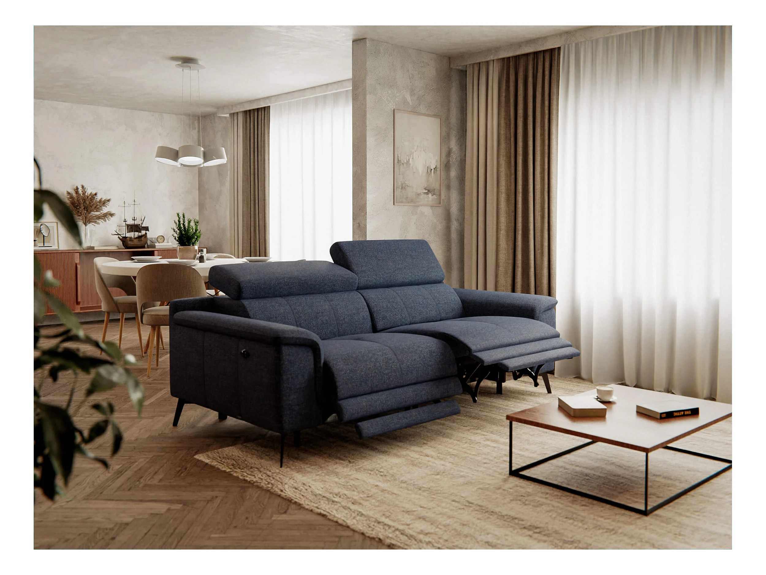 FIERO Sofa 3-Sitzer mit 2 Relaxfunktionen und verstellbare Kopfstützen, marineblau
