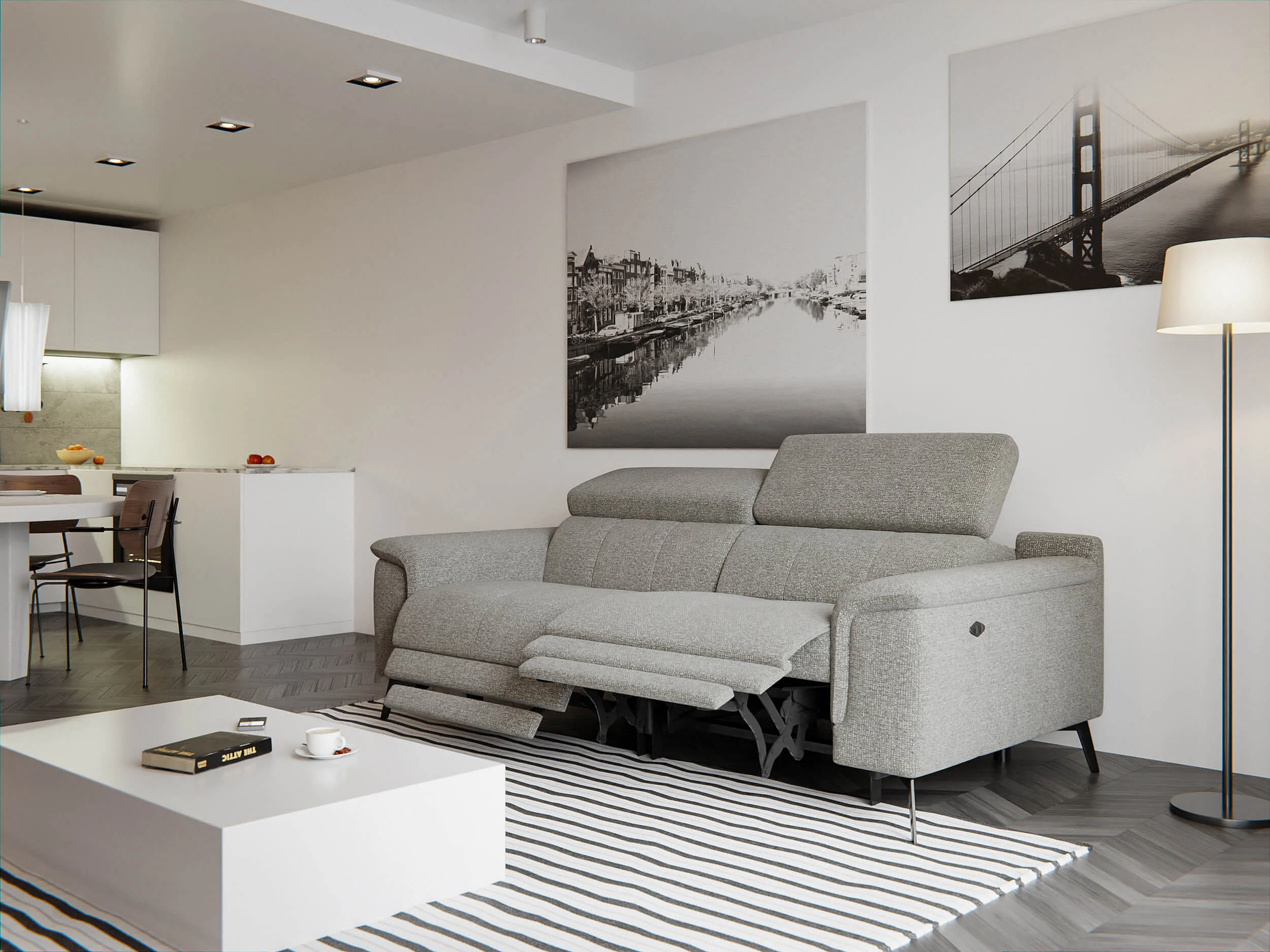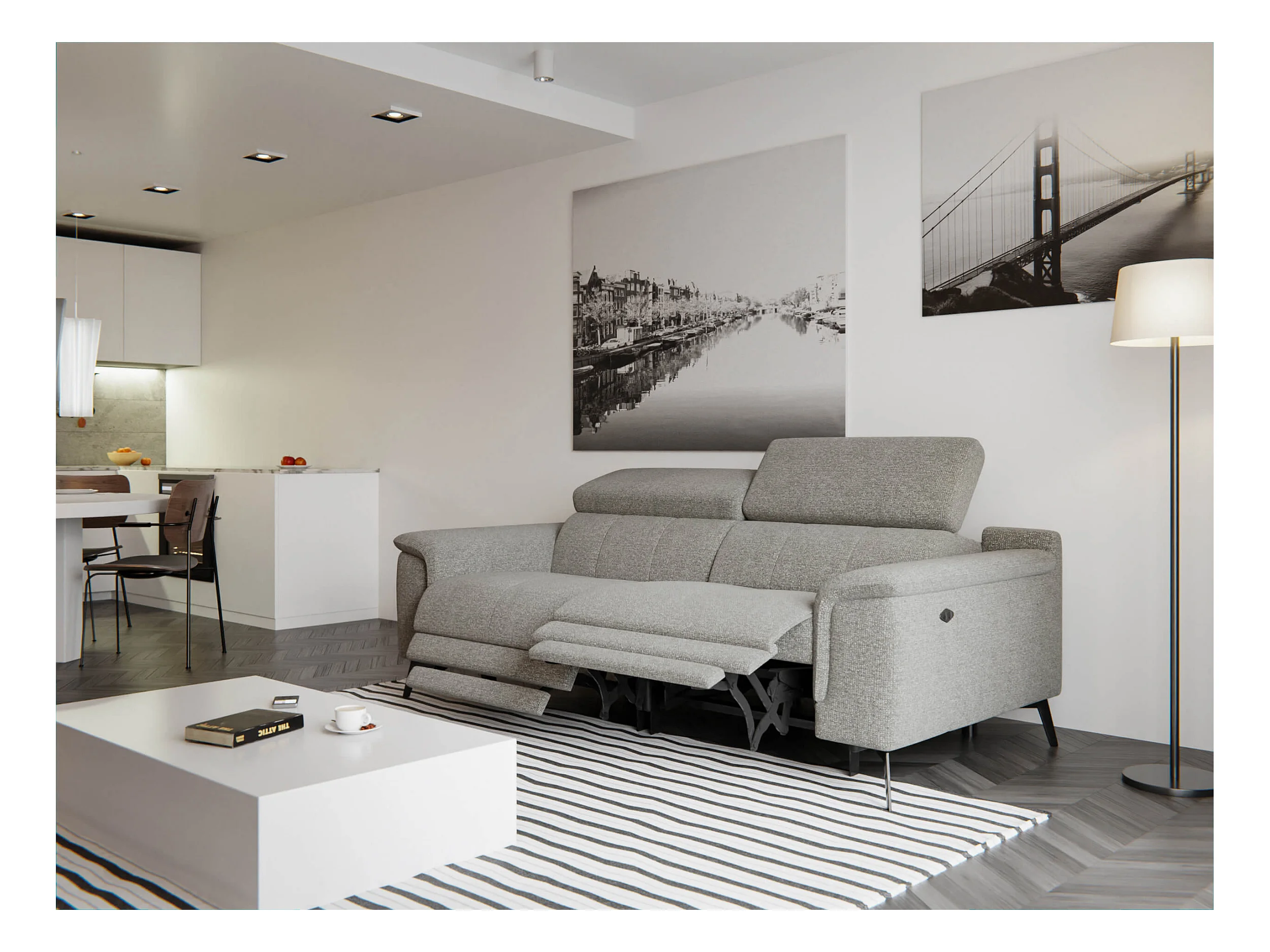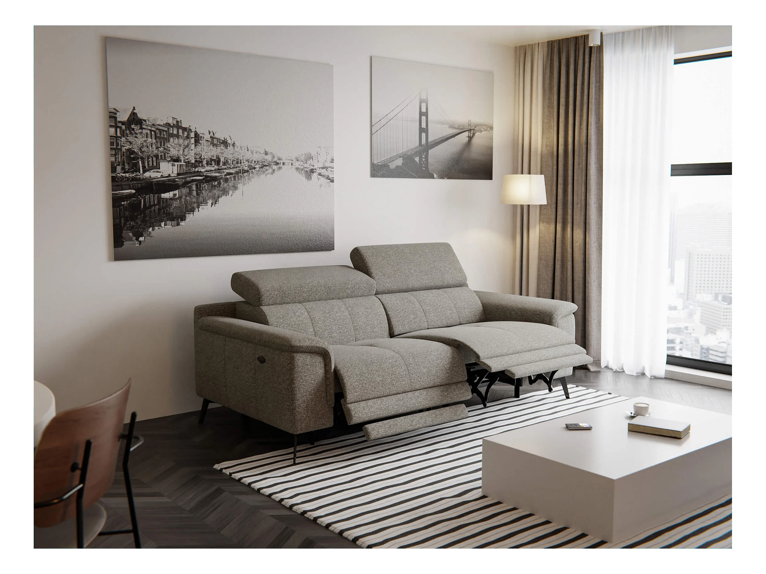 FIERO Sofa 3-Sitzer mit 2 Relaxfunktionen und verstellbare Kopfstützen, taupe