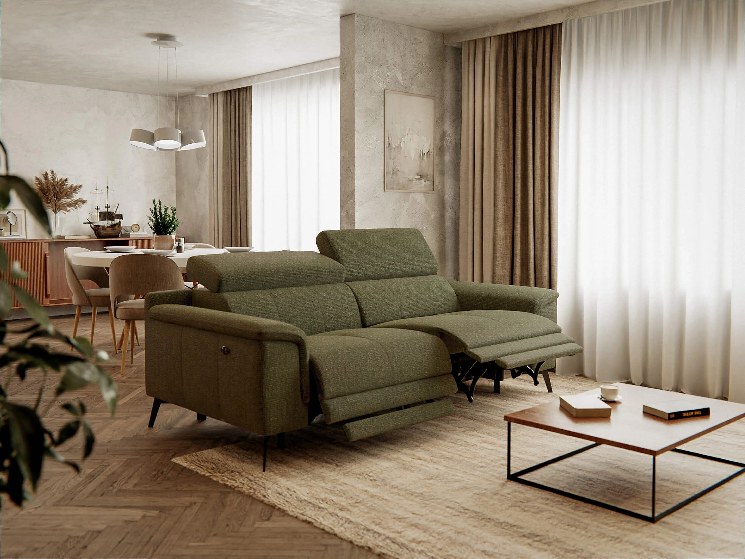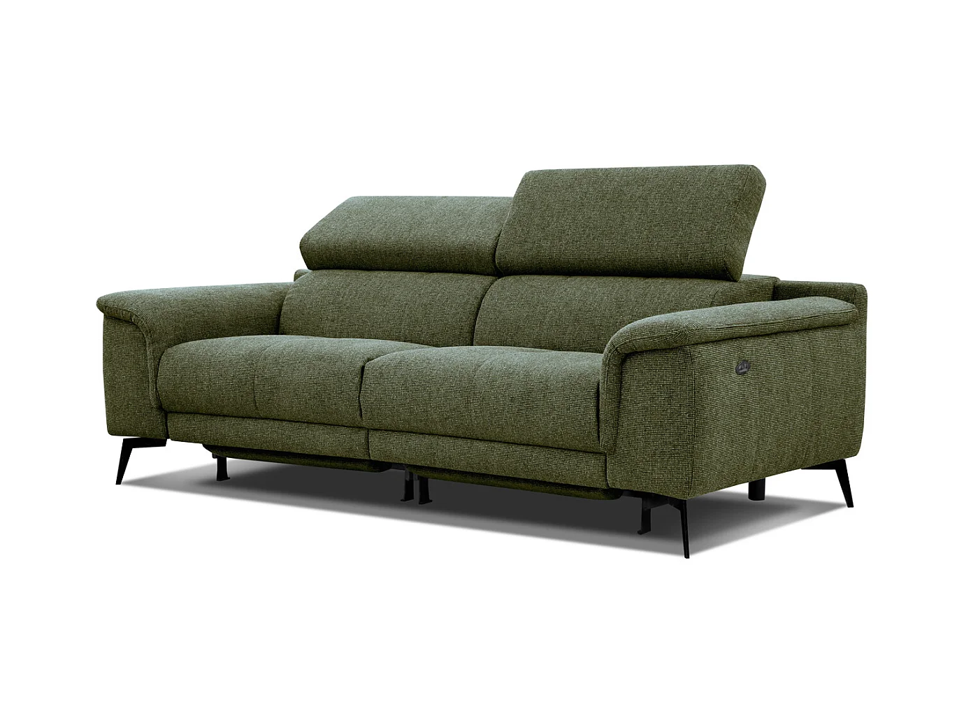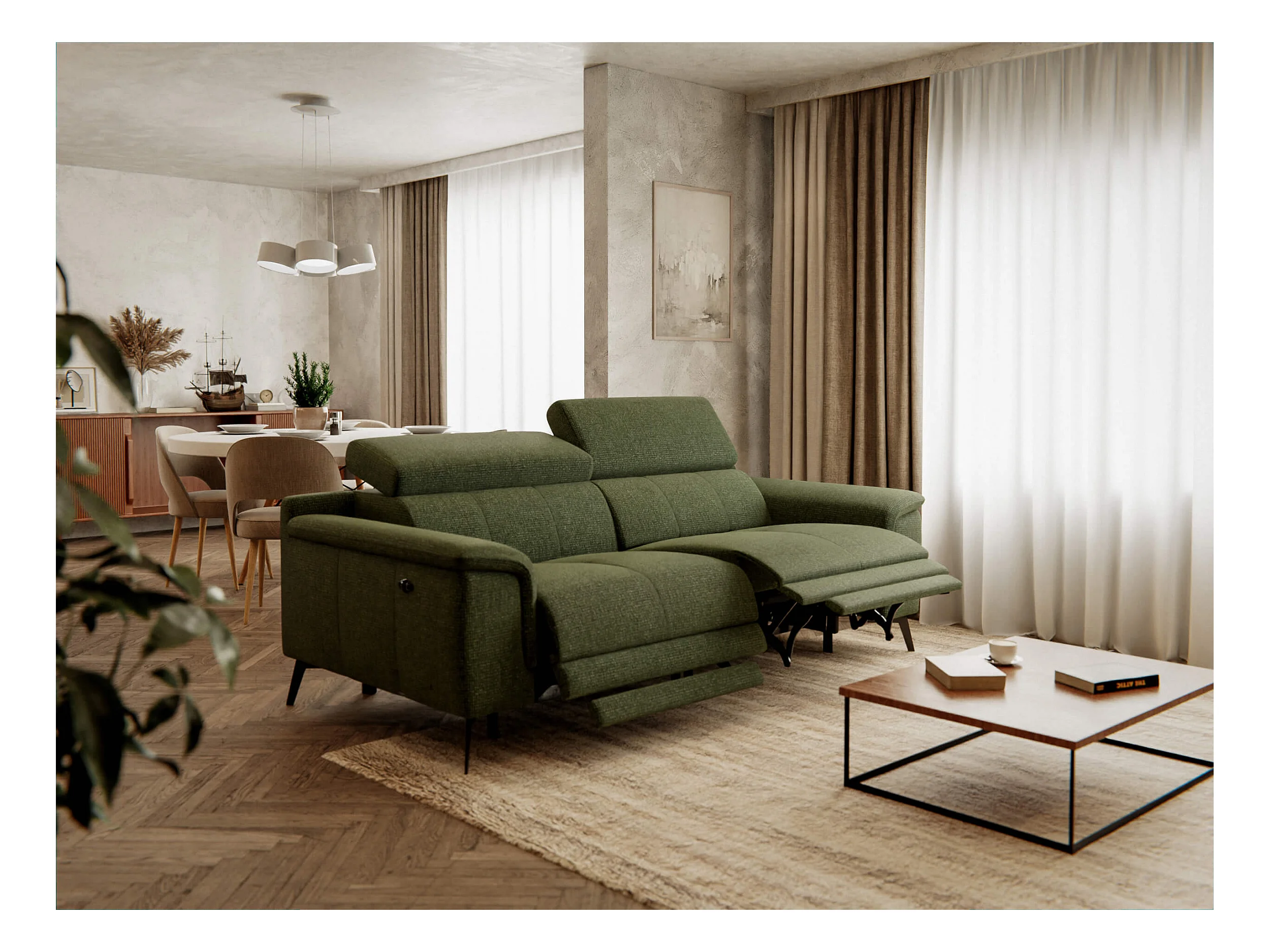 FIERO Sofa 3-Sitzer mit 2 Relaxfunktionen und verstellbare Kopfstützen, olive