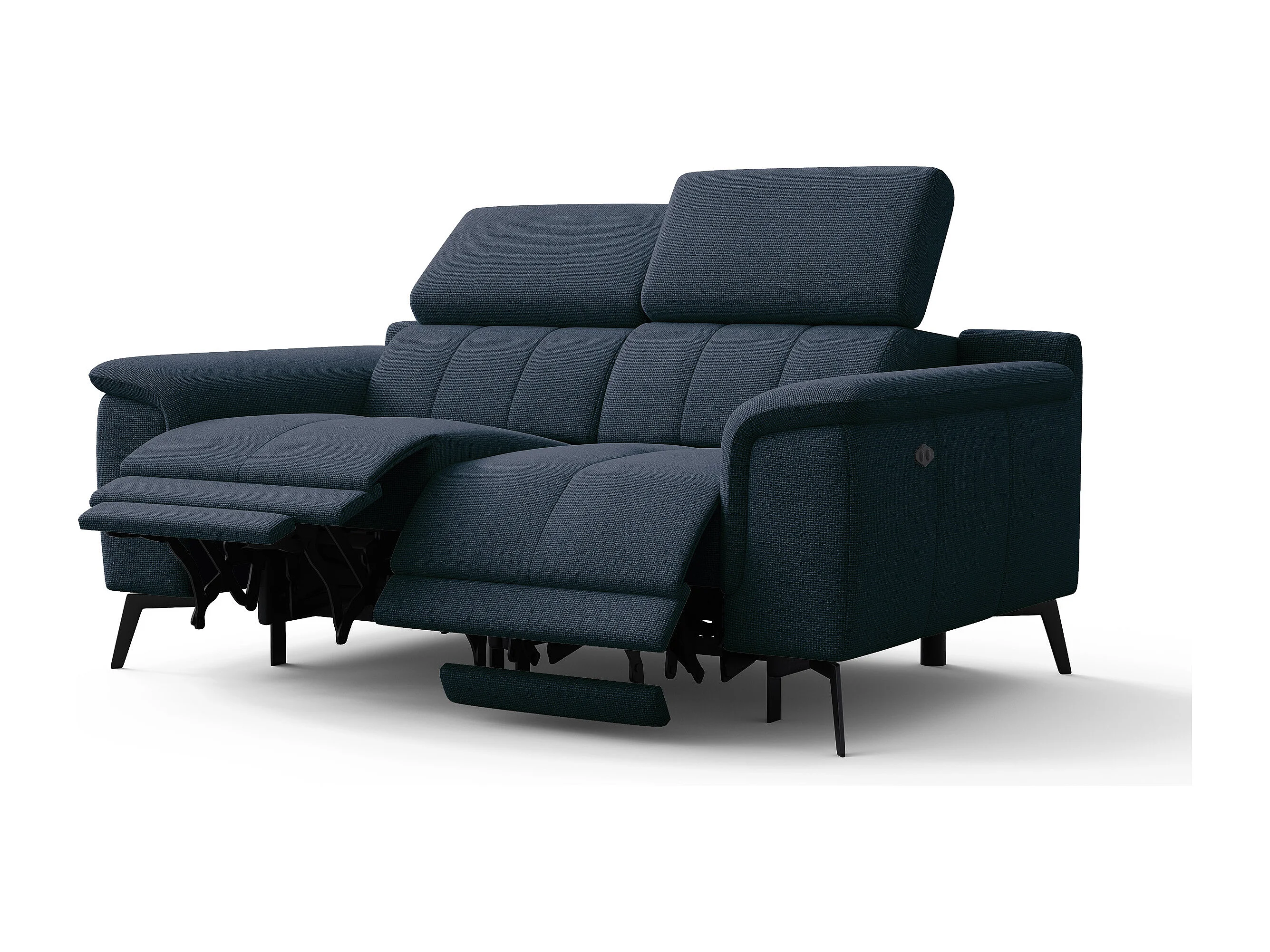 FIERO Sofa 2-Sitzer mit 2 Relaxfunktionen und verstellbare Kopfstützen, marineblau
