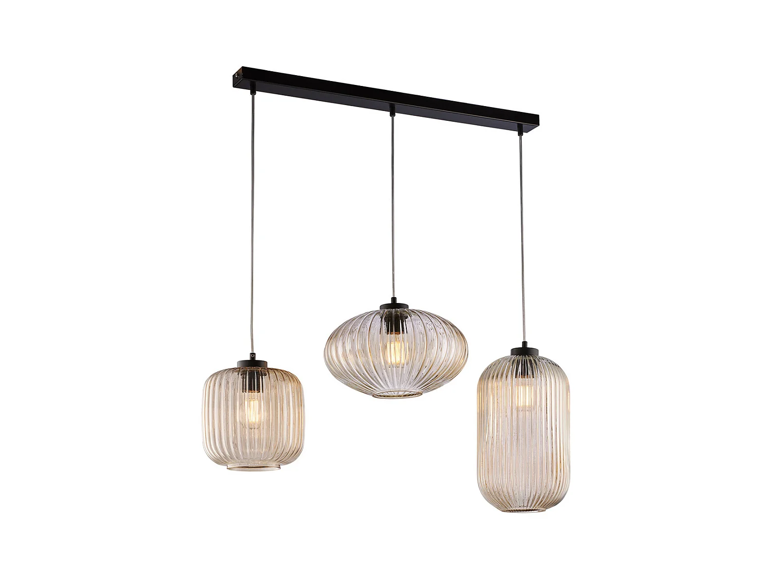 Belight - Glamour – Schiene schwarz, Glas amber mit Streifendekor, L83x30, 3-flammig – BL322-BIN3-AM