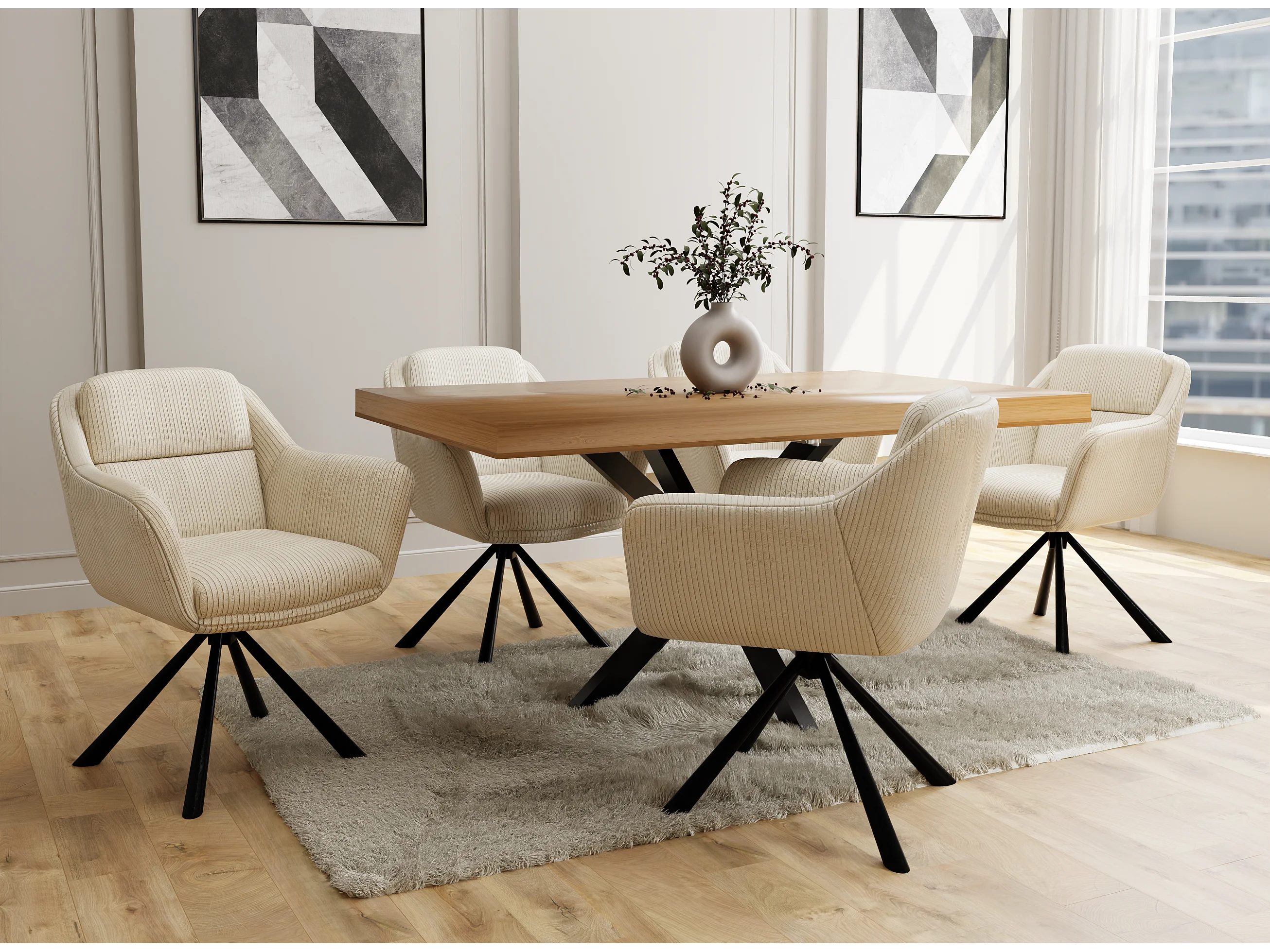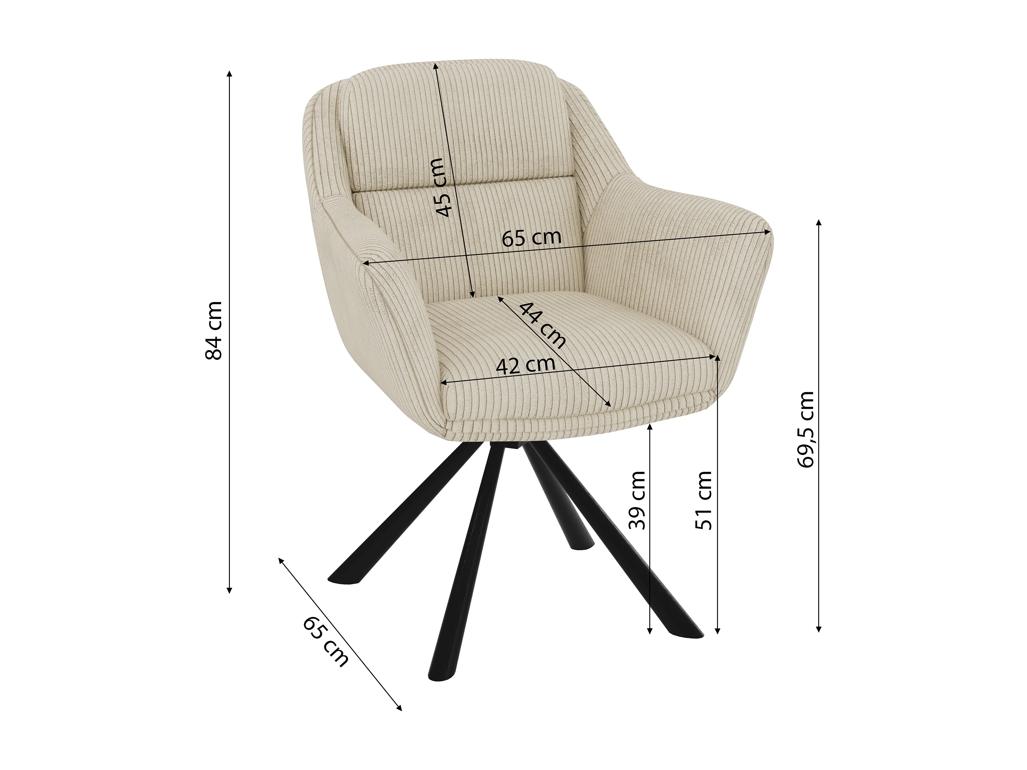 Carl - Polsterstuhl mit 180° Drehfunktion und Nivellierung aus Beige Cord-Stoff