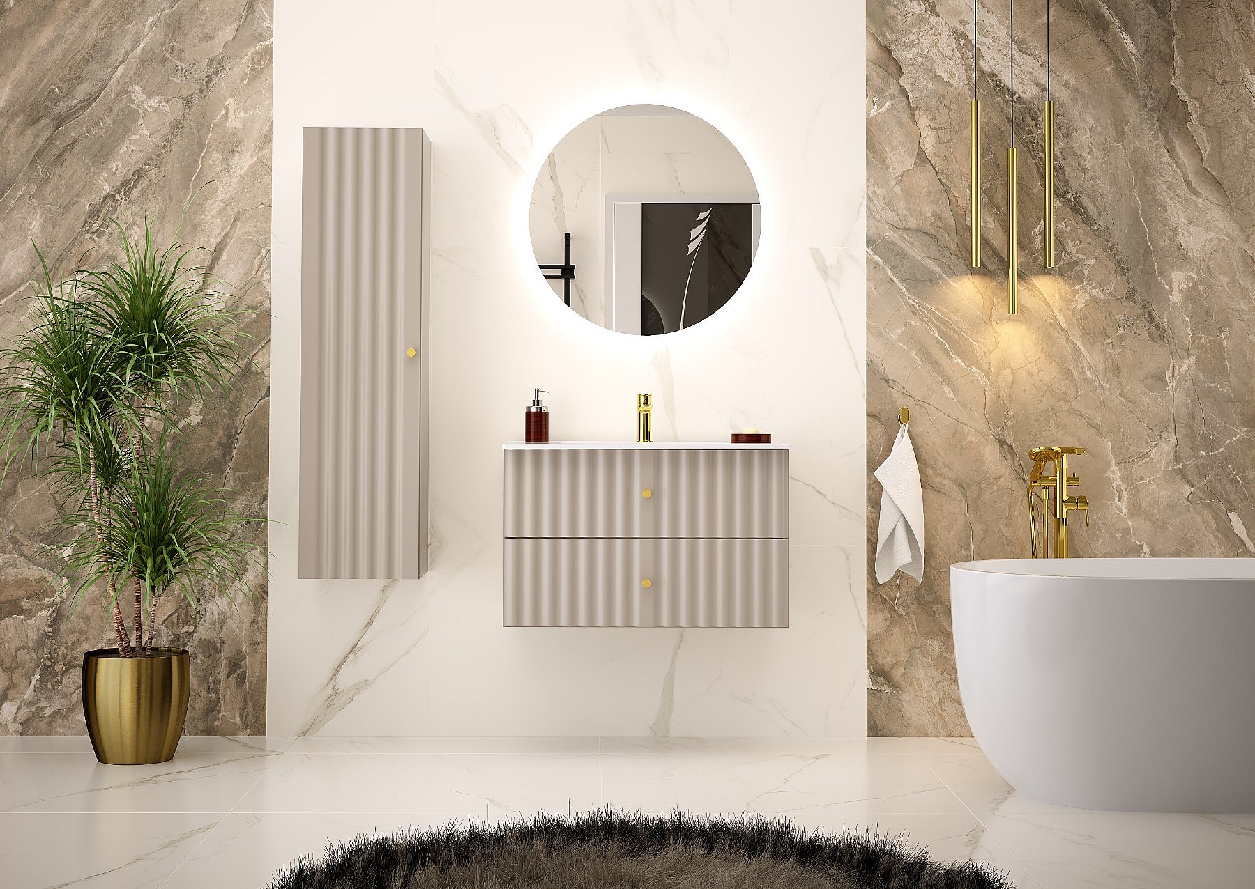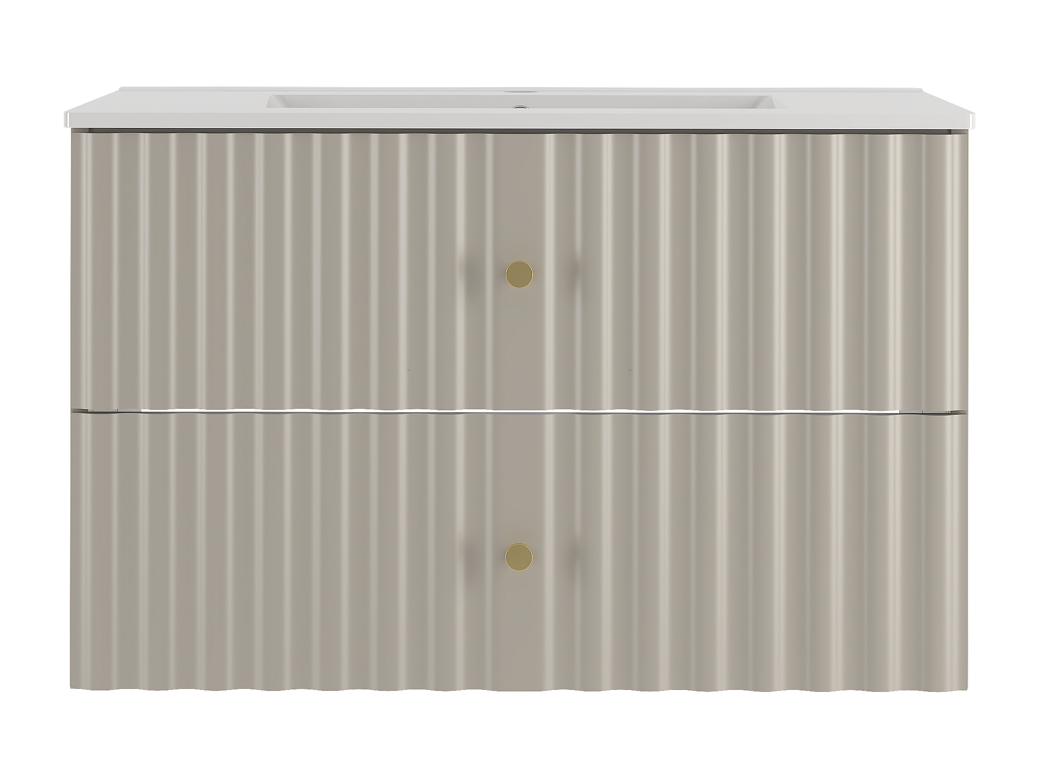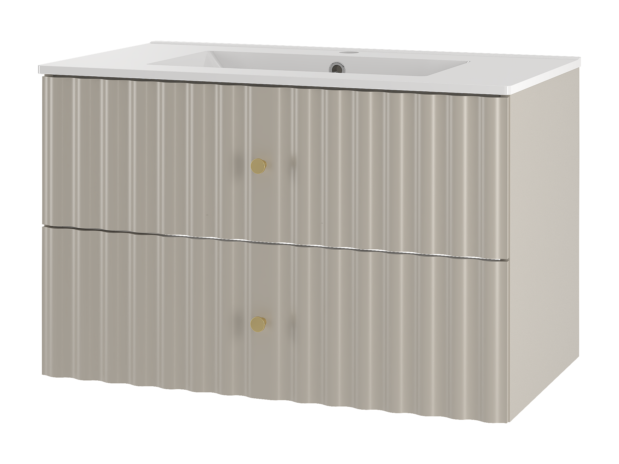 Cashmere Badezimmer Set 80cm Schrank mit Waschbecken geriffelte Fronten Aqua