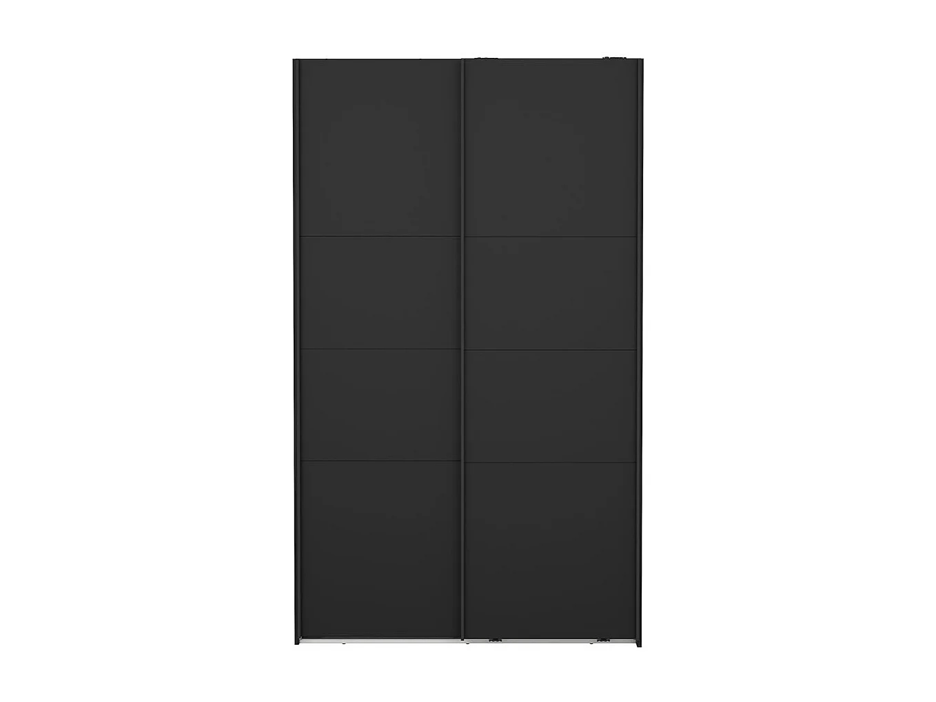 Catania Kleiderschrank 201x119x65cm, 2 Schiebetüren matt schwarz.