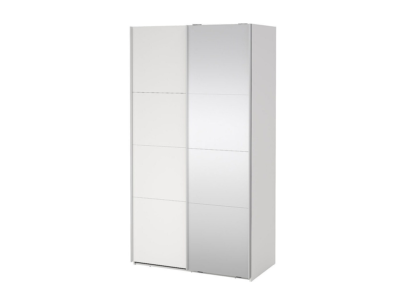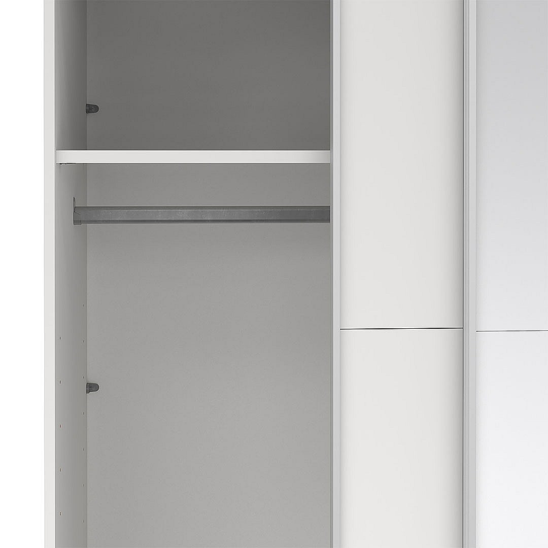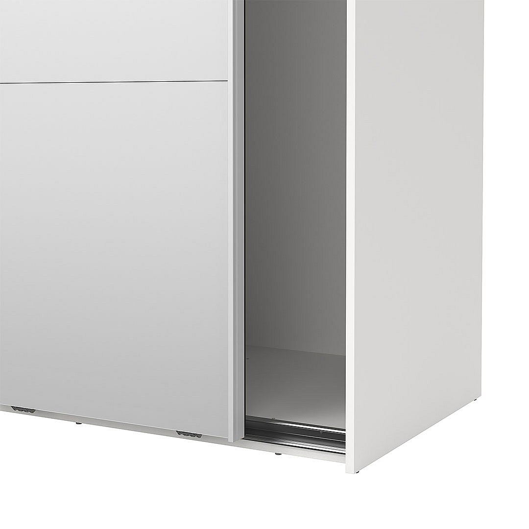 Catania Kleiderschrank 221x119x67cm, 1 Schiebetür, 1 Schiebetür mit Spiegel weiß.