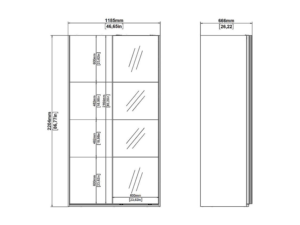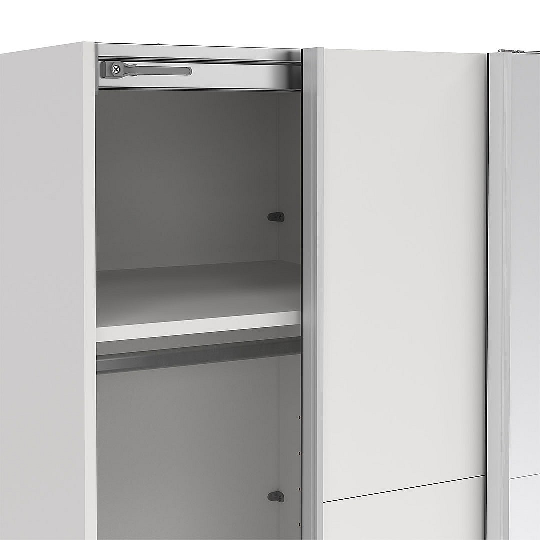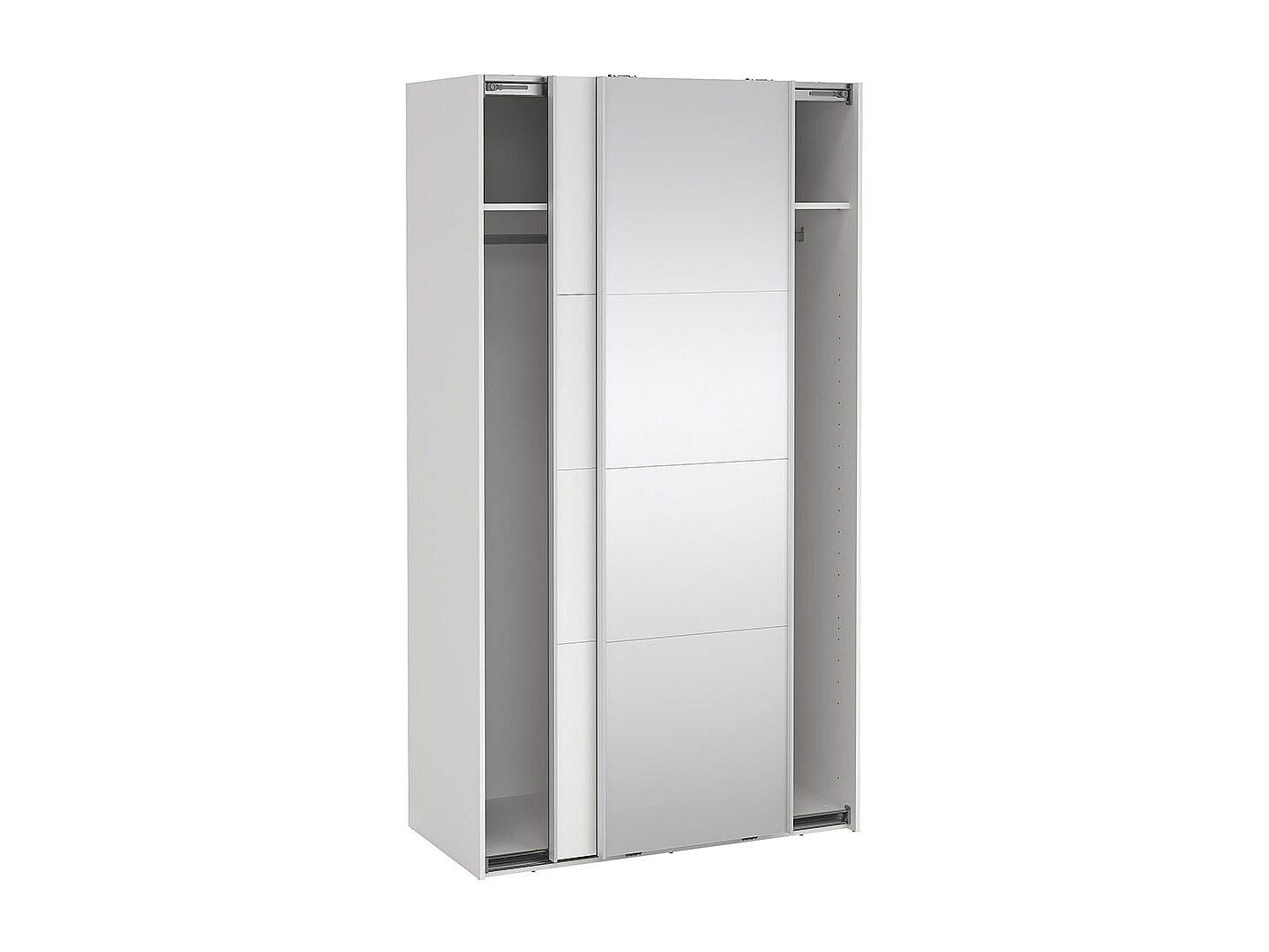 Catania Kleiderschrank 221x119x67cm, 1 Schiebetür, 1 Schiebetür mit Spiegel weiß.