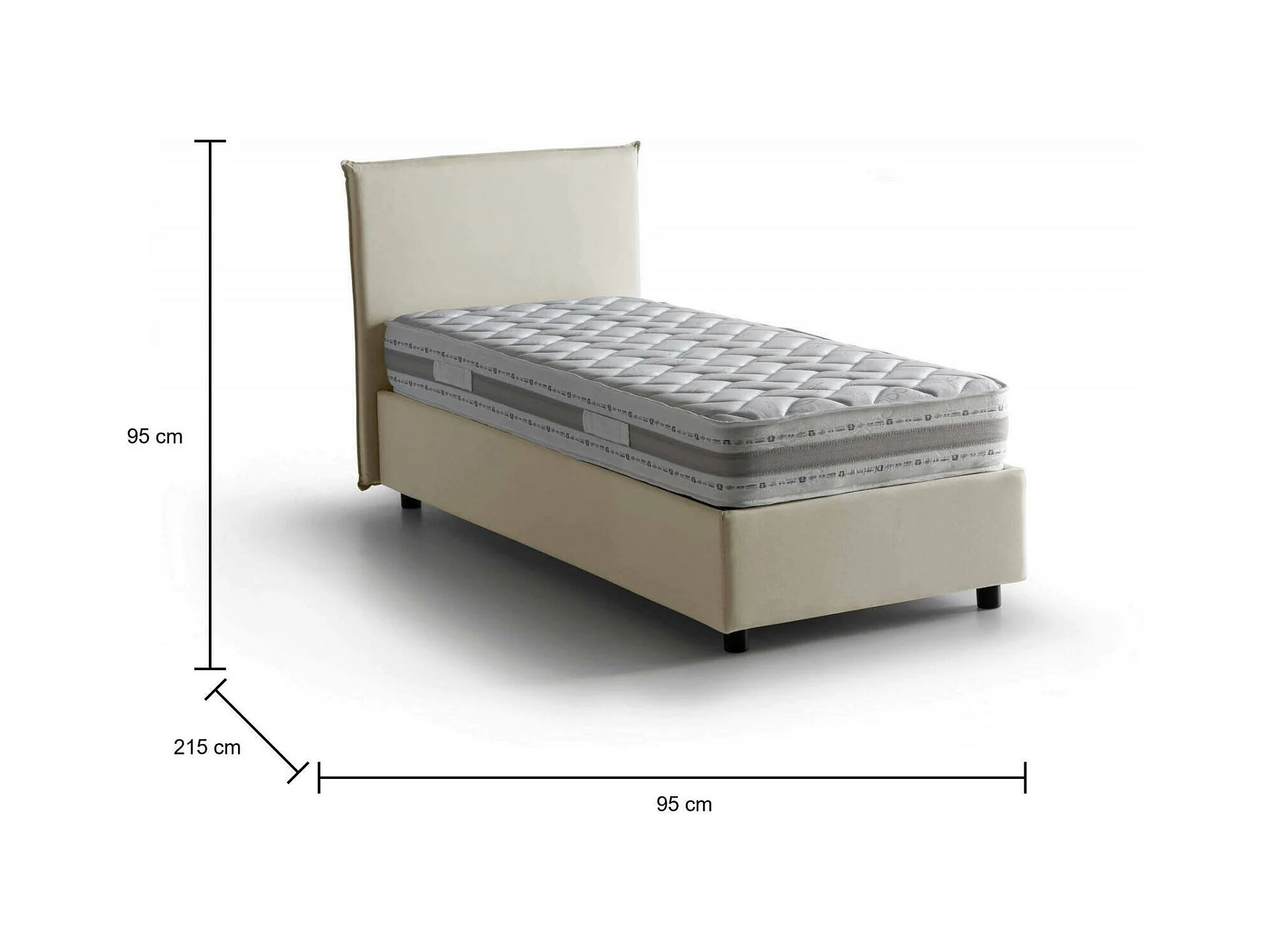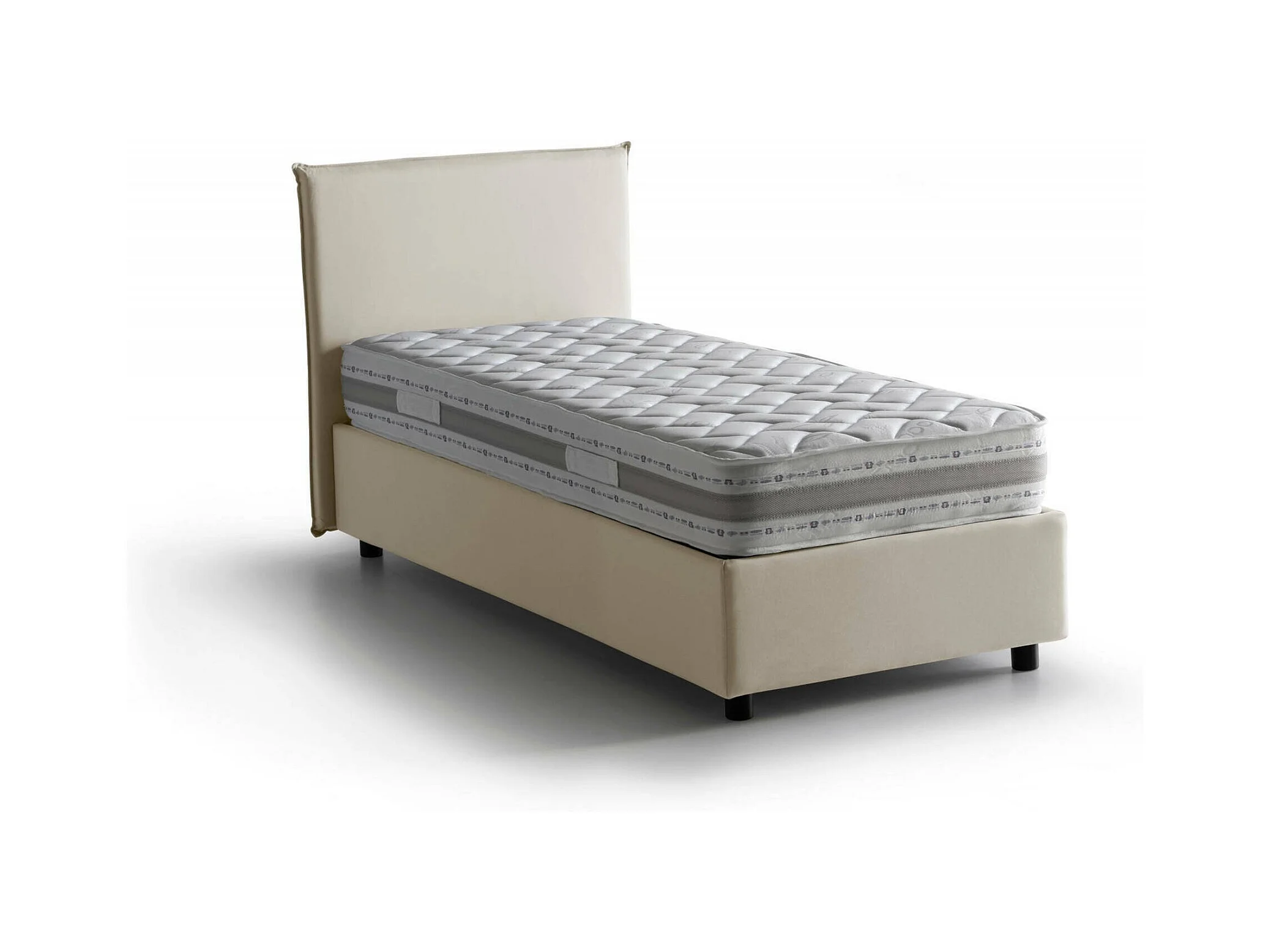 Catia-Einzelbett, Bettkasten mit Stoffbezug, 100 % Made in Italy, Öffnung vorne, inklusive Matratze 80 x 200 cm, Beige