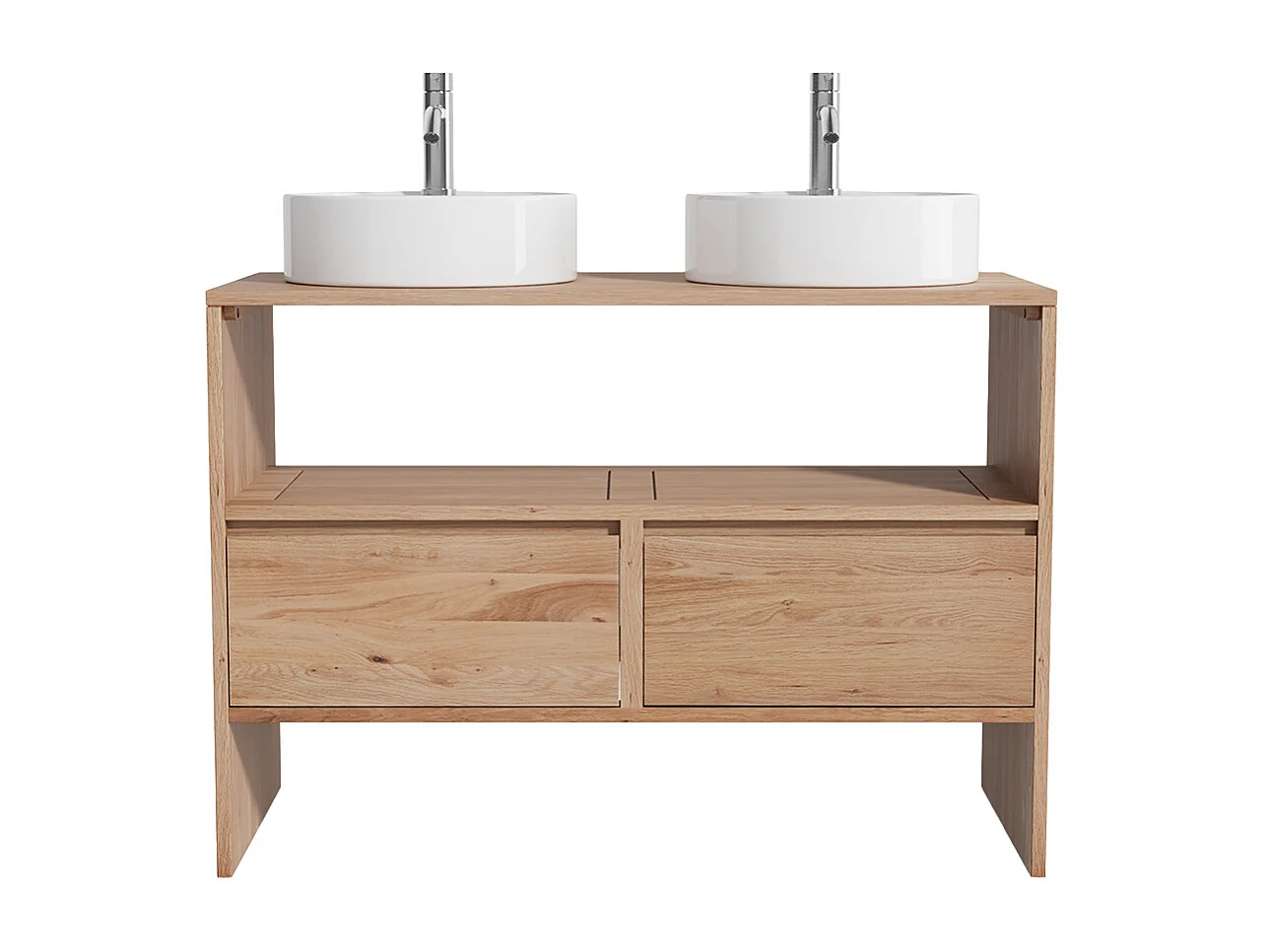 Unterschrank aus Massivholz Eiche mit rundem Aufsatzbecken und Armatur - Hell Natur - 110 cm - CAVIZO