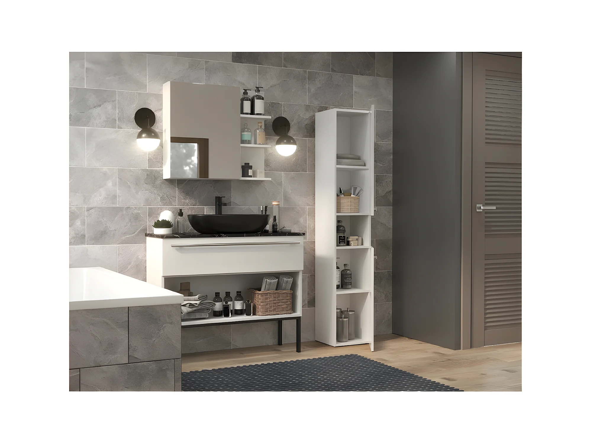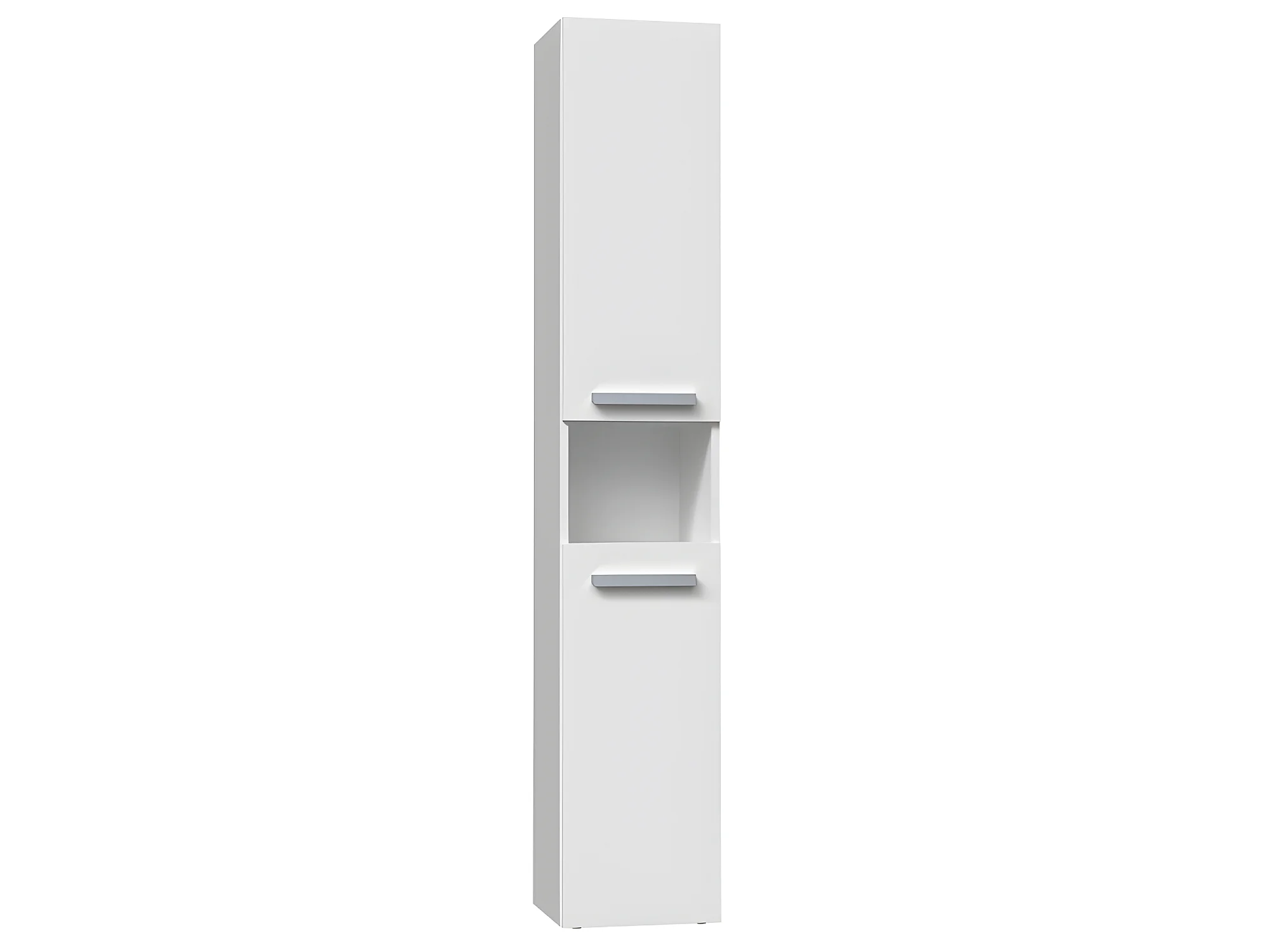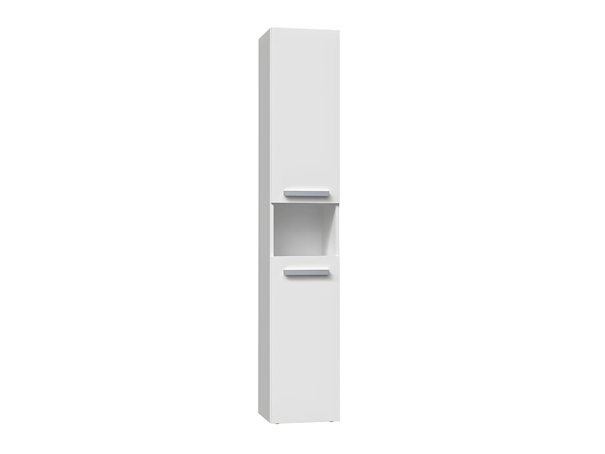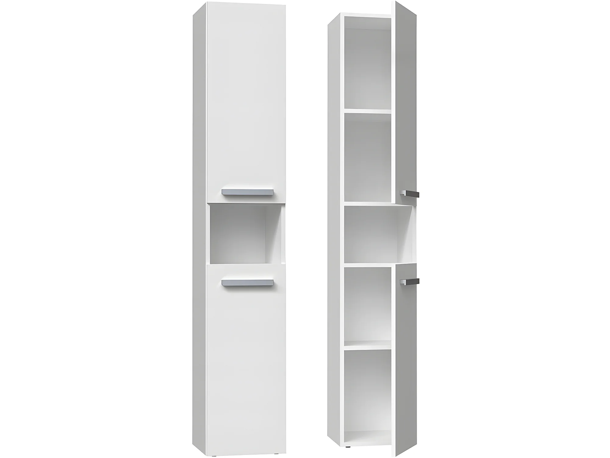 CDF Bad-Hochschrank NEL l | Farbe: Weiß | Modernes Badregal | Stauraumschrank | Geräumige Einlegeböden | Türen | Einfache Montage | Stilvolle Griffe
