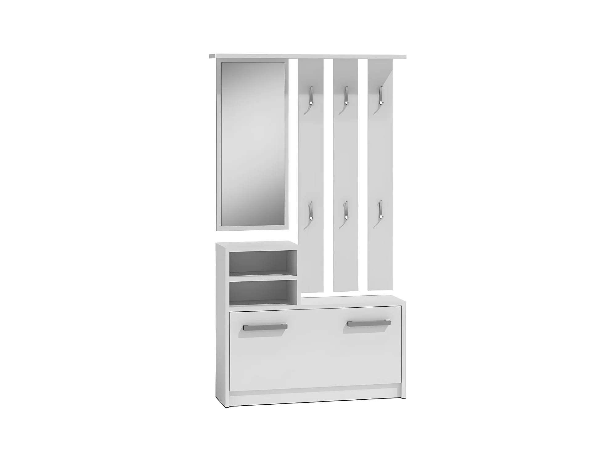 CDF Garderobe | Farbe: Weiß | Großer Spiegel | Kleiderbügel | Geräumiger Schuhschrank | Ideal für Diele, Flur | Praktische Ablagen | Modernes Design