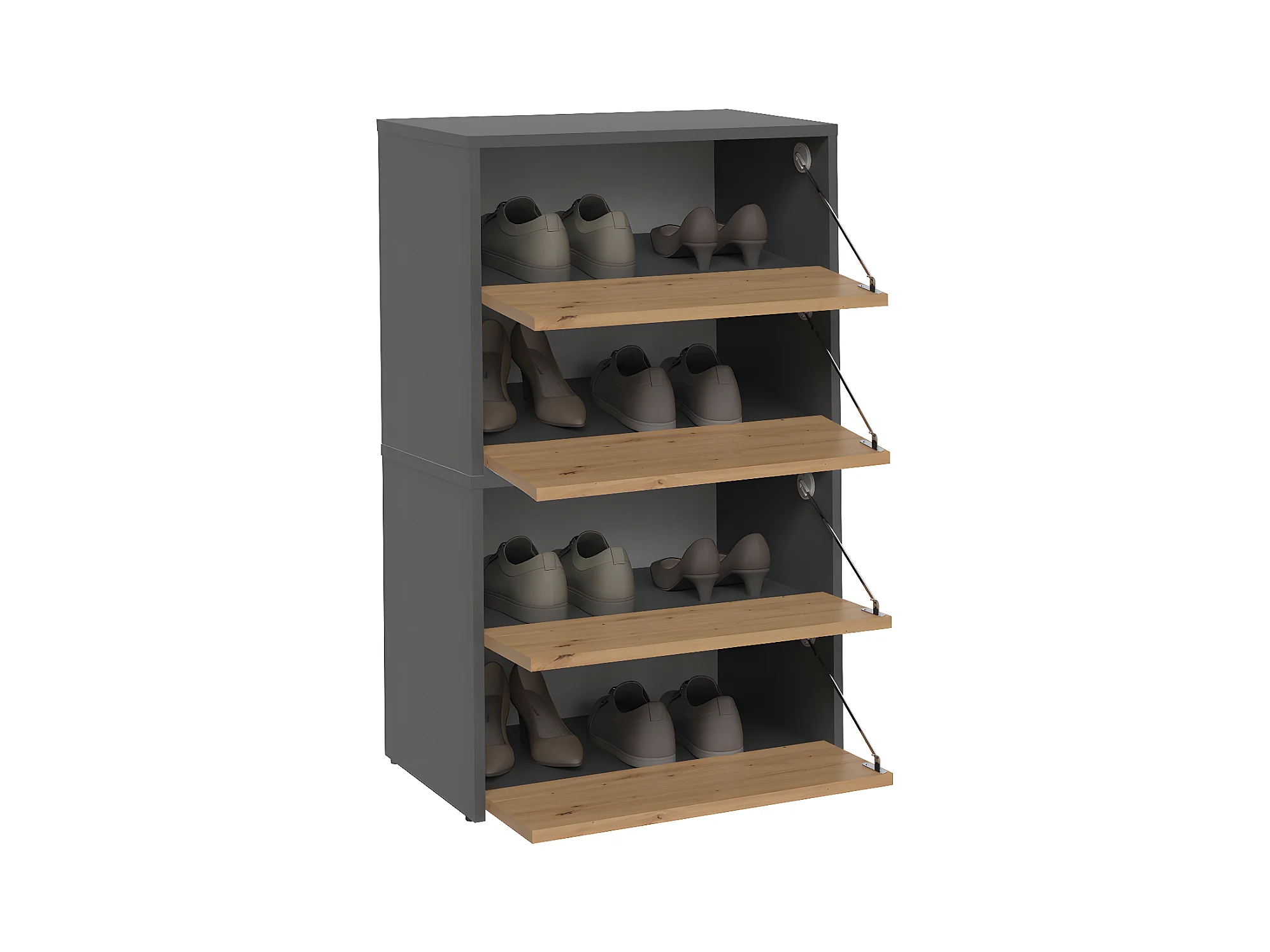 CDF Schuhschrank Modo X2 | Farbe: Anthrazit - Eiche Artisan | Ideal für Vorzimmer, Flur, Büro | Schuhaufbewahrung | Schuhregale | modern | offene Einlegenböden