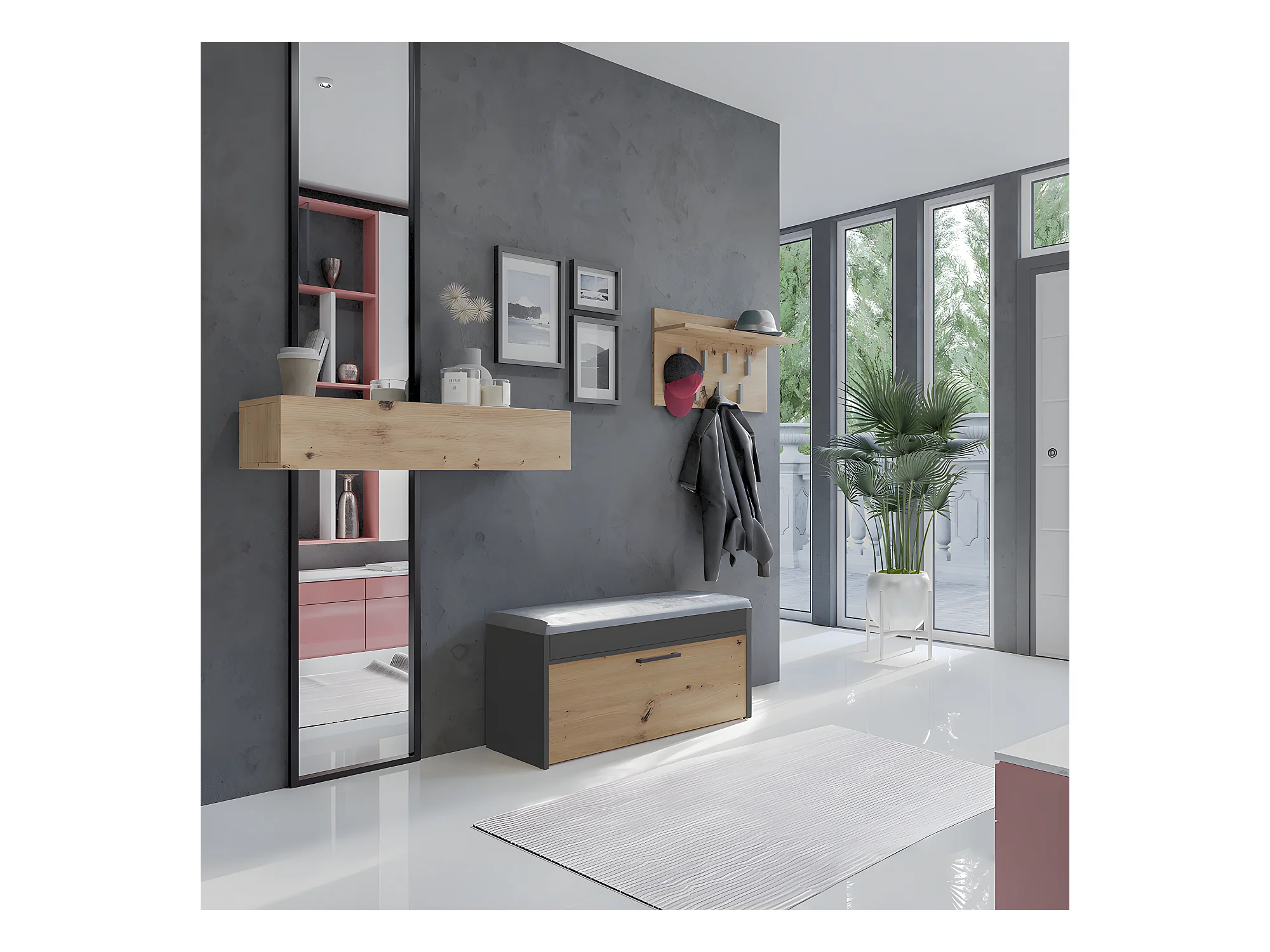 CDF Schuhschrank Parma | Farbe: Anthrazit - Eiche Artisan | Ideal für Diele, Flur, Büro | Schuhaufbewahrung | Bequemer Sitz (Kissen) | Modern | Flügeltür | Lagerung