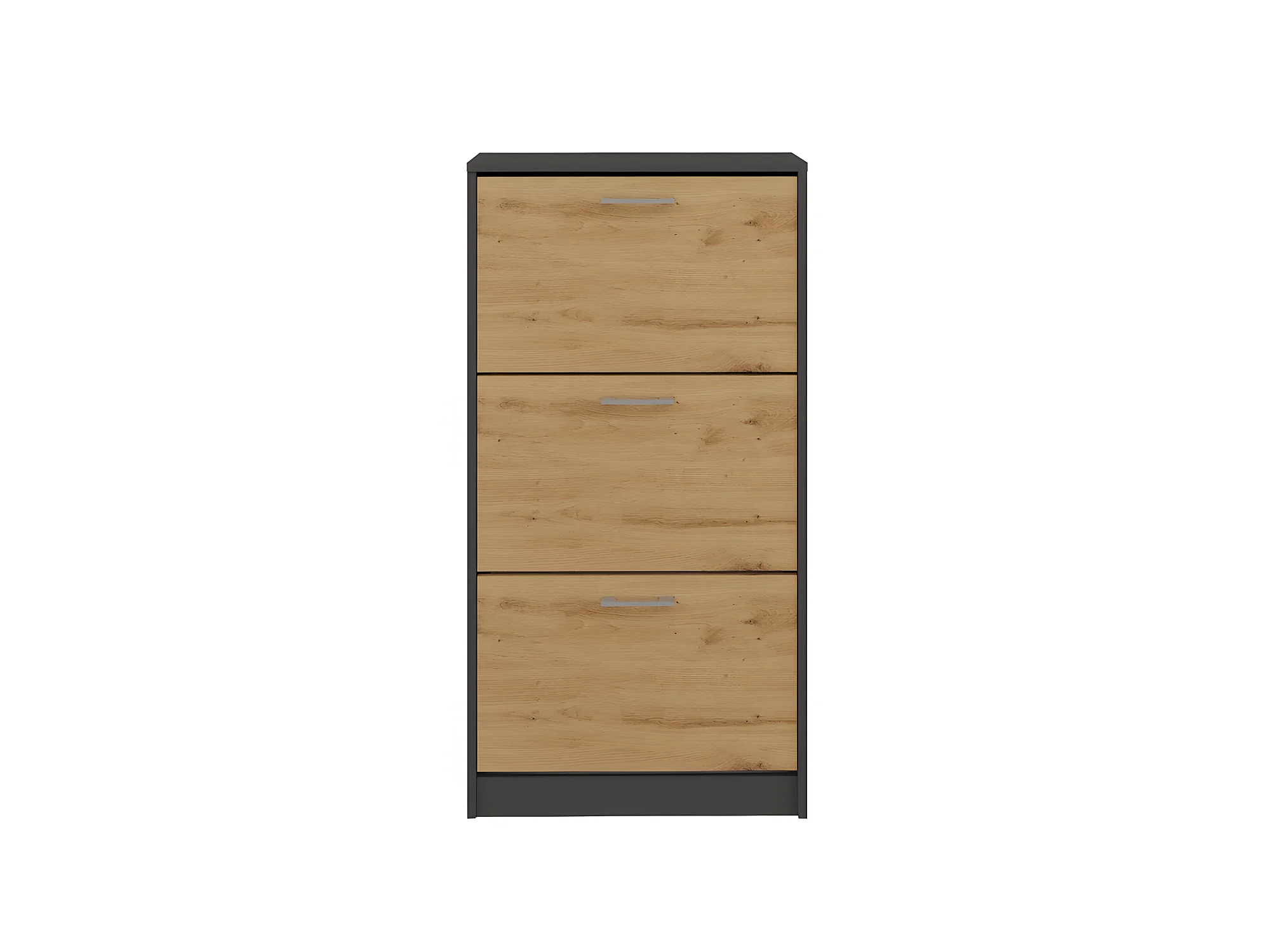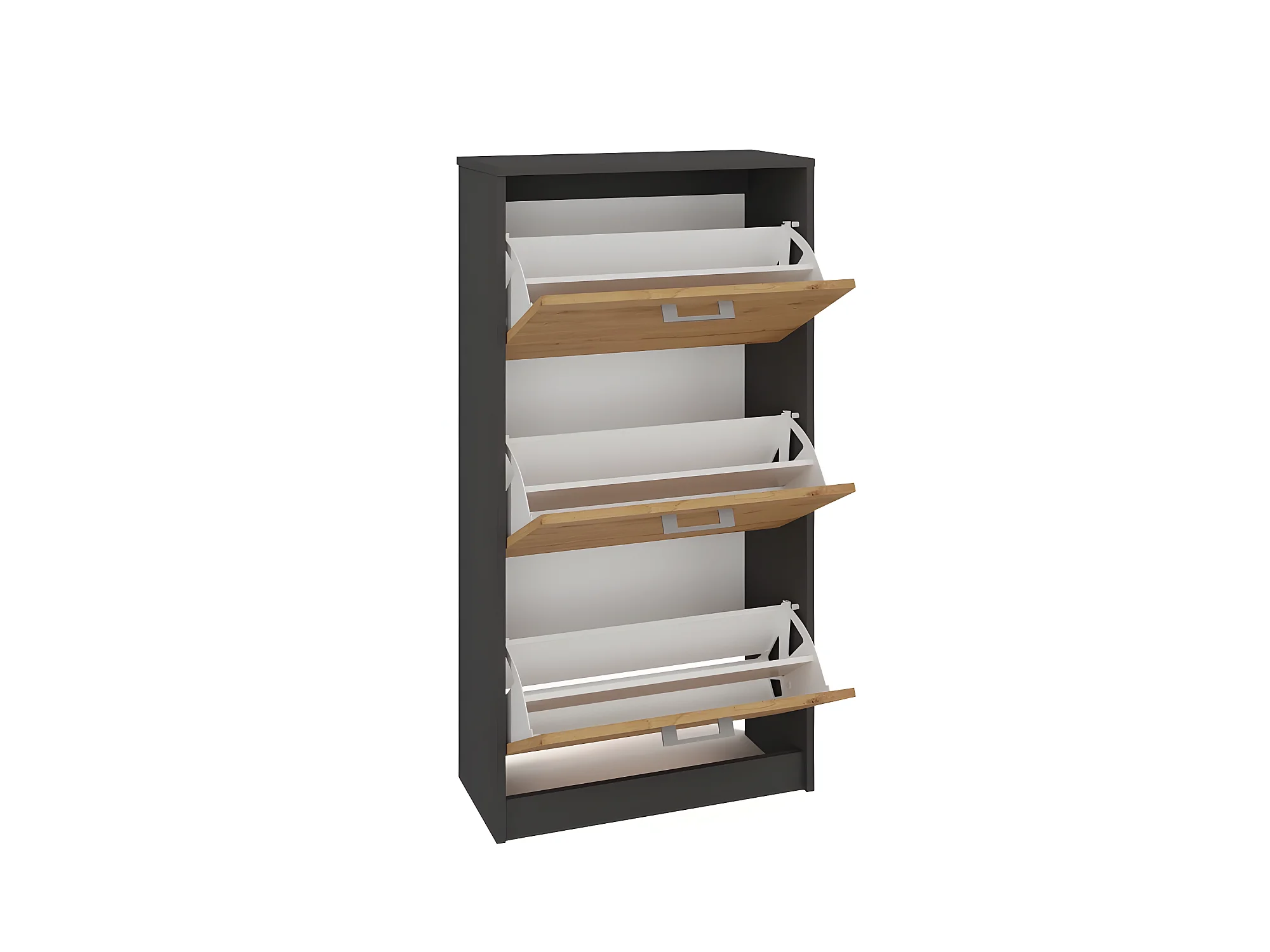 CDF Schuhschrank Paula | Farbe: Anthrazit - Eiche Artisan | Ideal für Vorzimmer, Flur, Büro | Schuhaufbewahrung | Schuhregale | modern | offene Einlegenböden