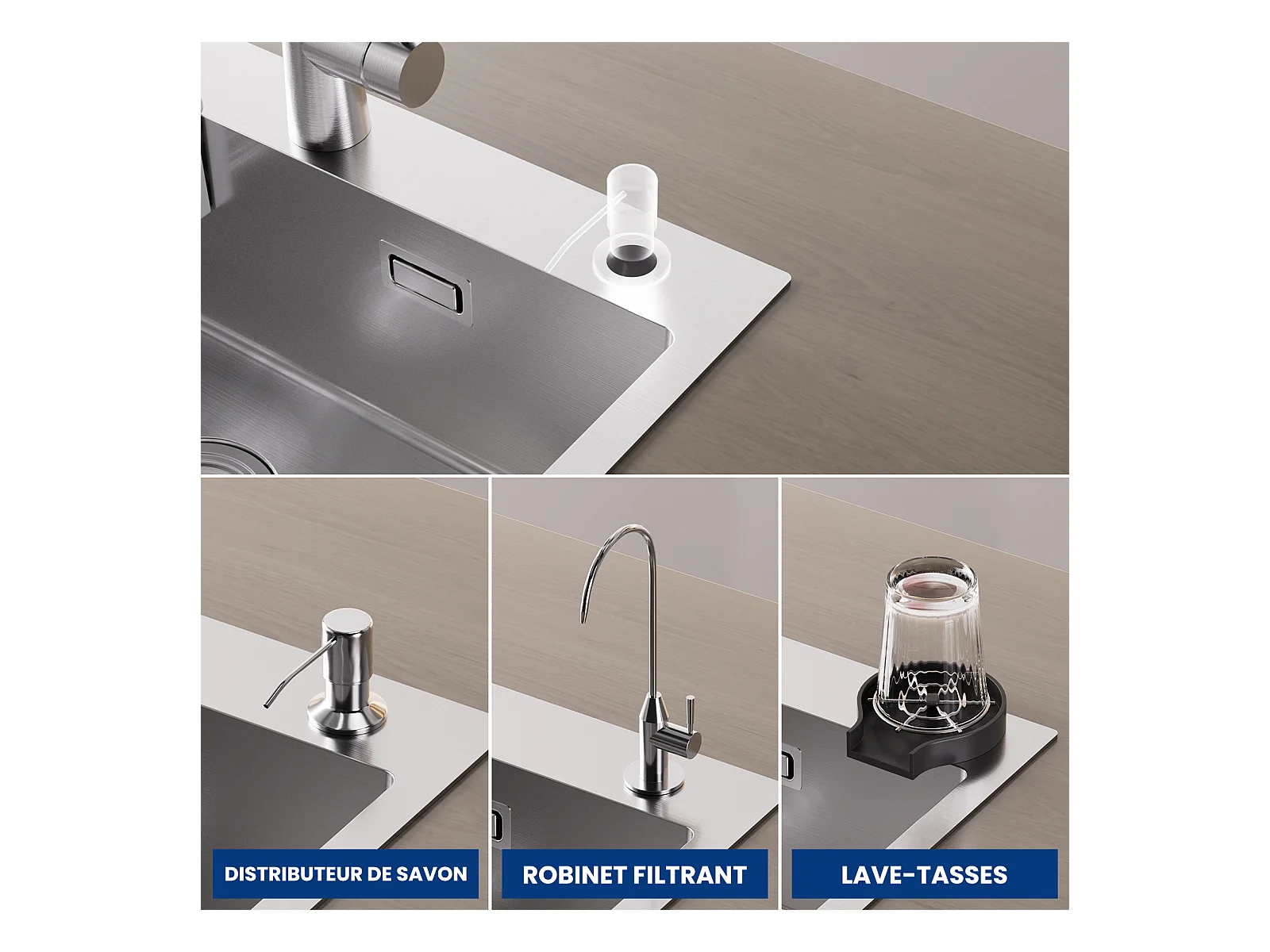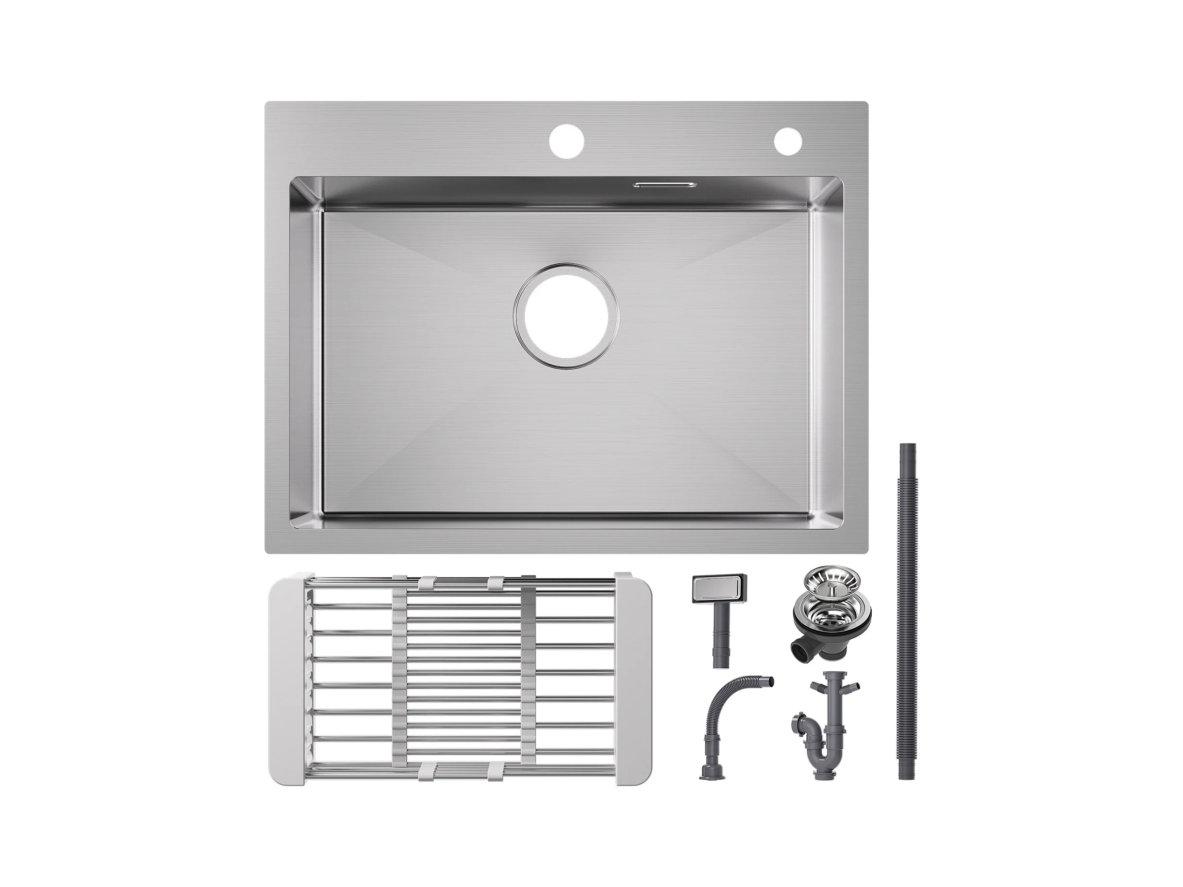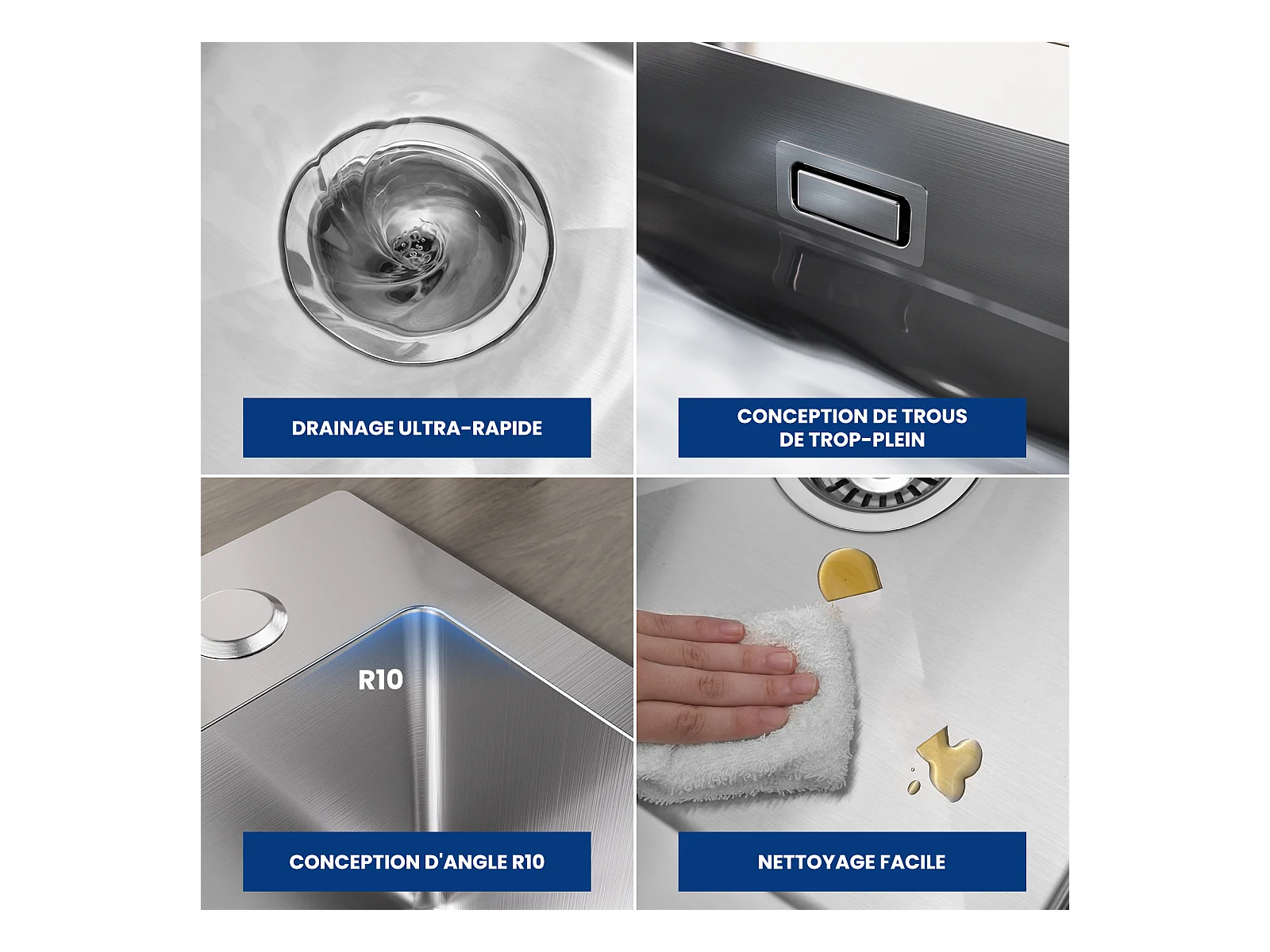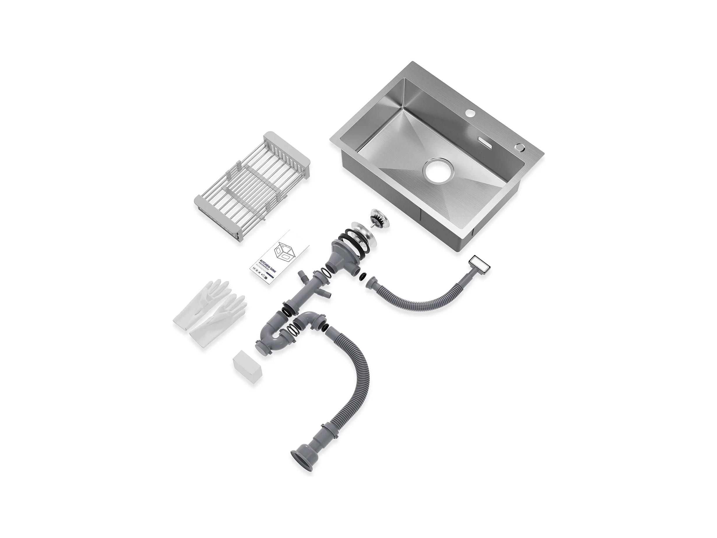 Cecipa max Küchenspüle aus gebürstetem Edelstahl, 1 Becken, 60×45×18 cm – 1 Becken-Spüle mit Abtropfkorb – Küchenspüle mit großem Fassungsvermögen, EU-Modell