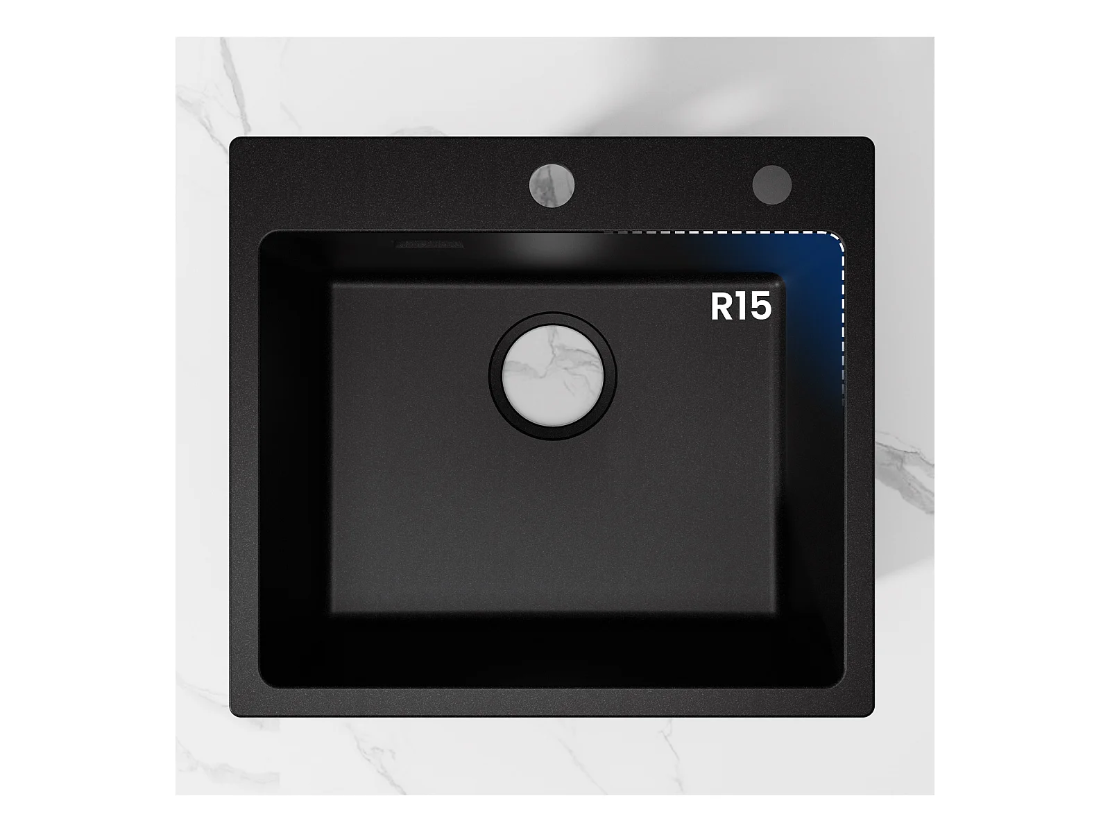Cecipa max Einzelspüle, 50 x 45 cm, Küchenspüle aus Quarz und Kunstharz, Einzelbecken, Unterbauspüle ohne Seifenspender, EU-Modell